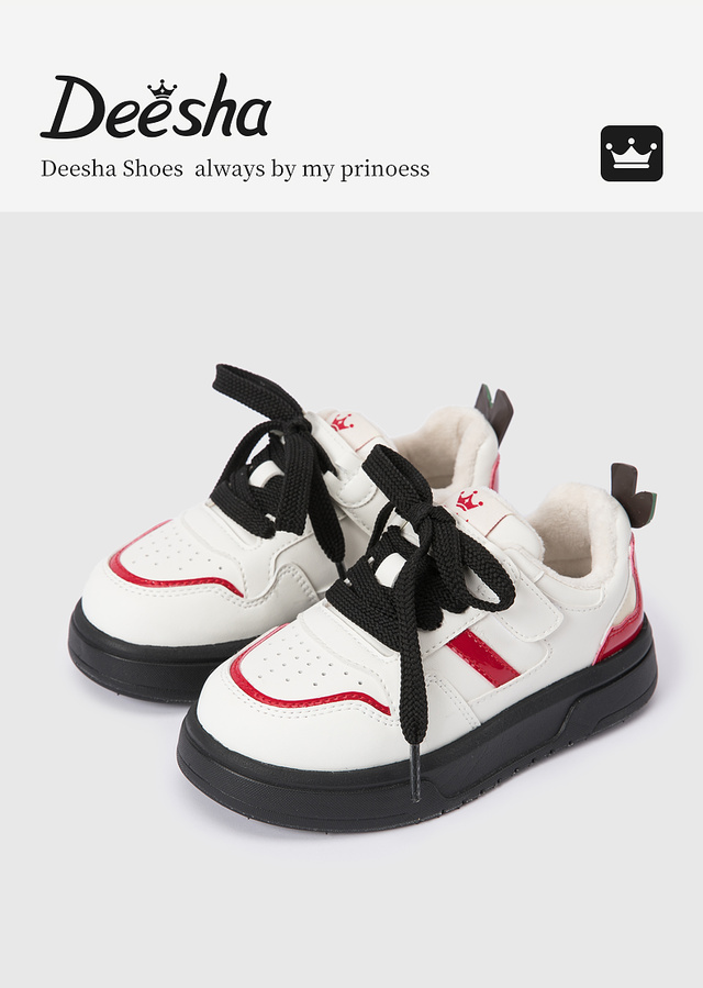 笛莎Deesha 女童童鞋2025冬季新款休闲加绒低帮板鞋