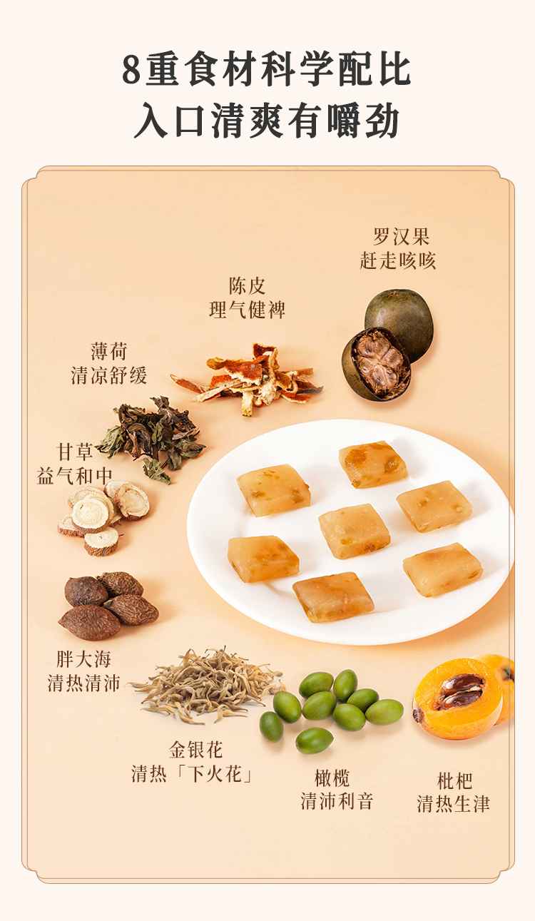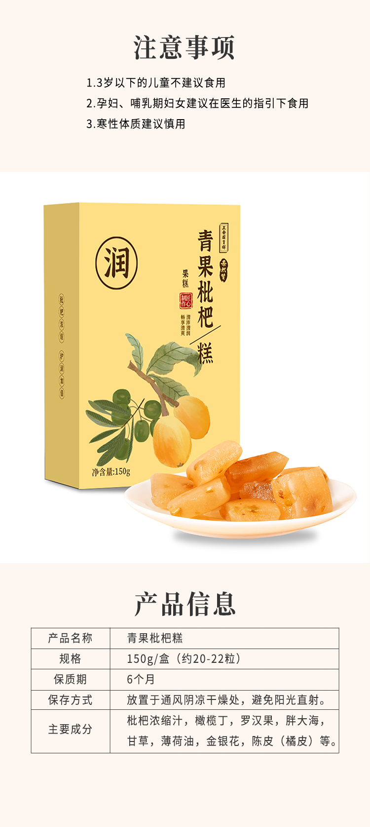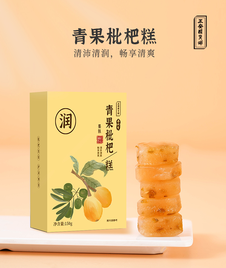 正安国货铺 枇杷橄榄等八大食材滋润夏秋燥 无蔗糖护润咽喉的青果枇杷糕 150g/盒