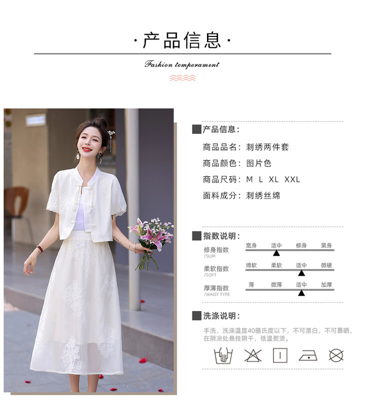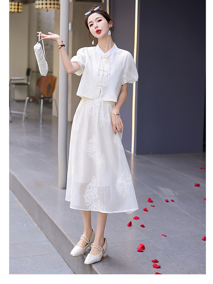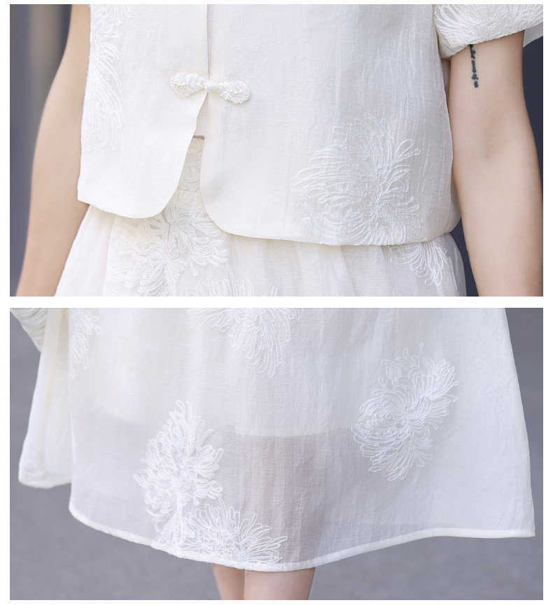 夏装时尚刺绣清新通勒港风设计流行复古盘扣款两件套套裙HR-HMQY5308