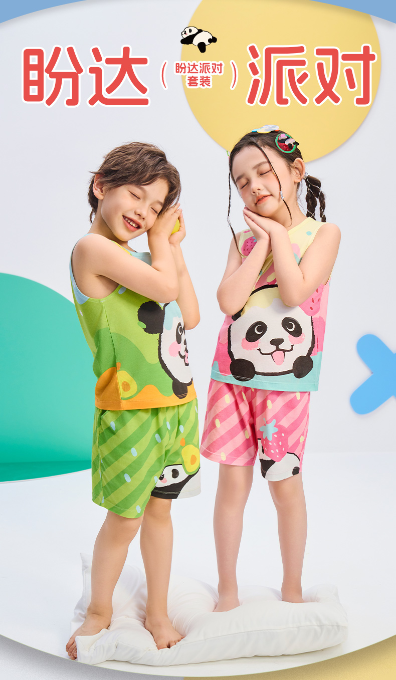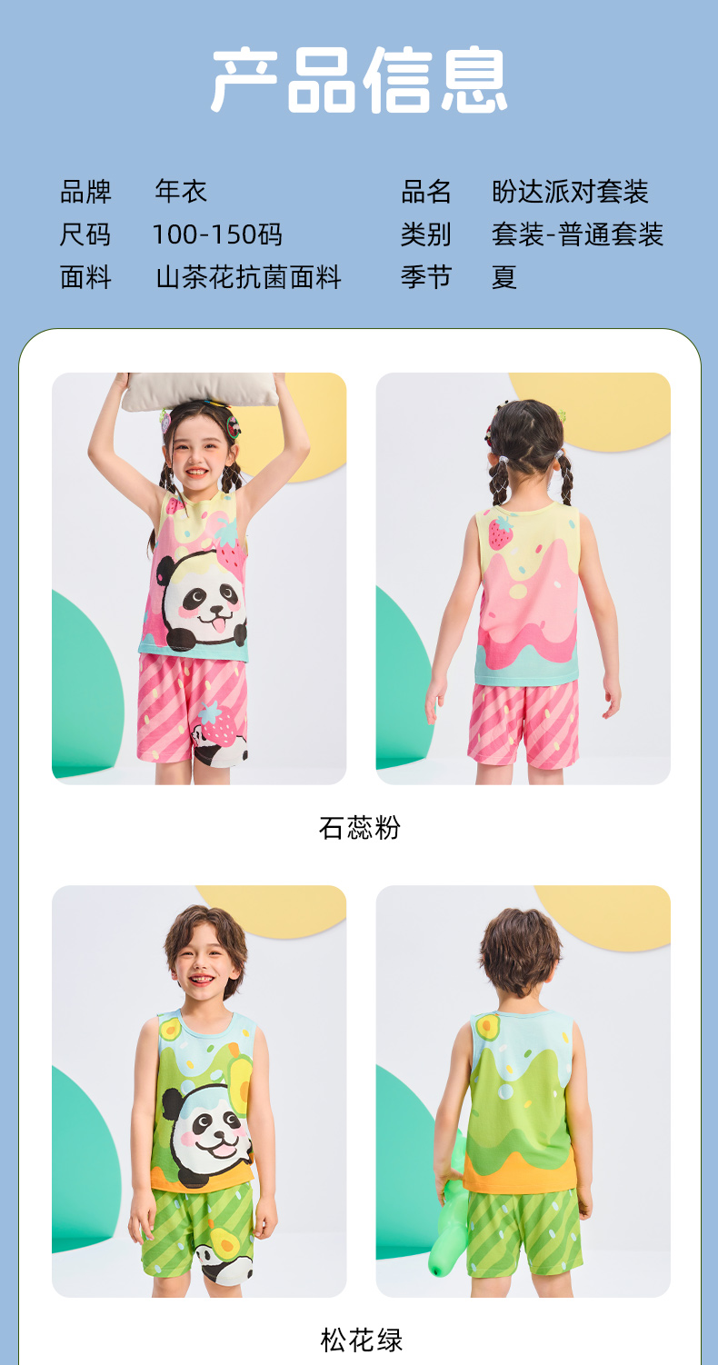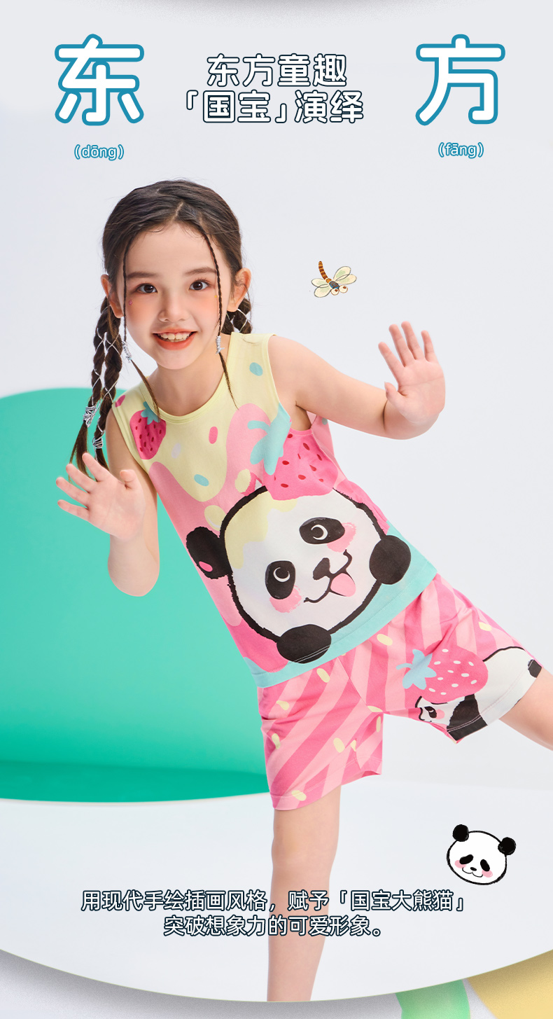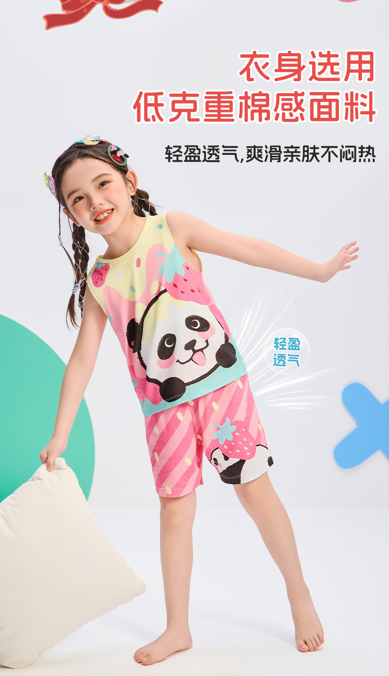 年衣25年夏季新款卡通休闲无袖上衣短裤两件套盼达派对套装