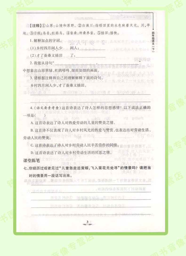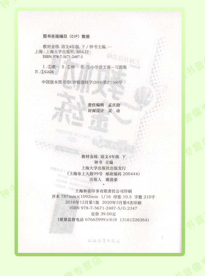 钟书金牌 教材金练 部编版语文 4年级下册/四年级第二学期 书+卷 上海部编版教材同步课后练习+单元测试卷 小学教辅