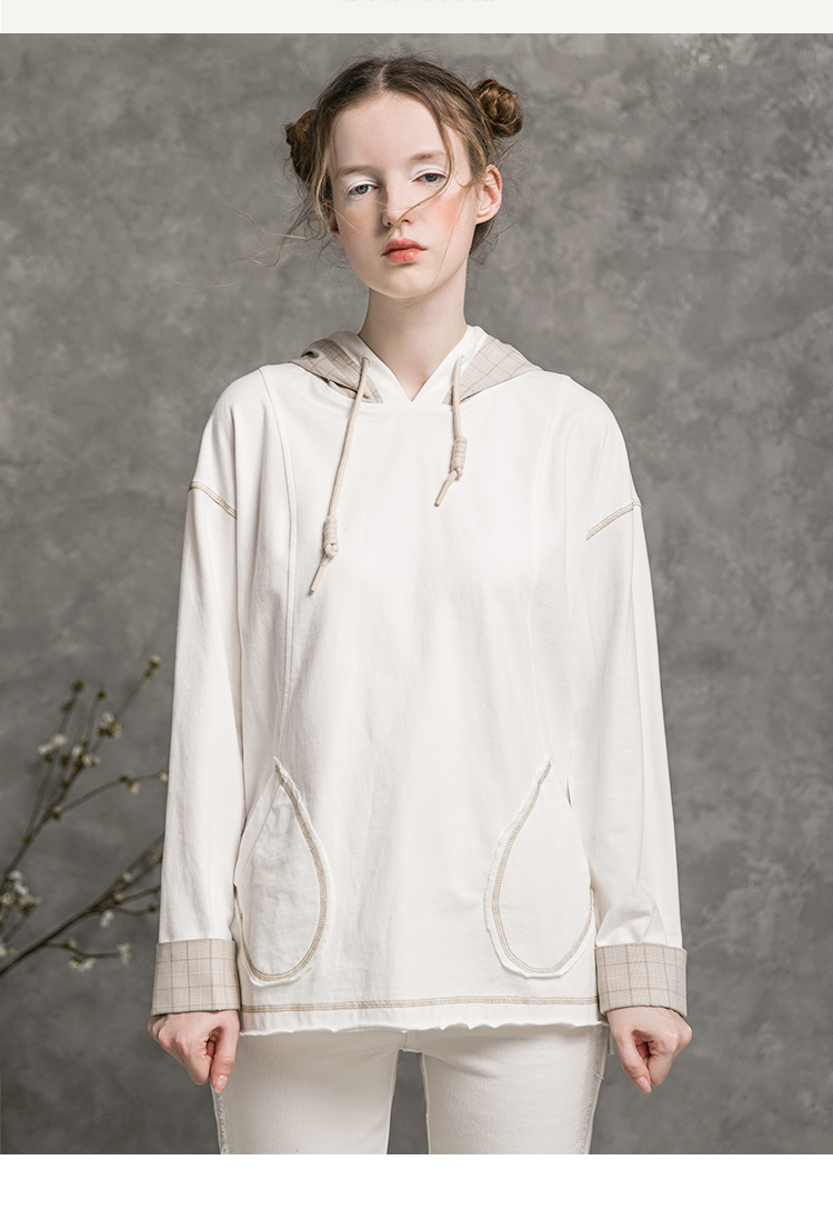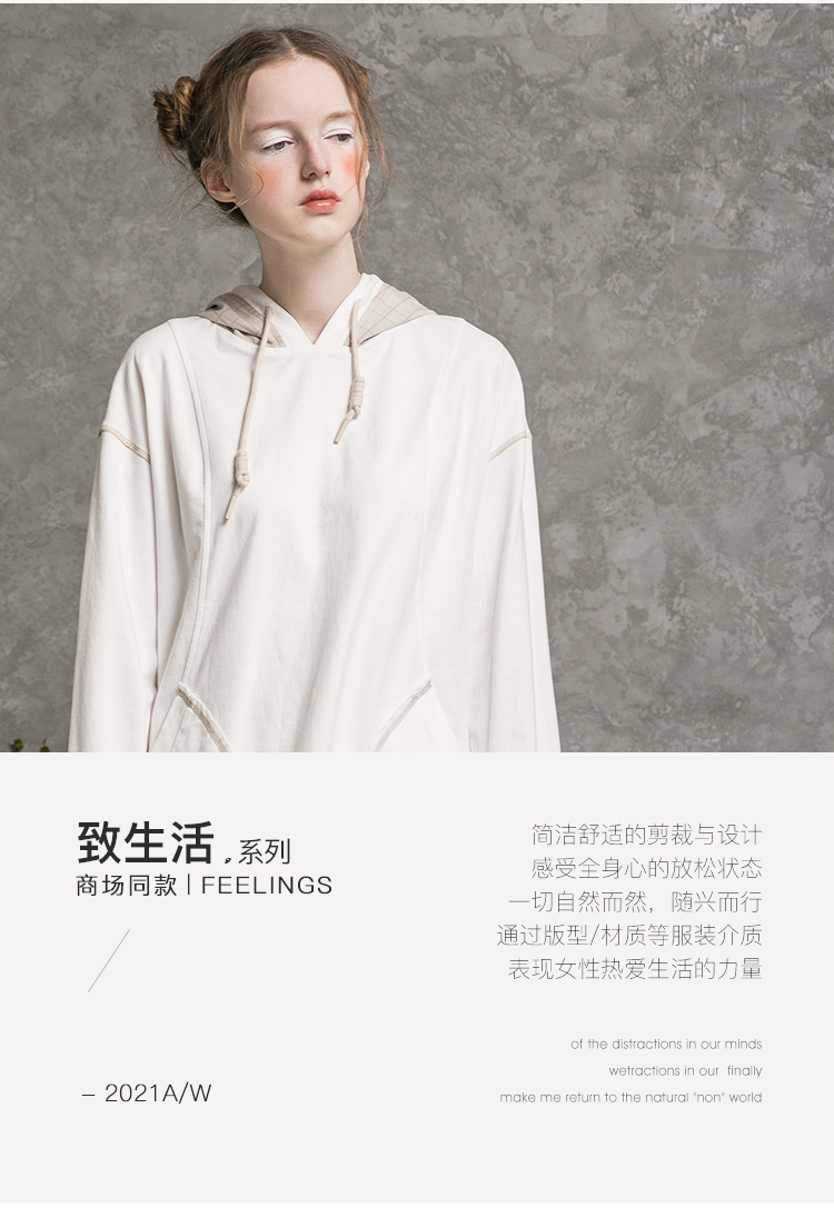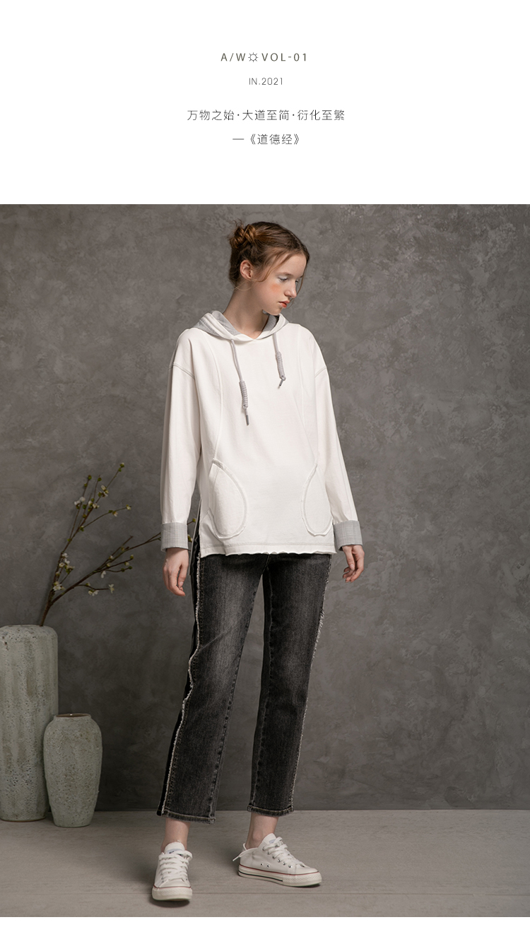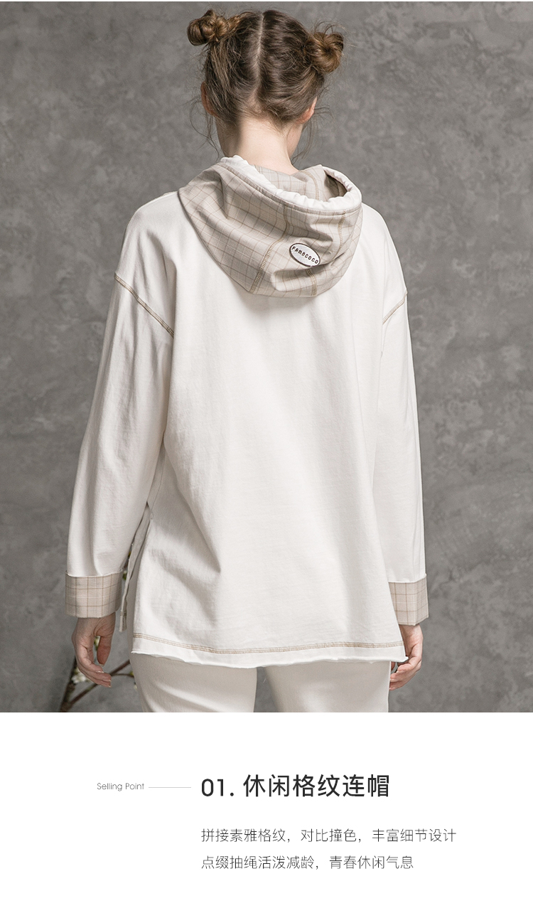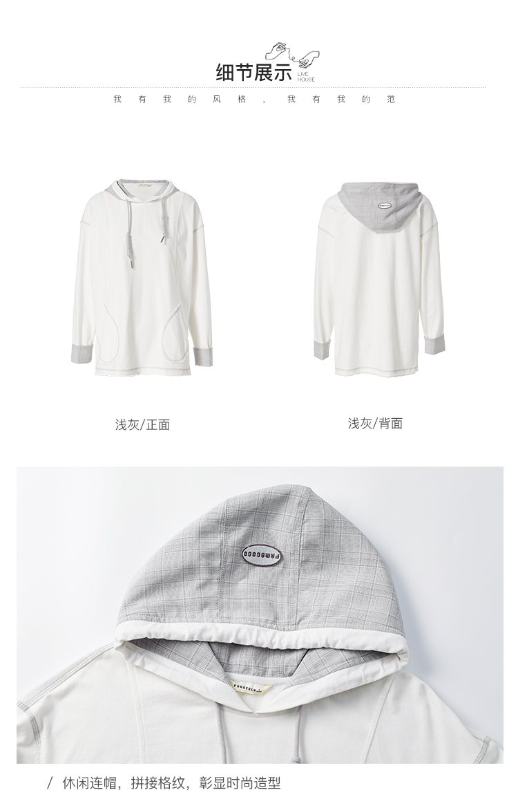 famecoco范可儿秋季连帽卫衣女纯棉长袖设计感宽松灰色上衣D216BL300