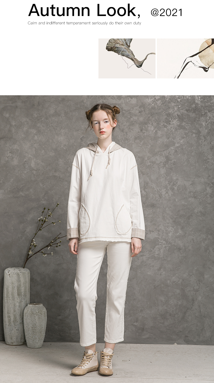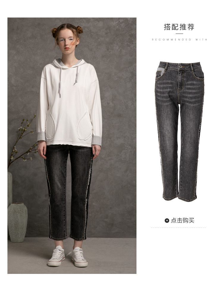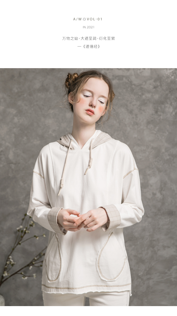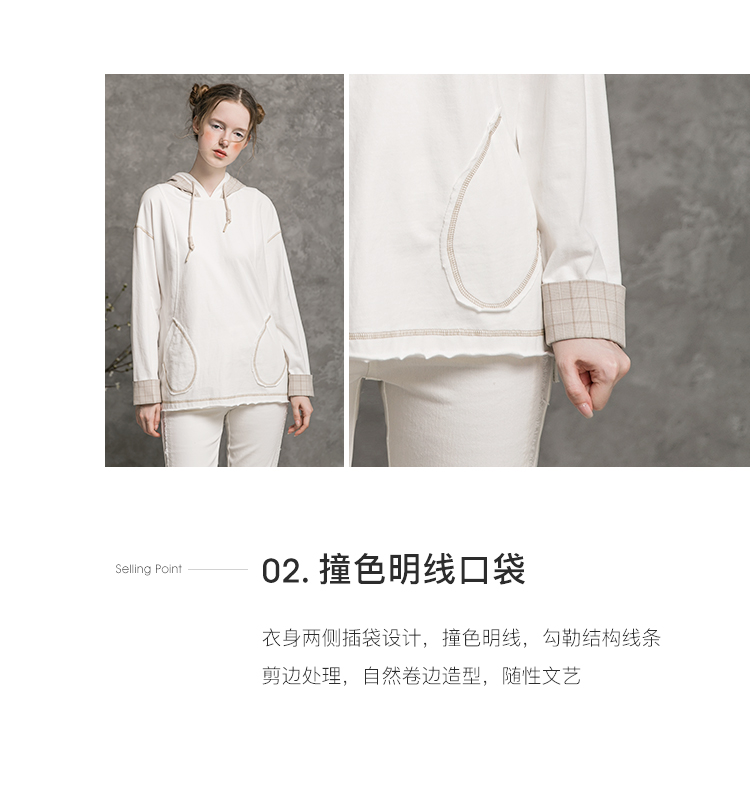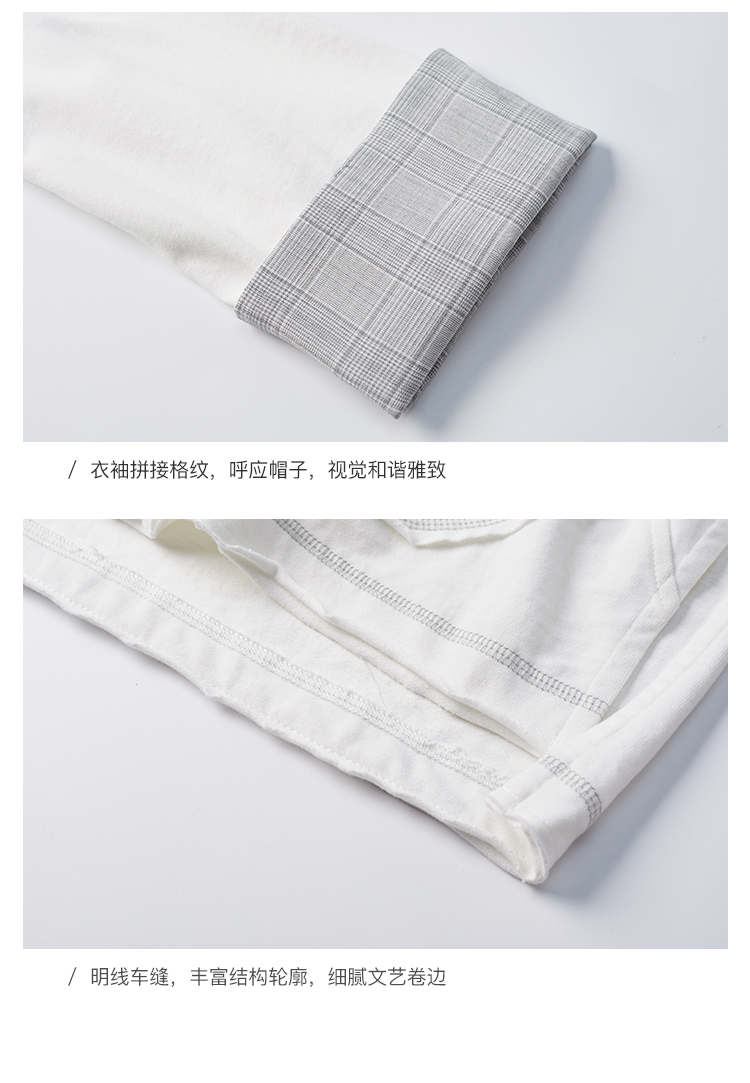 famecoco范可儿秋季连帽卫衣女纯棉长袖设计感宽松灰色上衣D216BL300