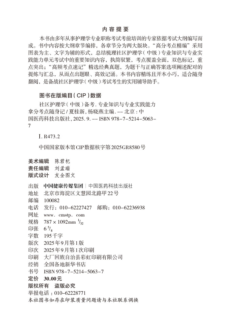 2026社区护理学(中级)备考 专业知识与专业实践能力拿分考点随身记 护考应急包 夏桂新 杨晓燕 9787521450637中国医药科技出版社