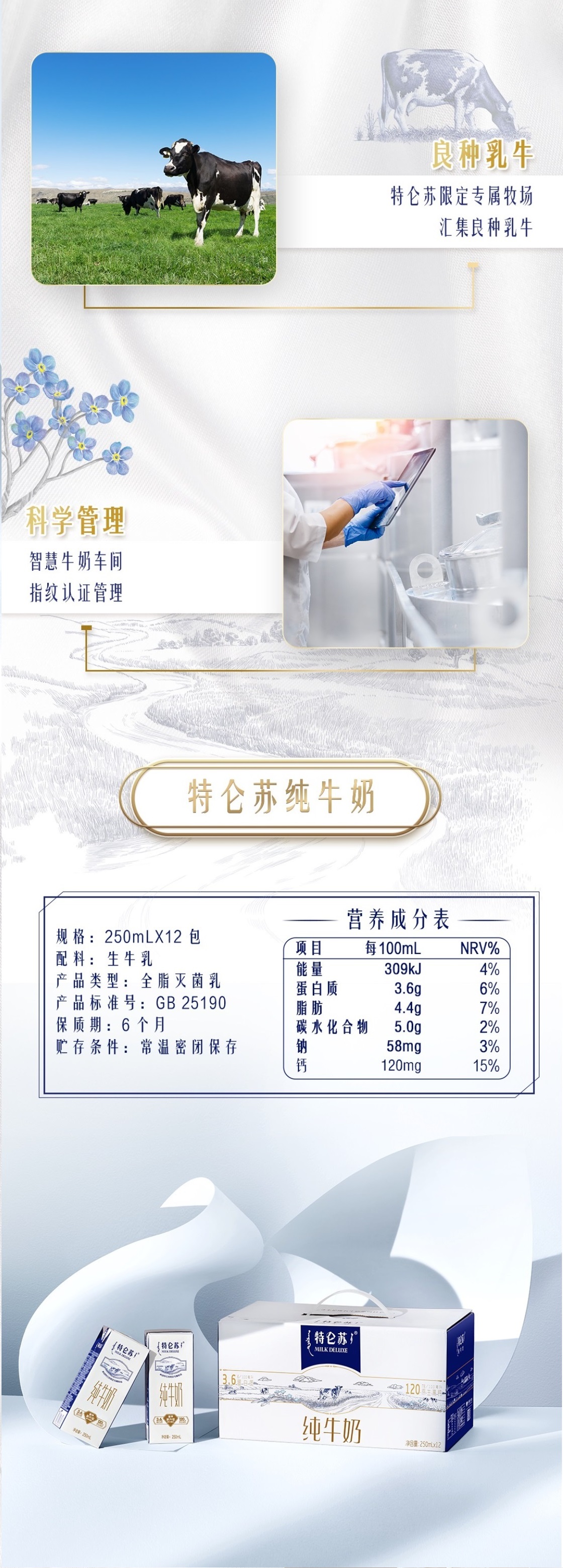 蒙牛 特仑苏纯牛奶 250ml*12盒/箱