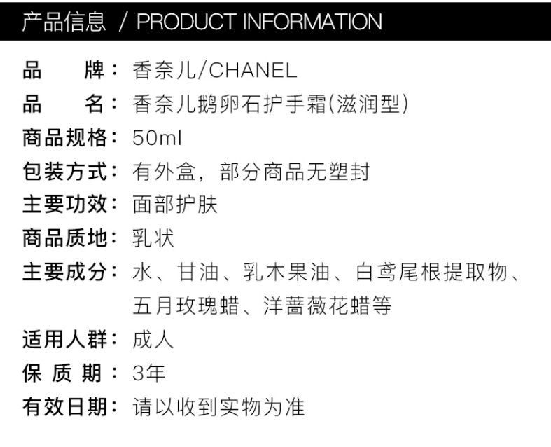 【年终限时大促】【保税仓直发·全球购】CHANEL 香奈儿护手霜白蛋鹅卵石护手霜清爽版/滋润版