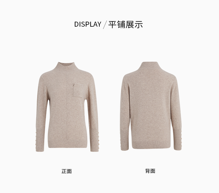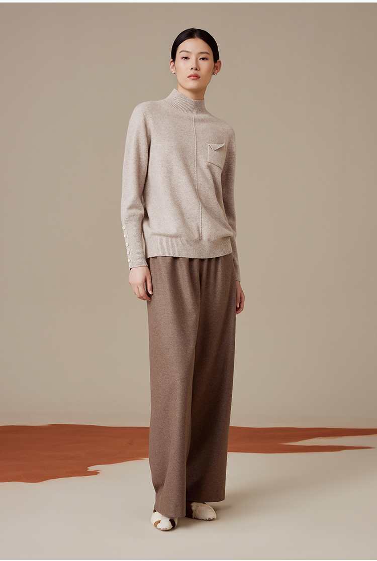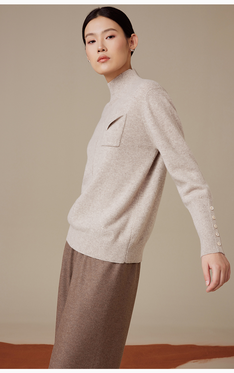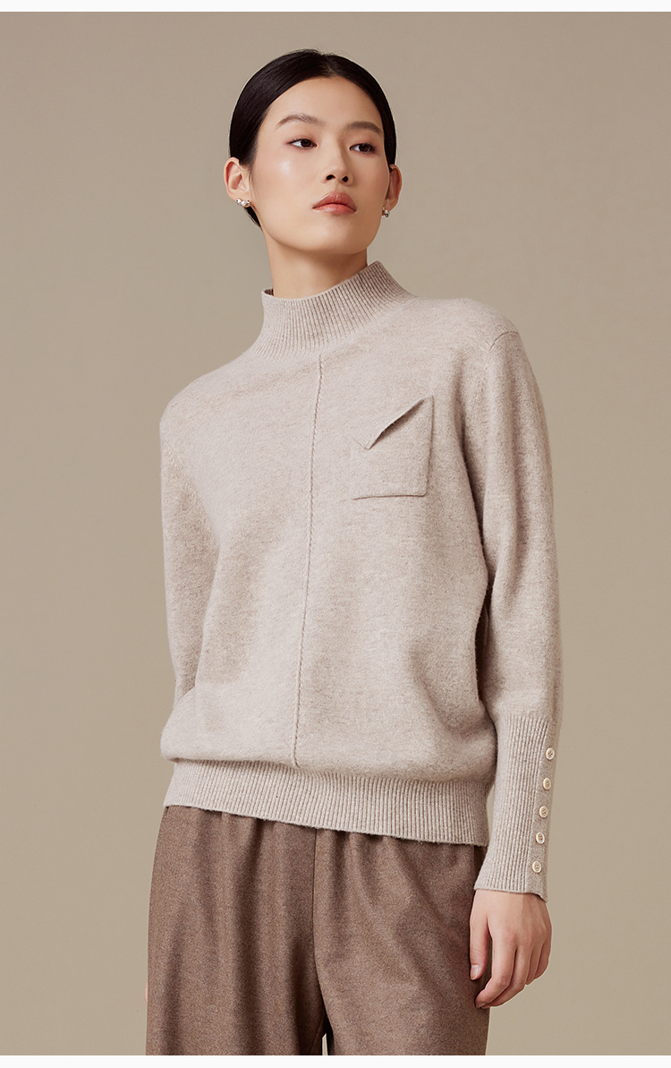 pure touch绵羊毛+山羊绒半高领设计感针织衫1302244423