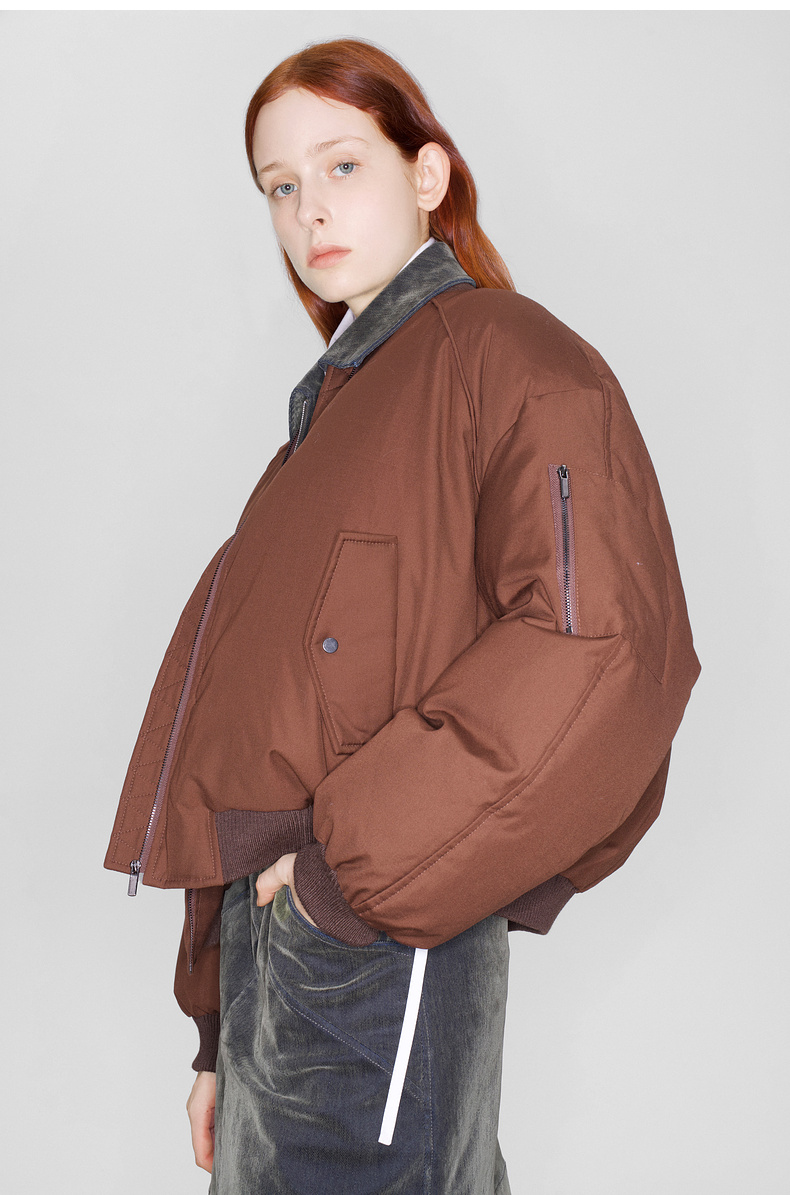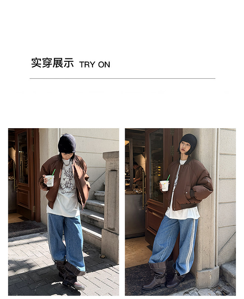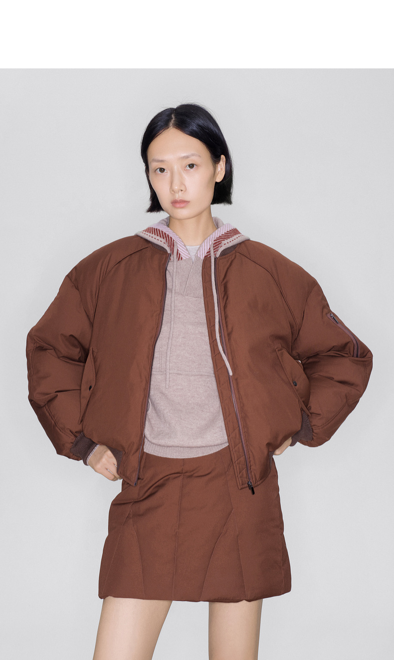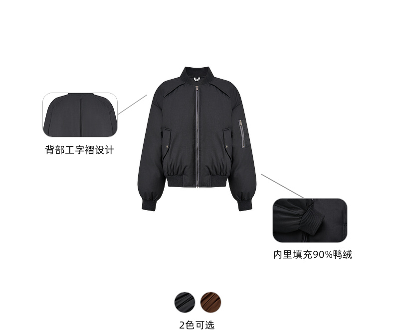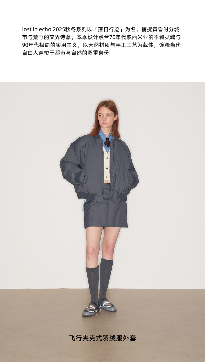 lost in echo2025早秋新款宽松拉链飞行夹克保暖鸭绒羽绒服短外套