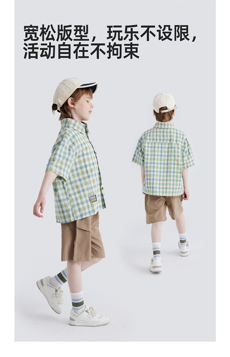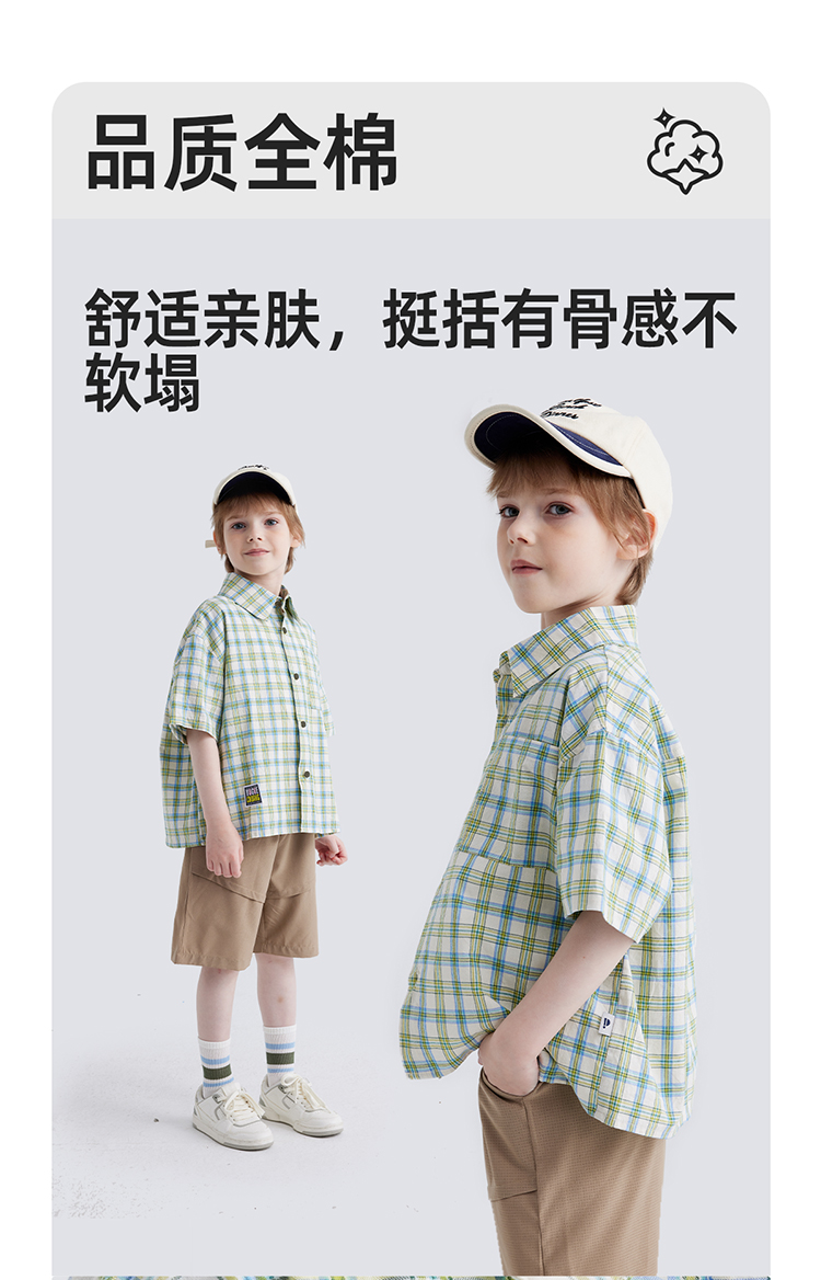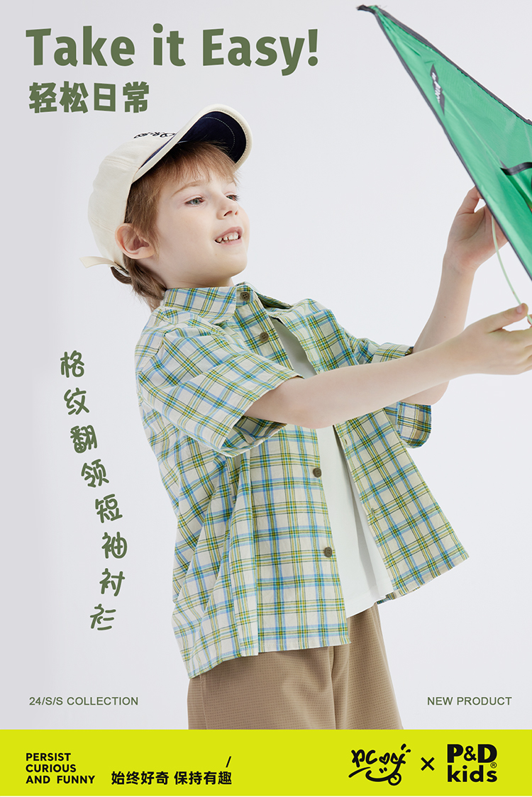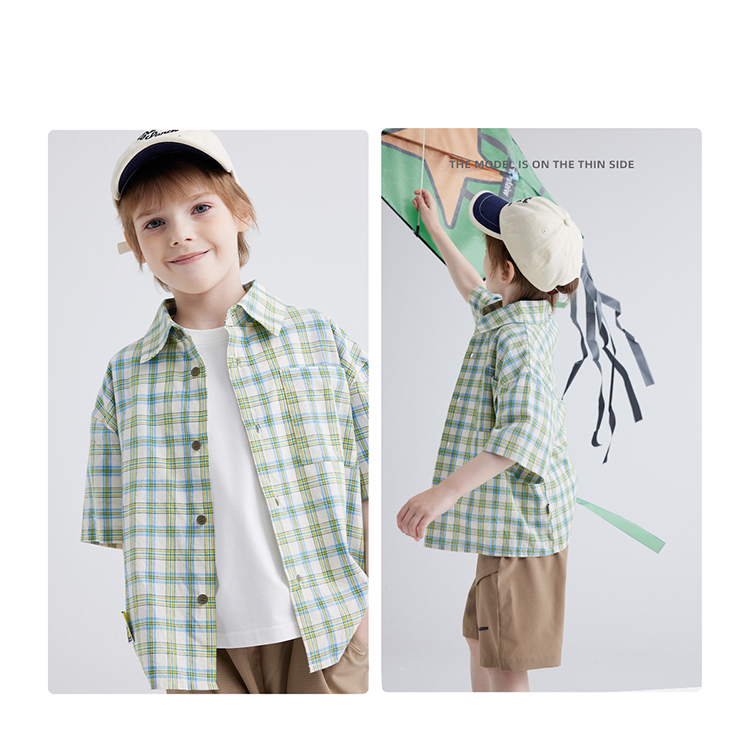 【软糯好搭 纯棉有质感】儿童格纹翻领短袖衬衫 PXCS2401