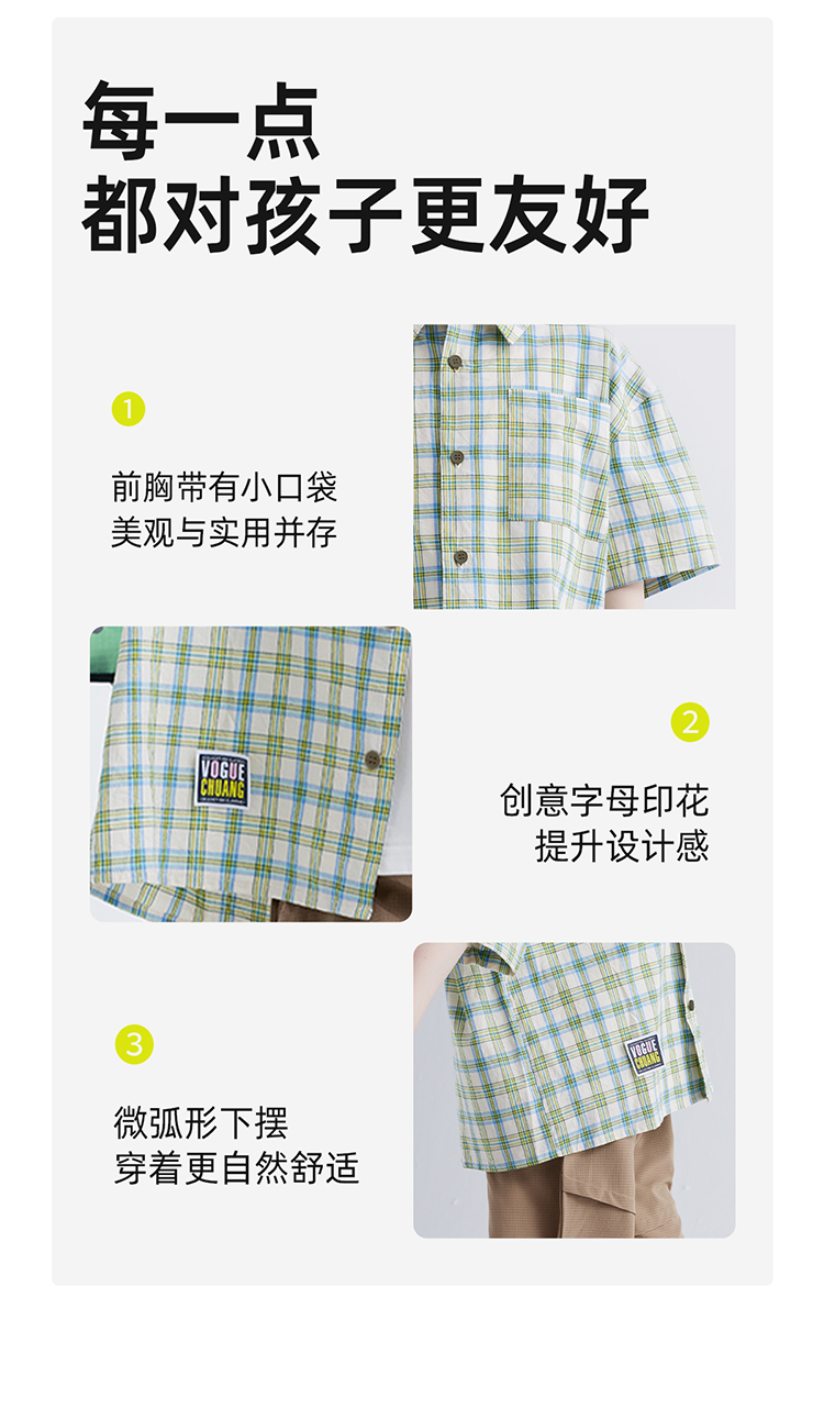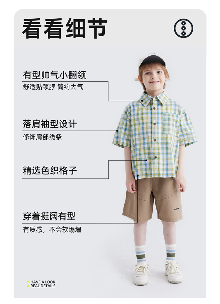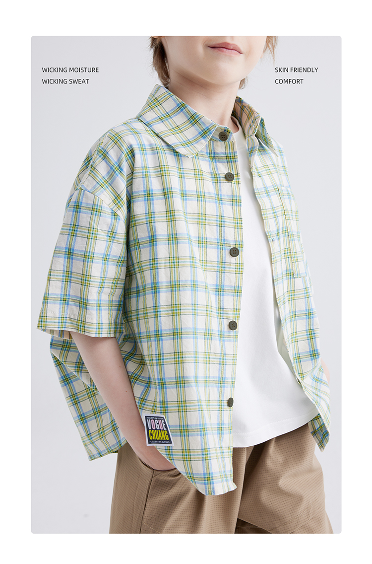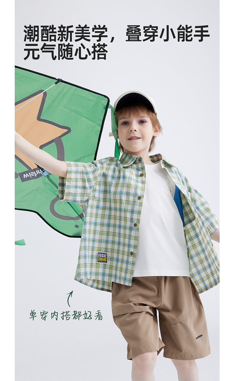 【软糯好搭 纯棉有质感】儿童格纹翻领短袖衬衫 PXCS2401