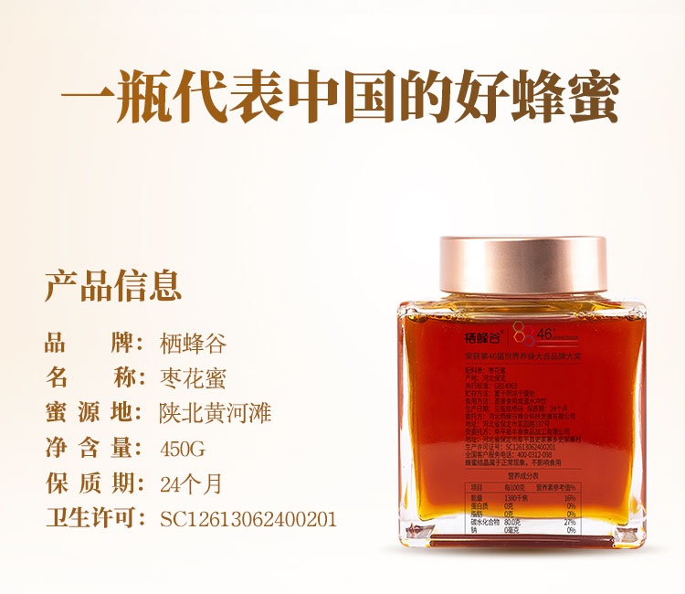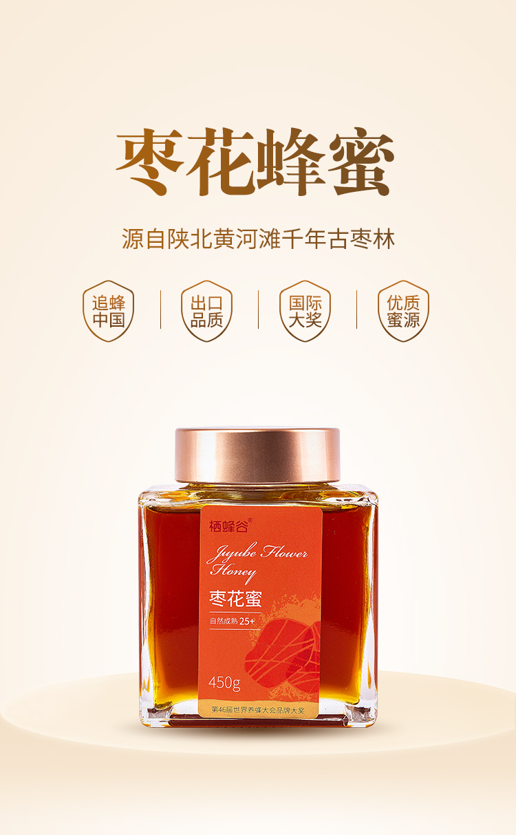 陕北黄河滩枣花蜜450g口感纯正枣香馥郁 46届国际蜂联品质大奖蜂蜜