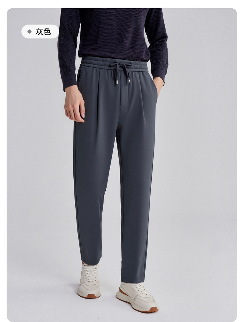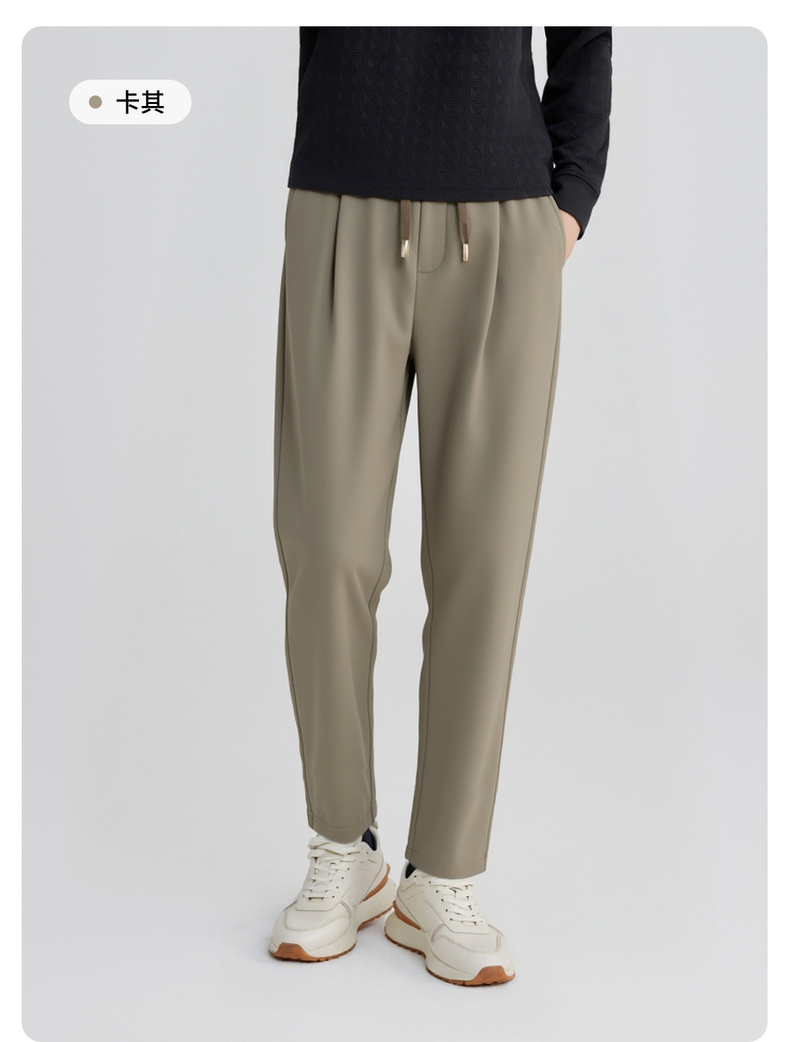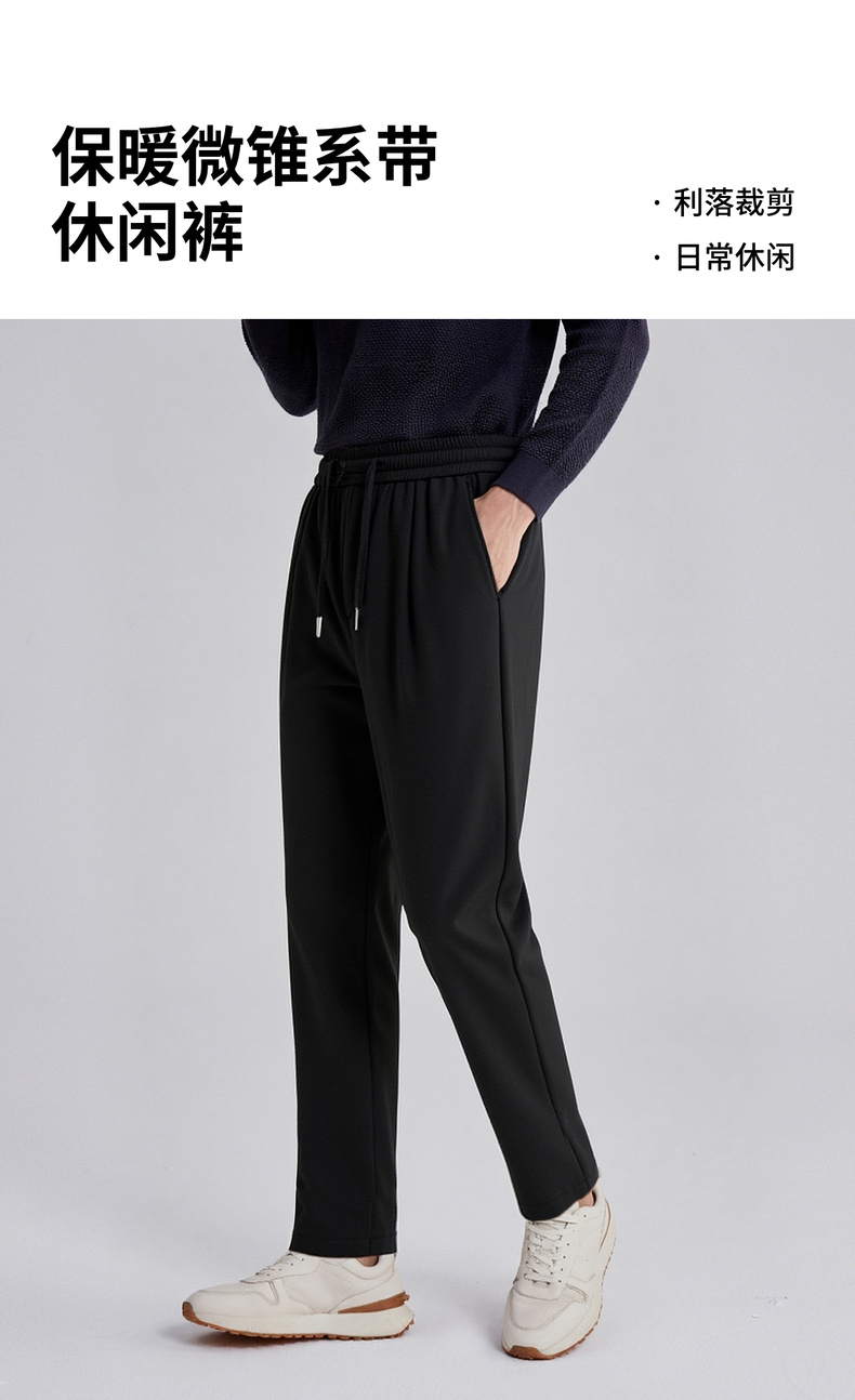 【抗菌】圣得西加绒加厚男士休闲裤2025秋系带直筒舒适百搭保暖裤