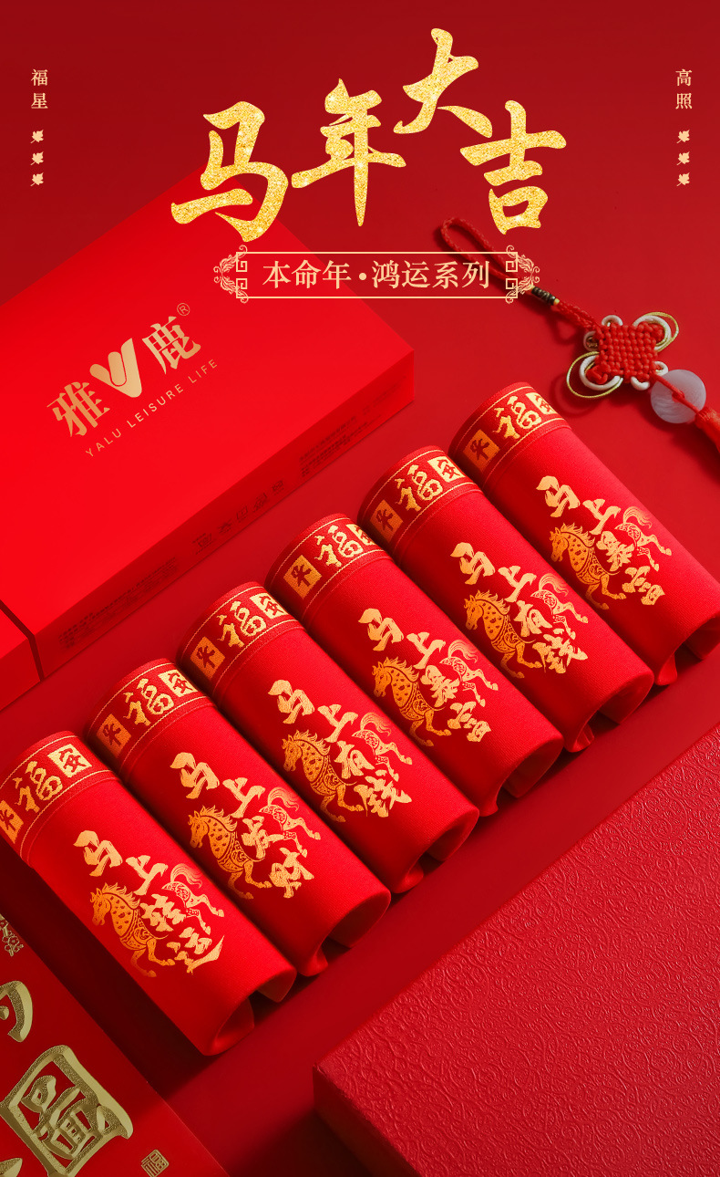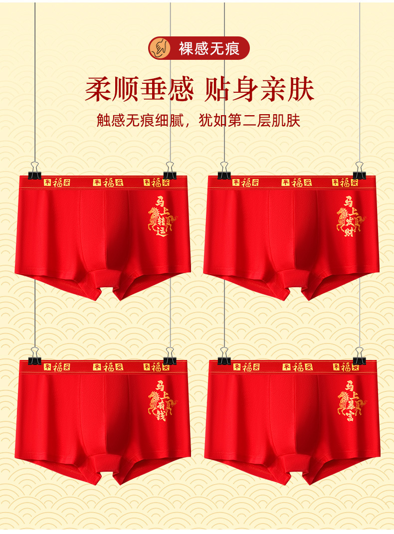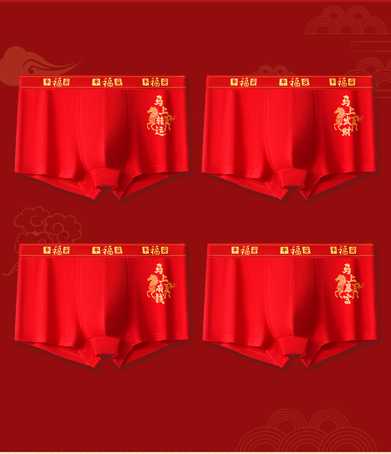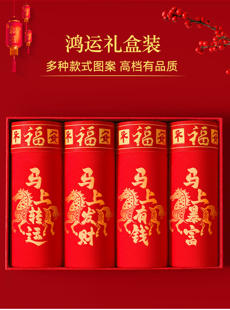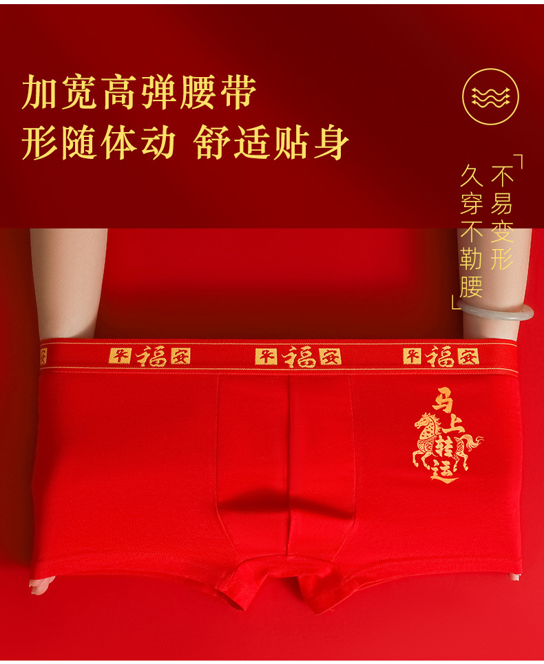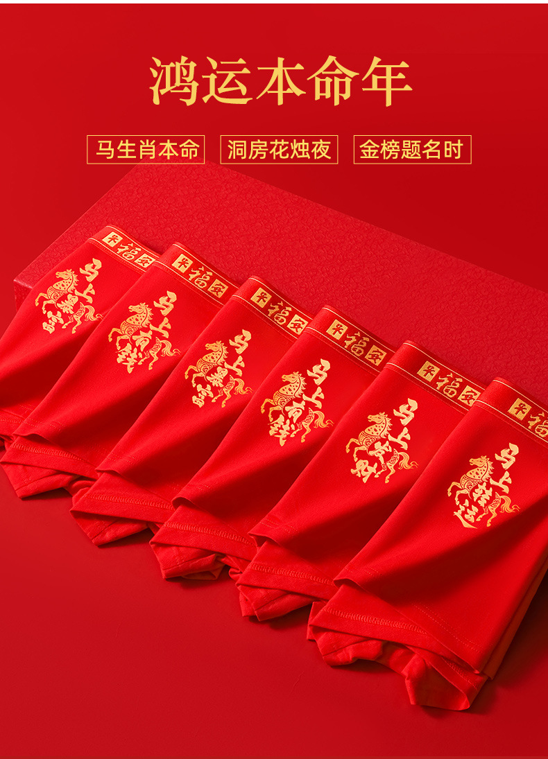 【男款本命年红衣套装,内裤2条,袜子2双】马年本命年大红纯棉内裤舒适透气 红色礼盒装