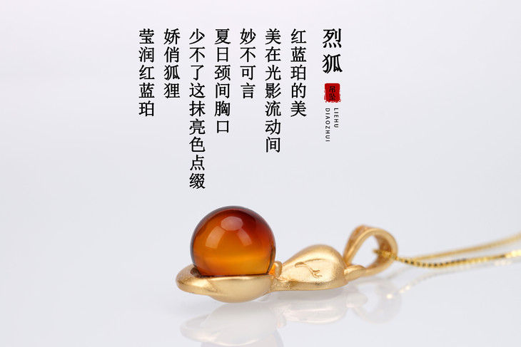 红蓝珀的美,美在光影流动间,妙不可言。夏日颈间胸口,少不了这抹亮色点缀,娇俏狐狸,莹润红蓝珀。