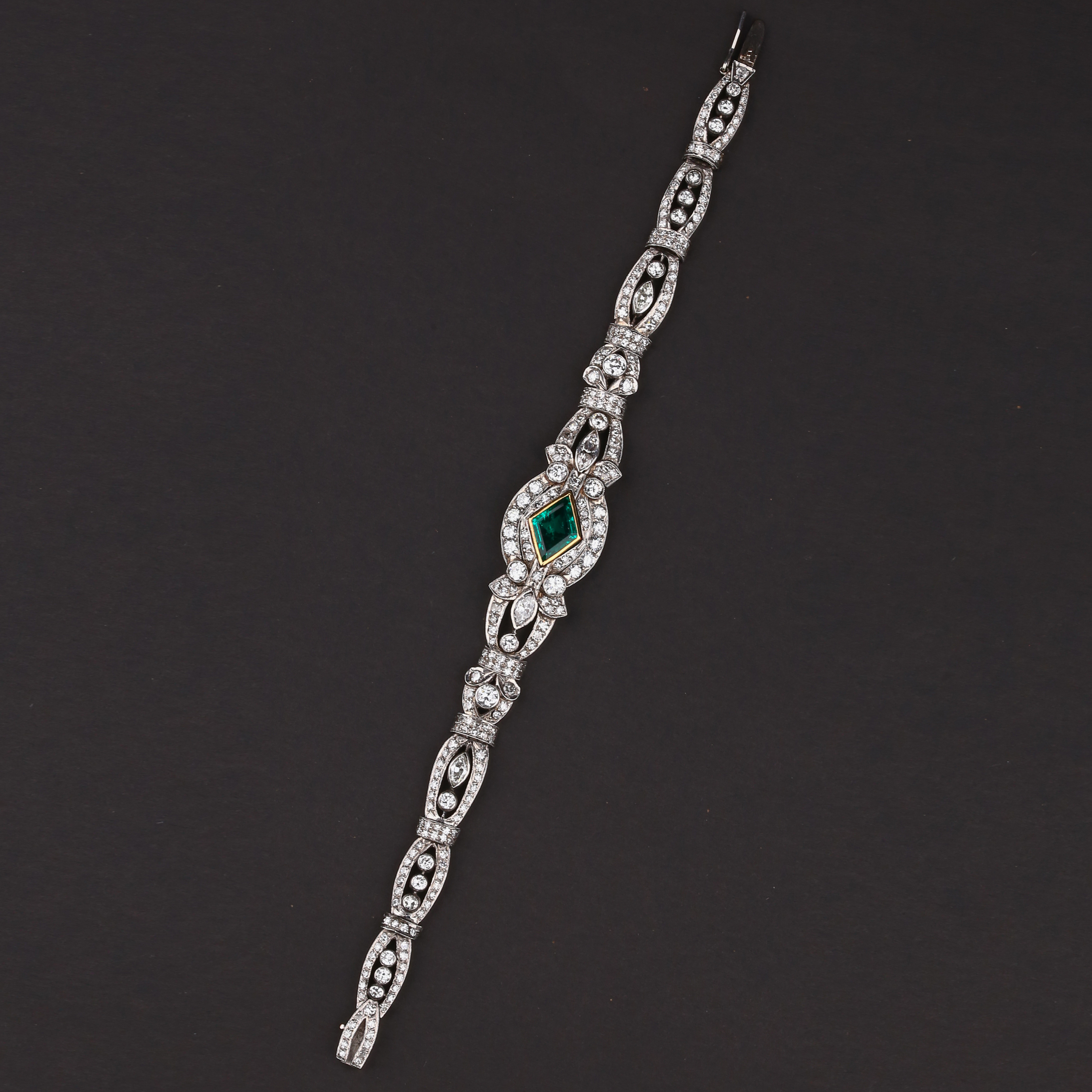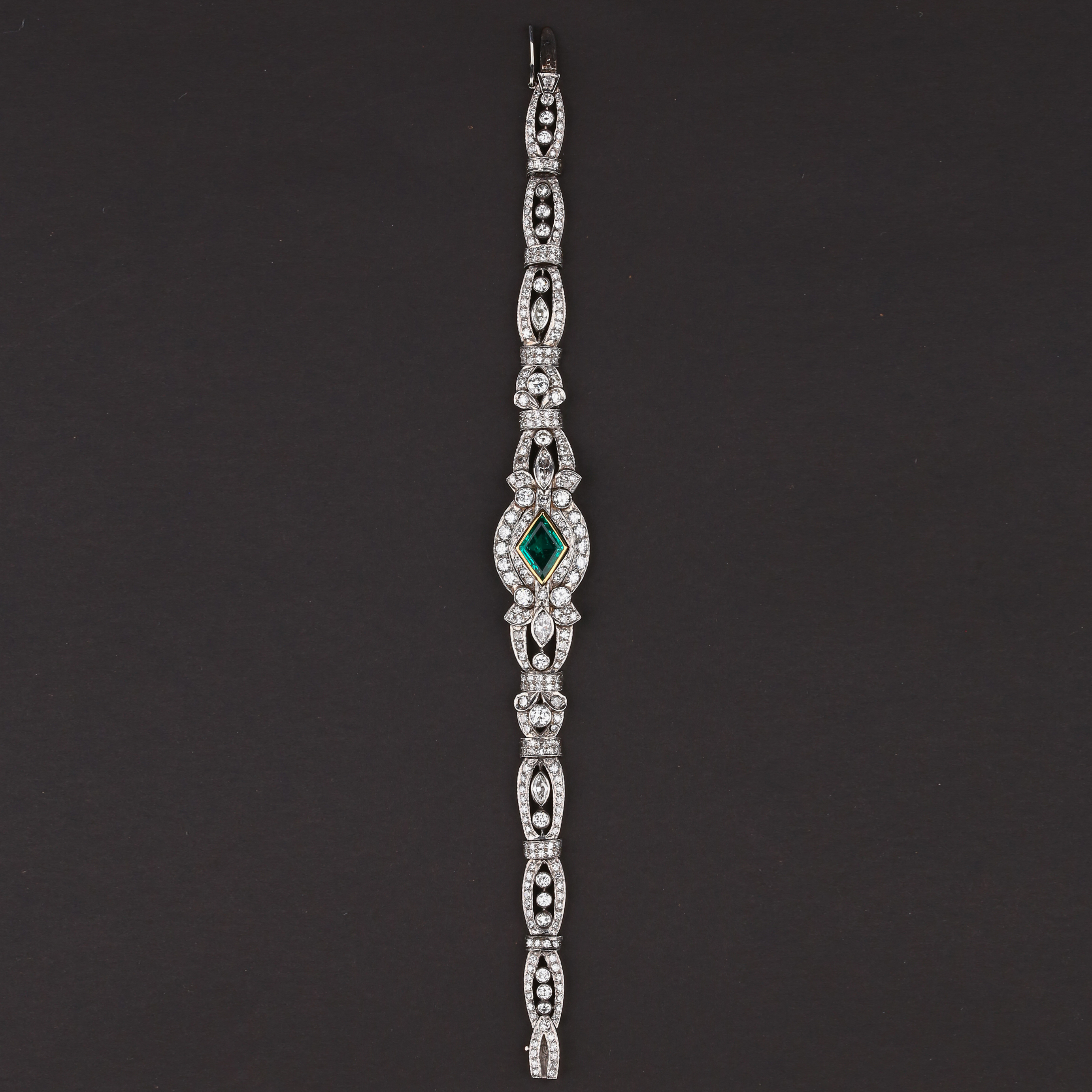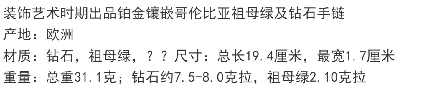 独角鹿西洋古董装饰艺术时期铂金镶嵌钻石哥伦比亚祖母绿手链手镯