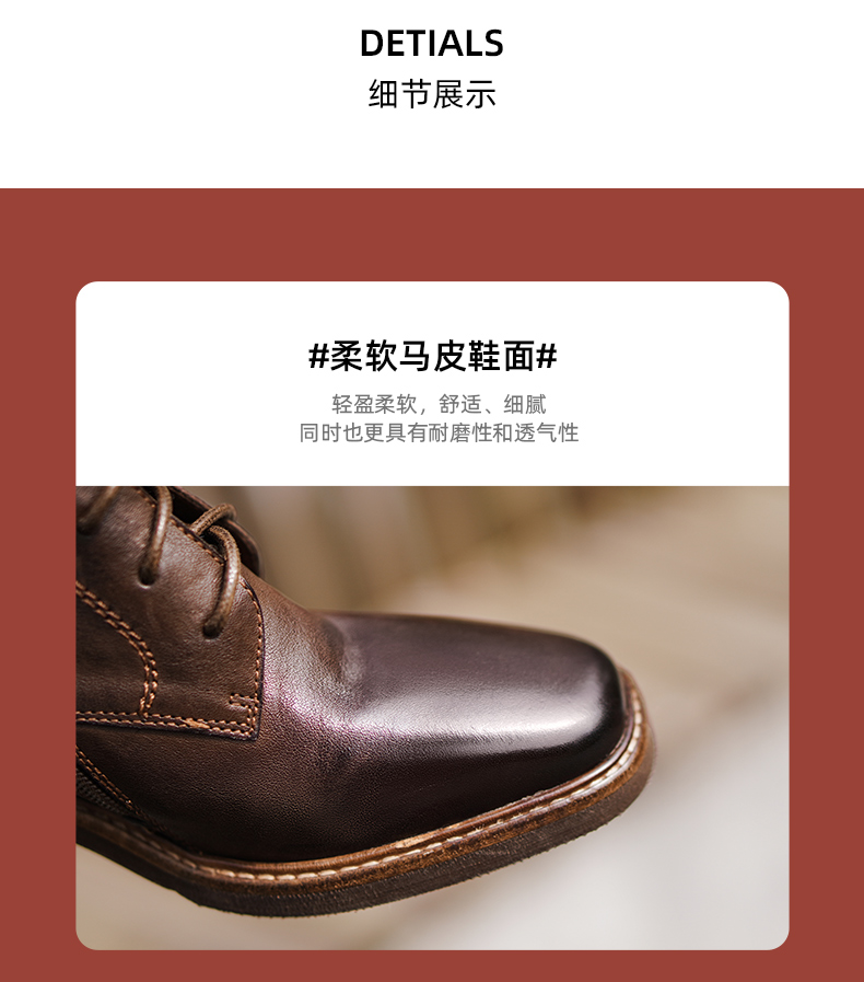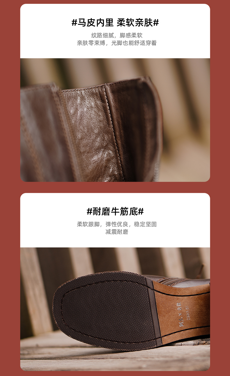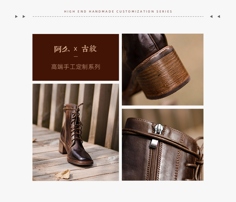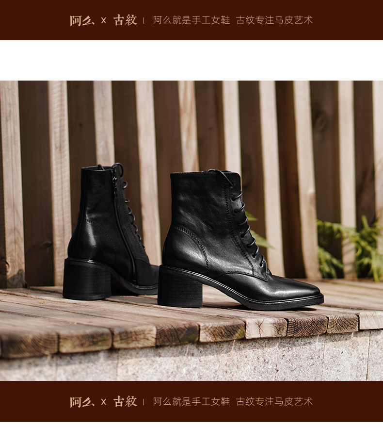 【阿么古纹马皮鞋】复古雅丹风绑带高跟短靴6CM英伦风职业时装靴女