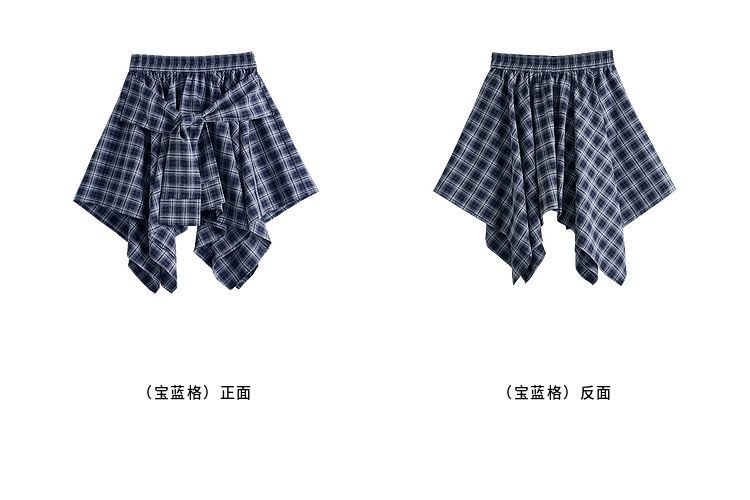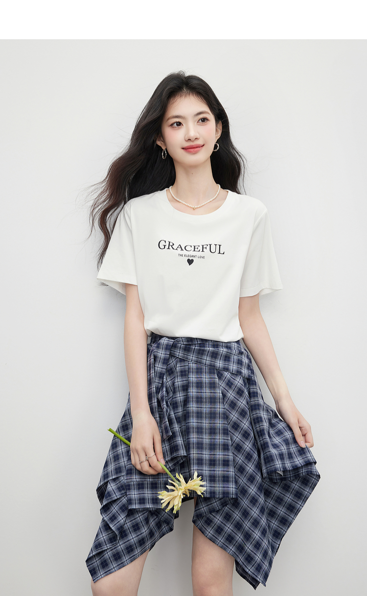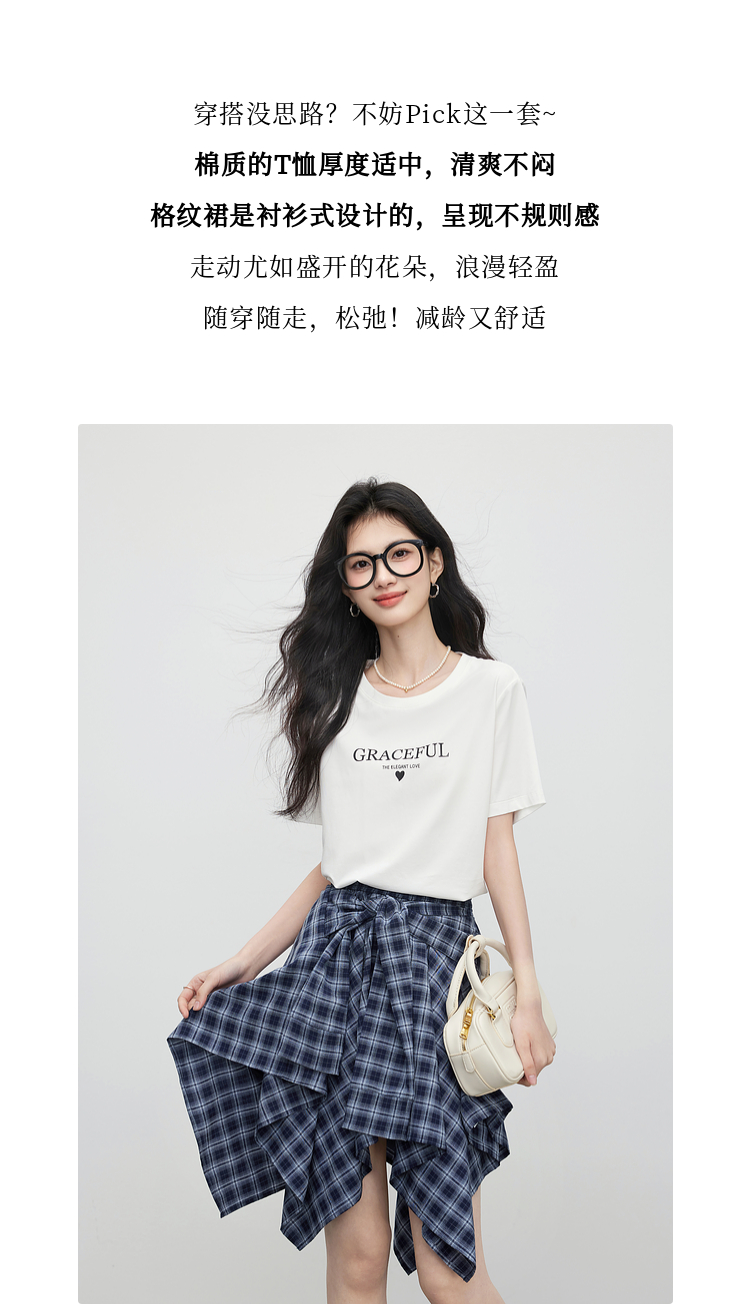 【07/09新品】熙世界夏日ootd穿搭套装女士字母印花T恤不规则格纹半身裙两件套