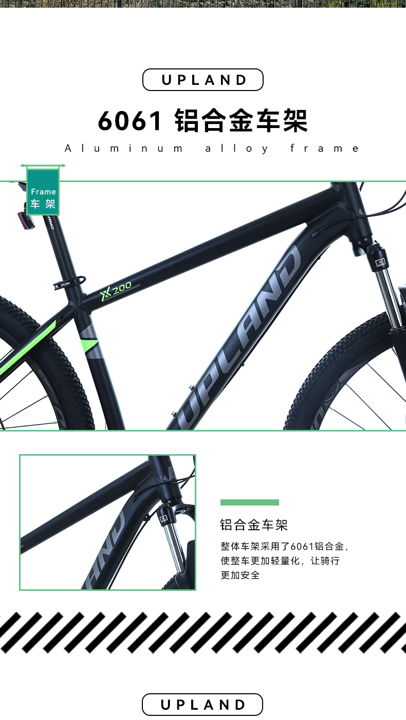 UPLAND(阿普兰)X200铝合金29寸油压碟刹避震叉成人越野山地自行车