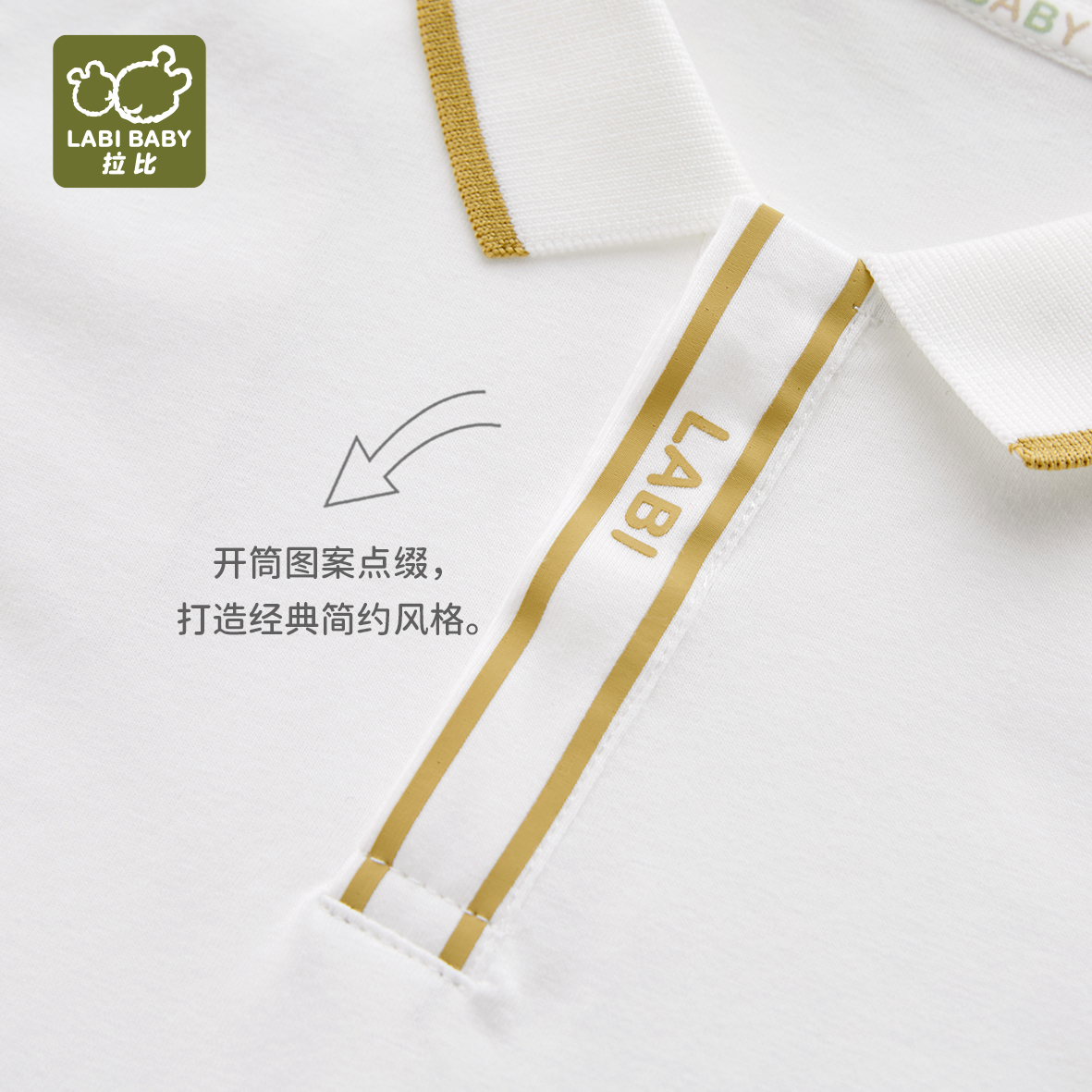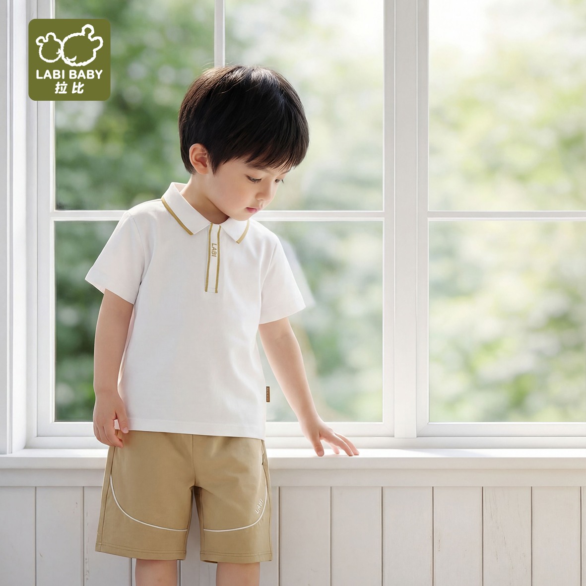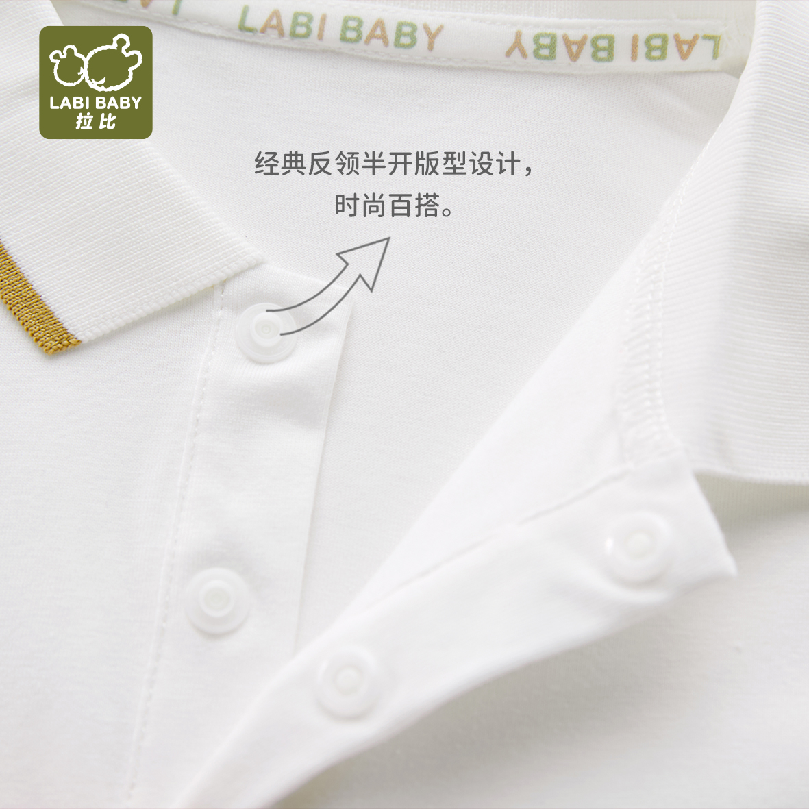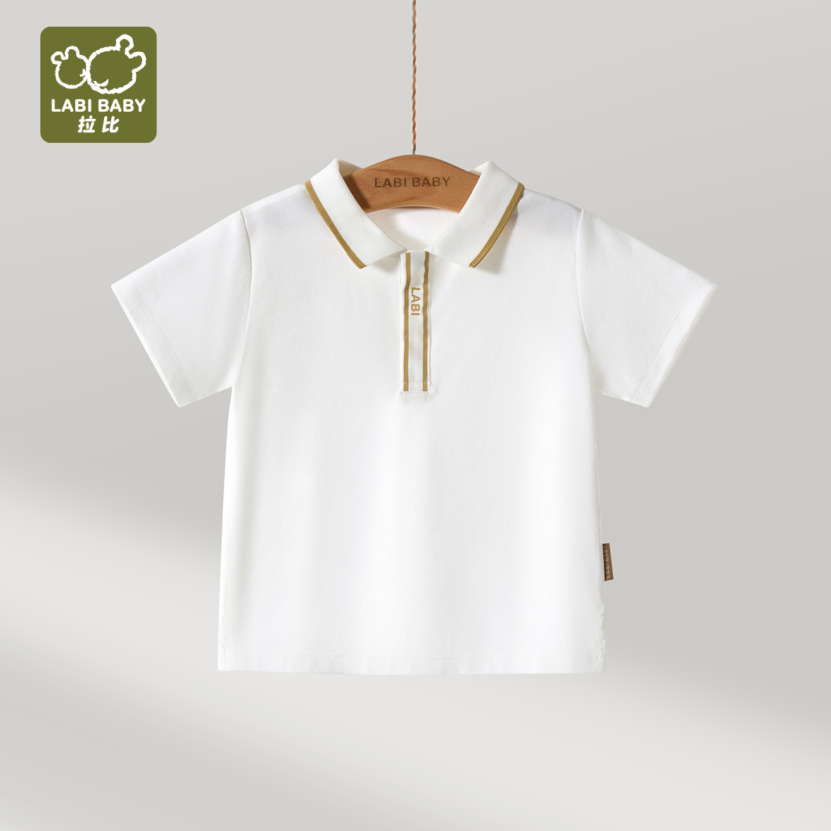 拉比童衣夏悦动反领短袖衣米白j6LZBC100701