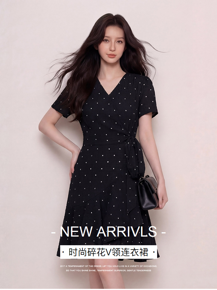 奢姿大码女装2026夏季减龄绑带设计碎花裙子胖妹妹时尚V领连衣裙9962854672
