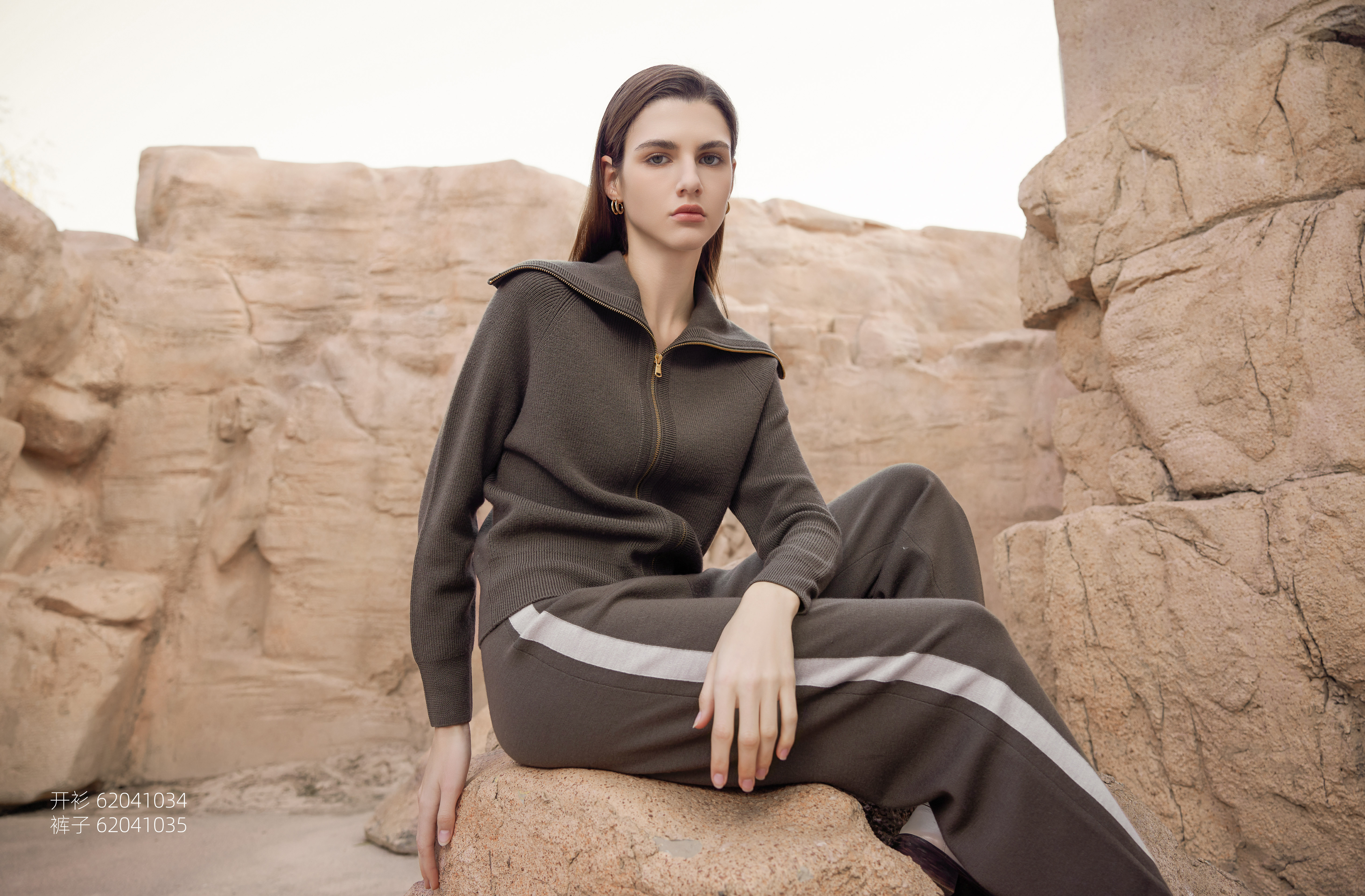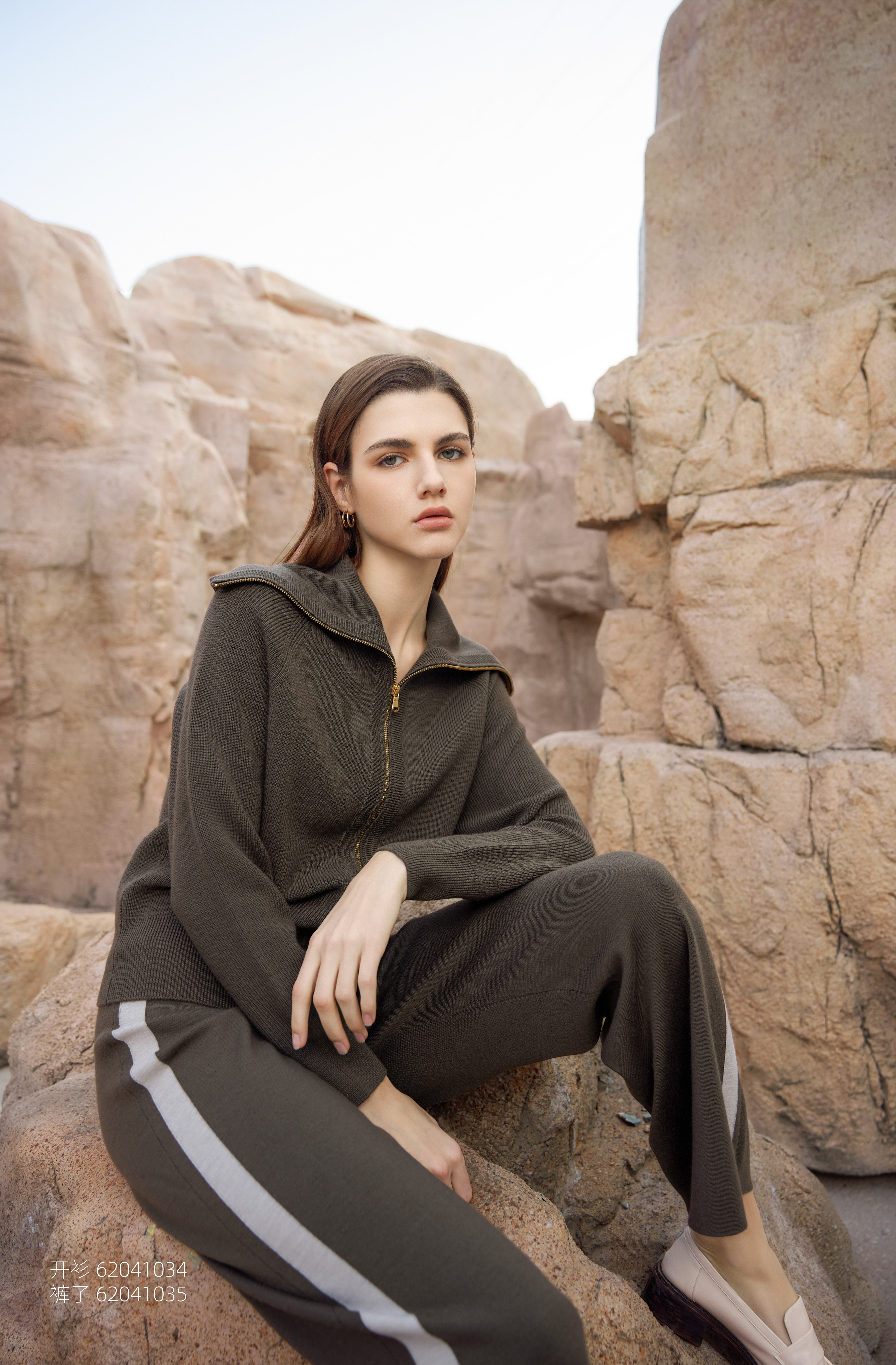 【纯羊毛针织套衫】24年春季新品女士针织外套条纹撞色裤子