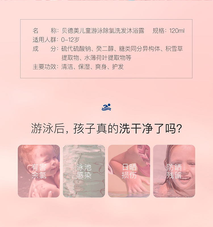 【贝德美】儿童游泳专用除氯洗发水沐浴露二合一儿童沐浴液男女童洗护