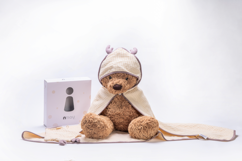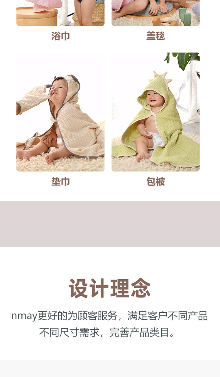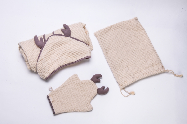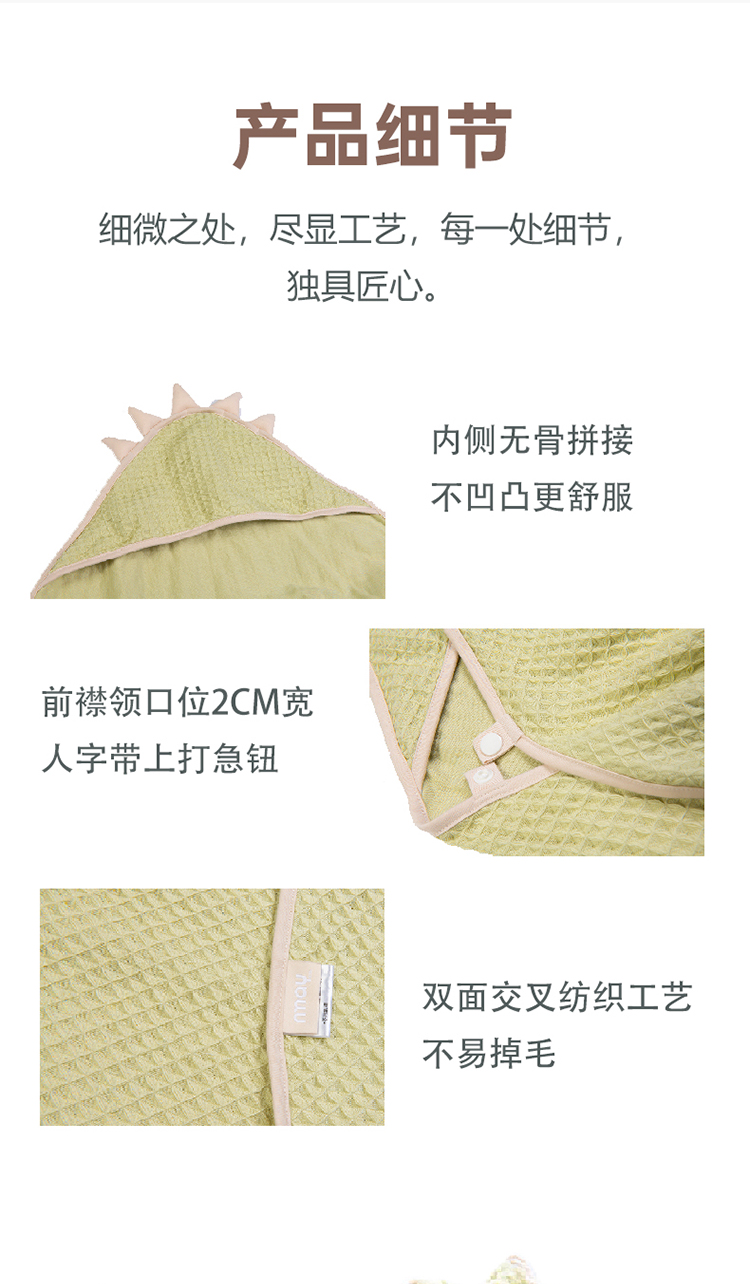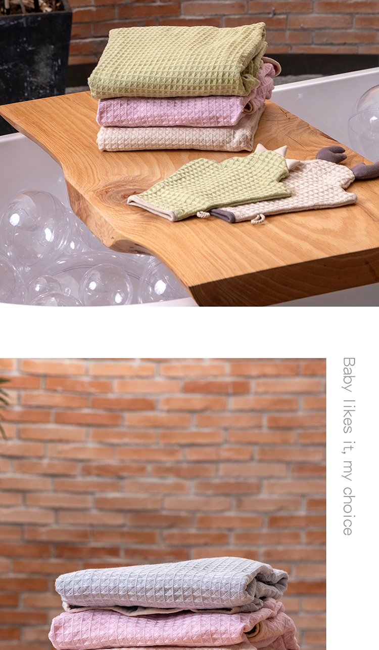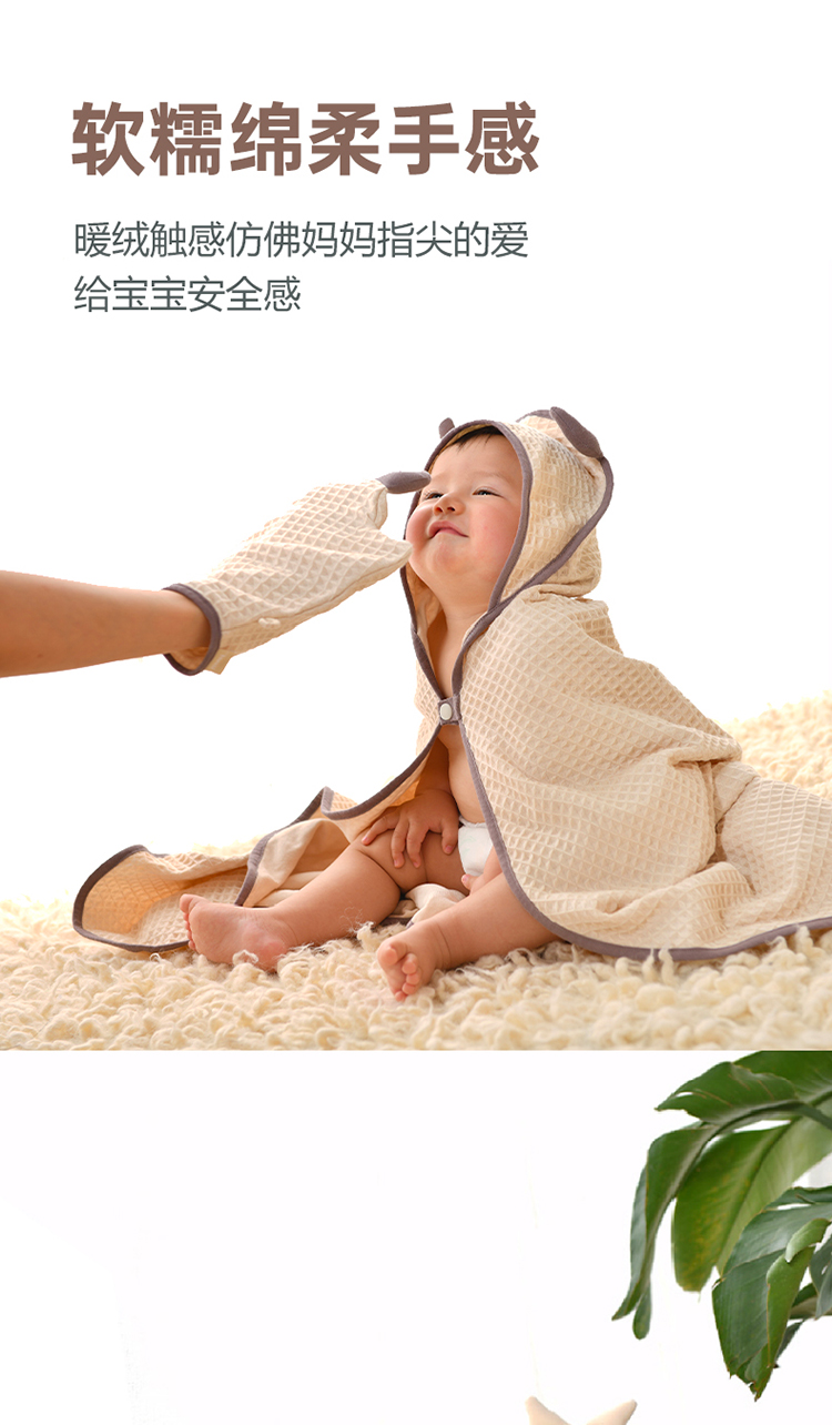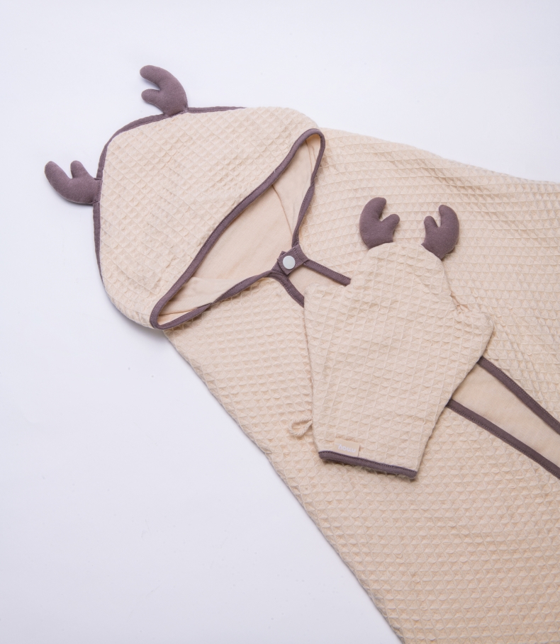 德国nmay 小怪兽华夫格婴童浴巾+沐浴手套套装 新疆长绒棉丝柔纺 新生儿/儿童连帽浴袍 柔软棉柔吸水强一巾多用 0岁+