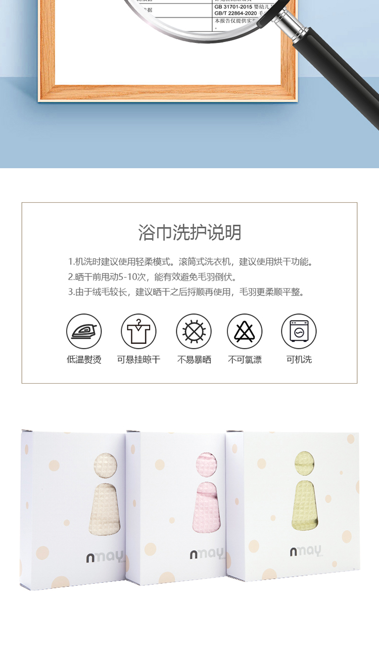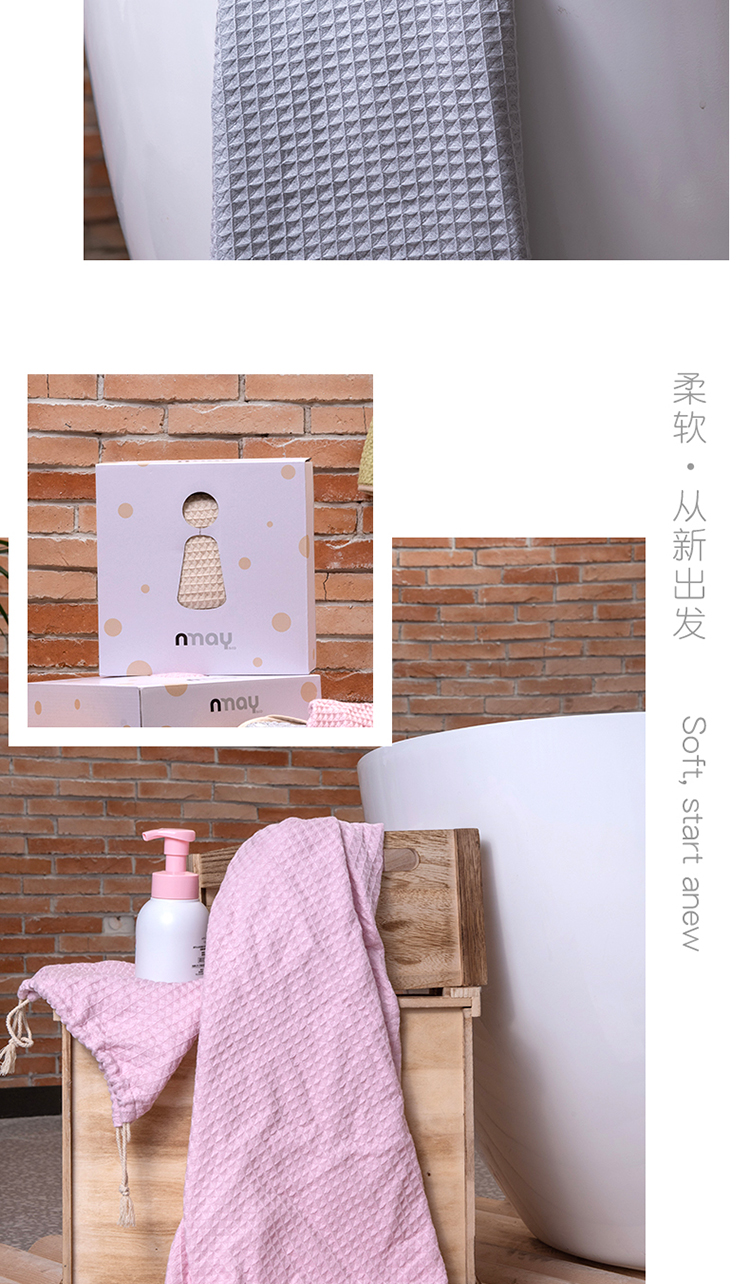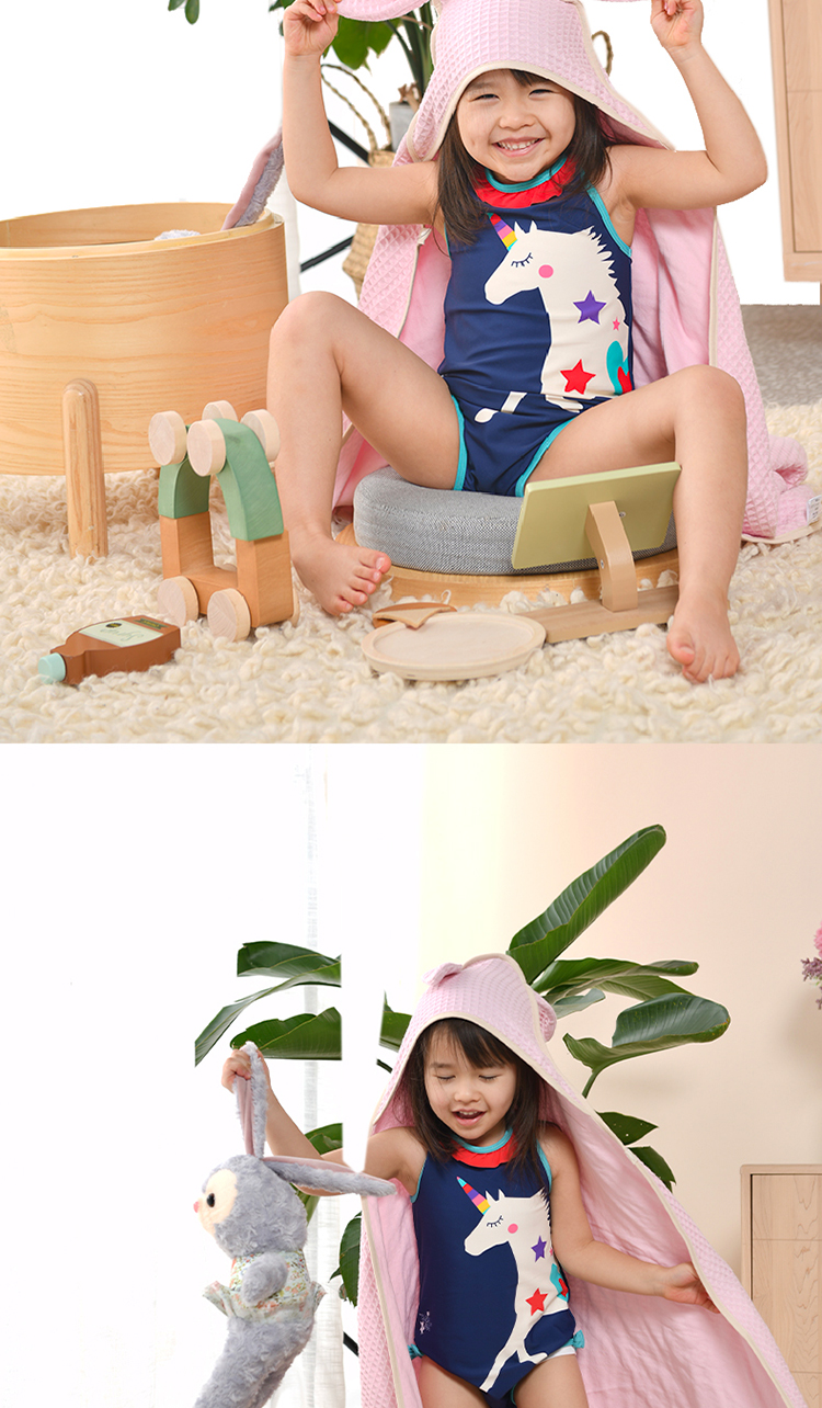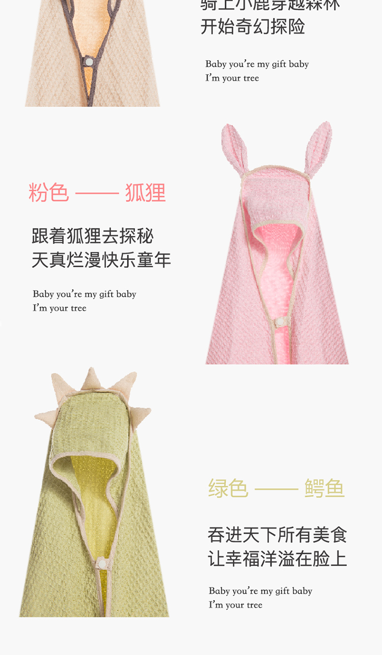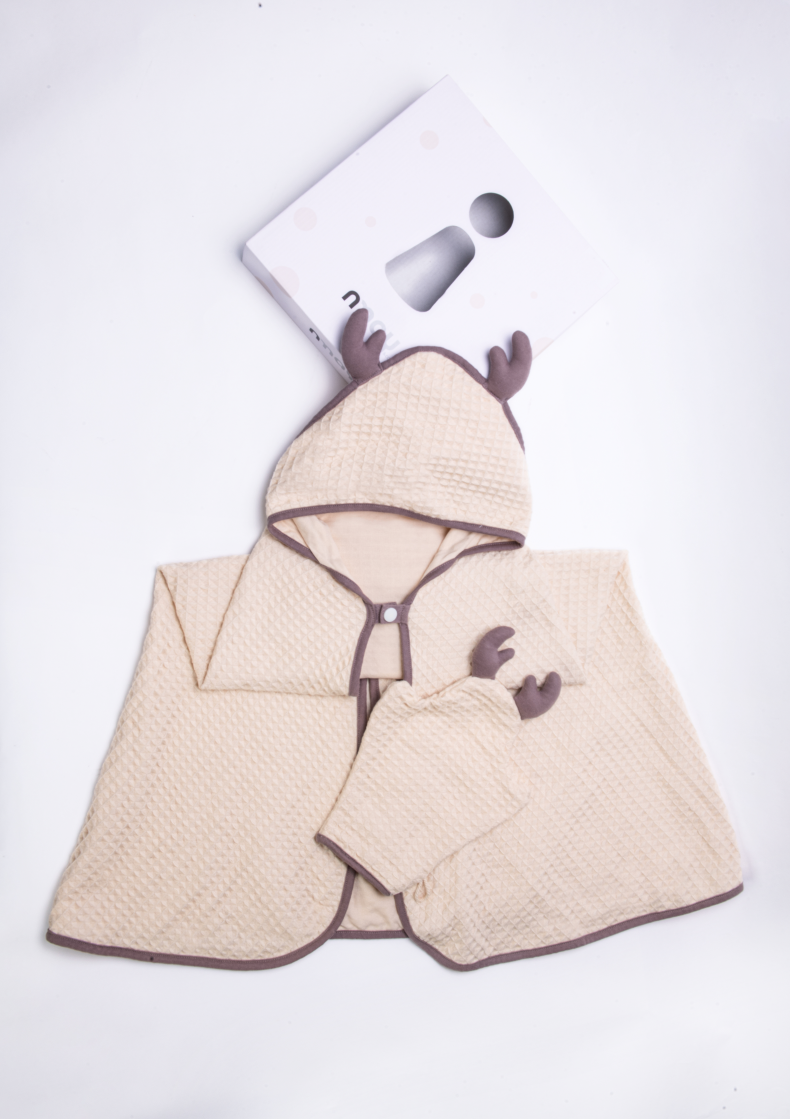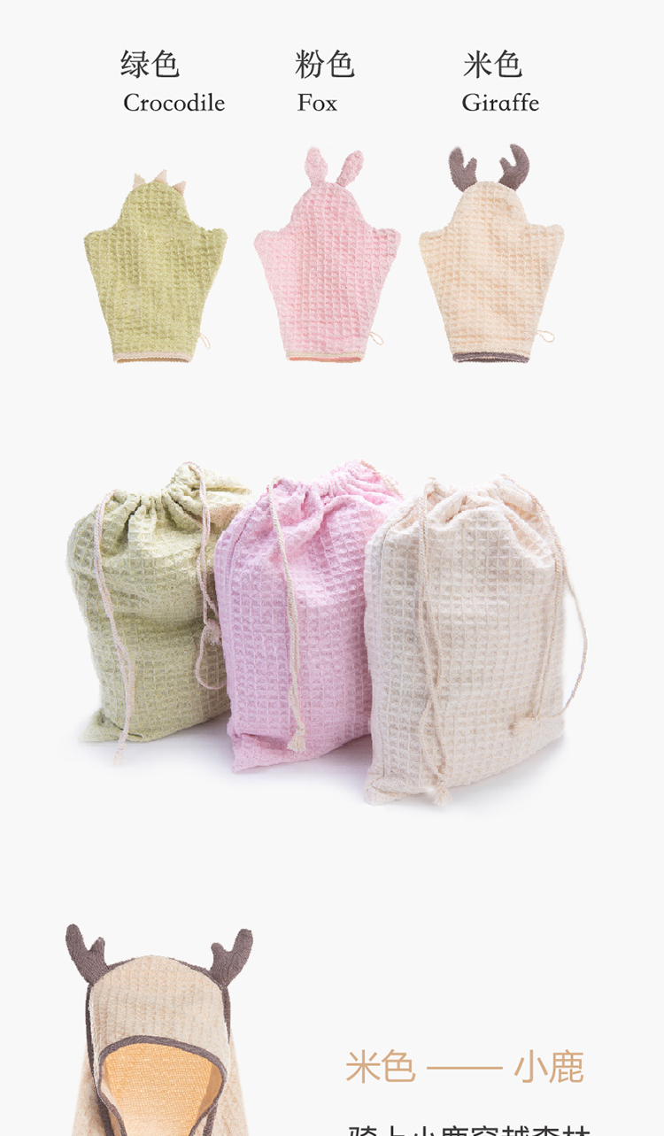 德国nmay 小怪兽华夫格婴童浴巾+沐浴手套套装 新疆长绒棉丝柔纺 新生儿/儿童连帽浴袍 柔软棉柔吸水强一巾多用 0岁+