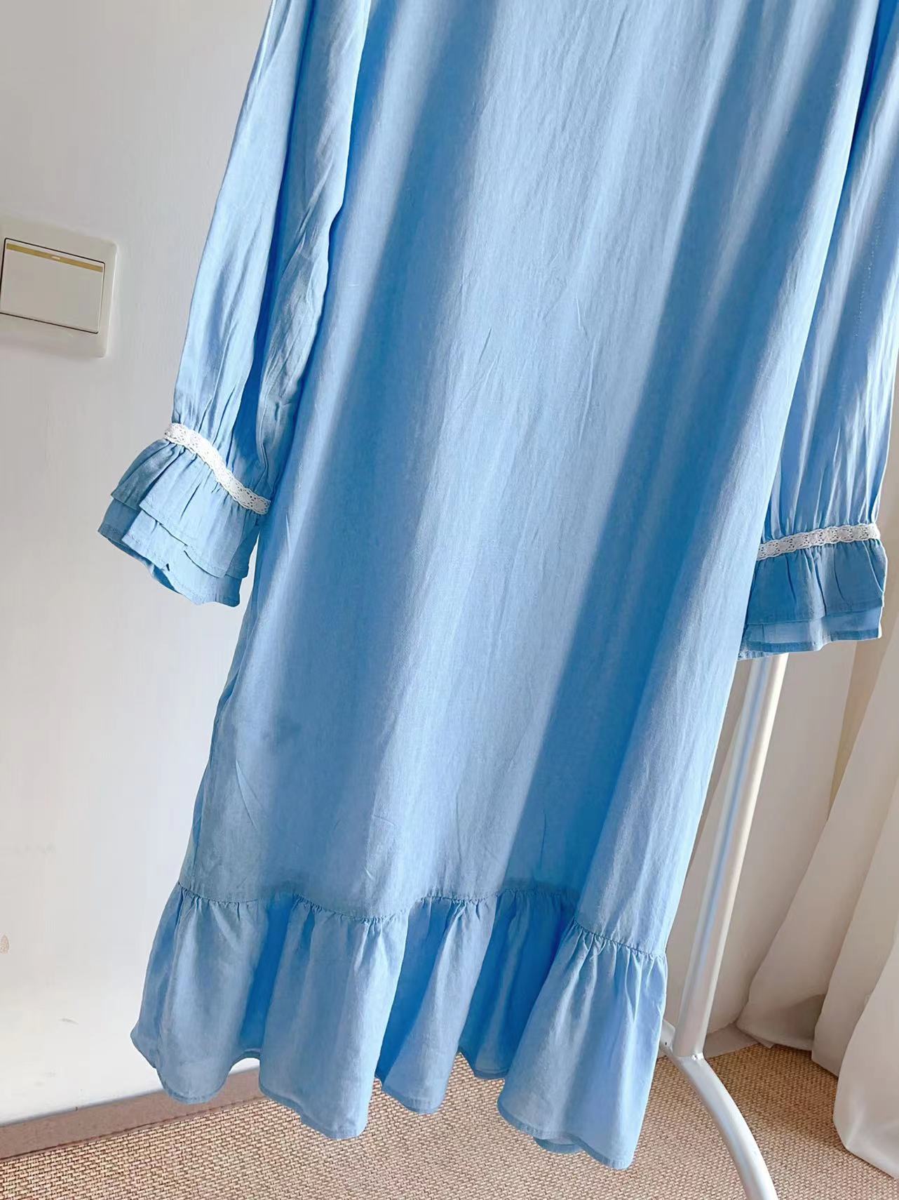 🎈超值回馈老粉【无退换】❤记忆无法贩卖,却能分享❤天空海盐蓝,荷叶边连衣裙。一点点复古,一点点国风。