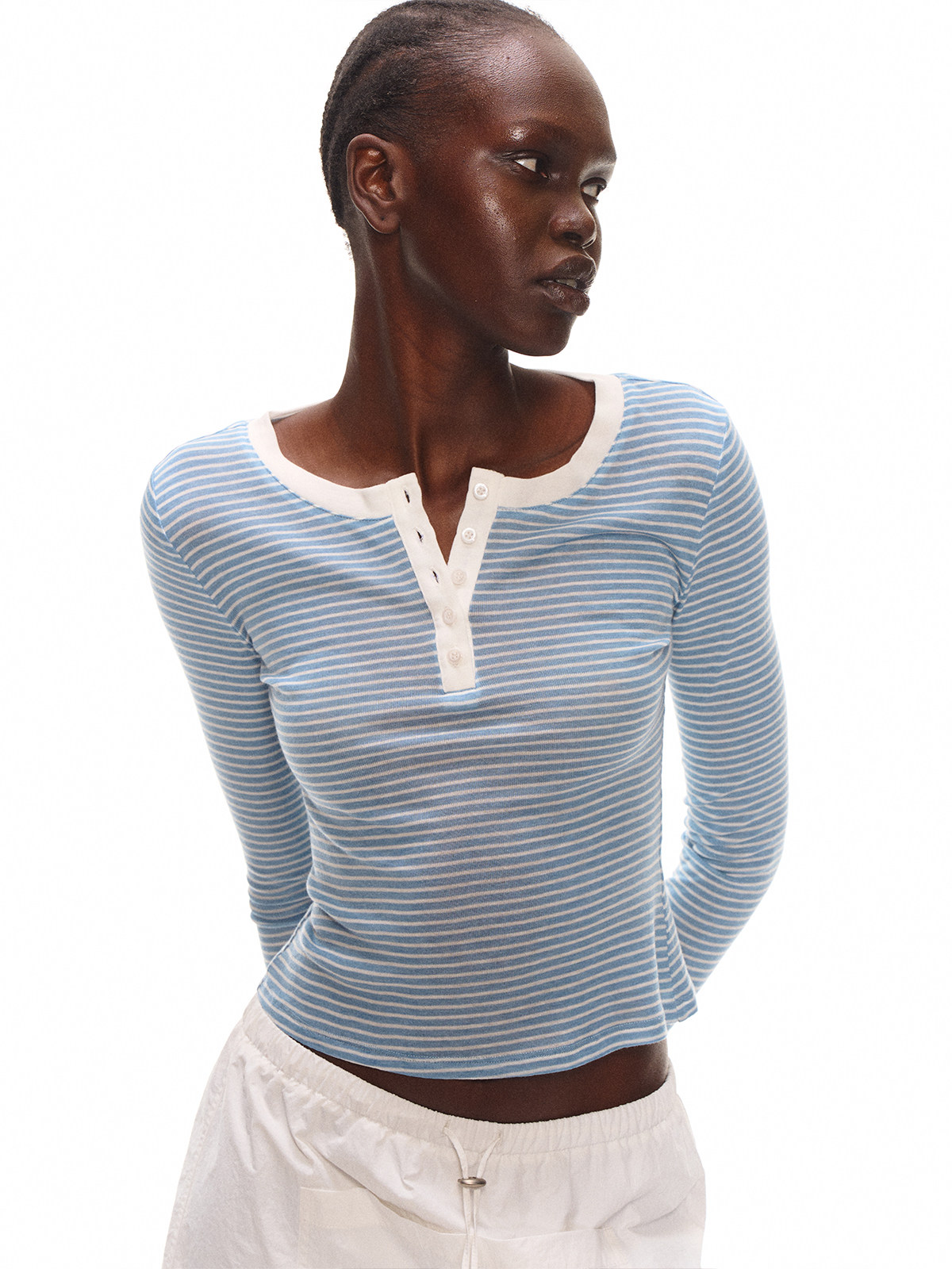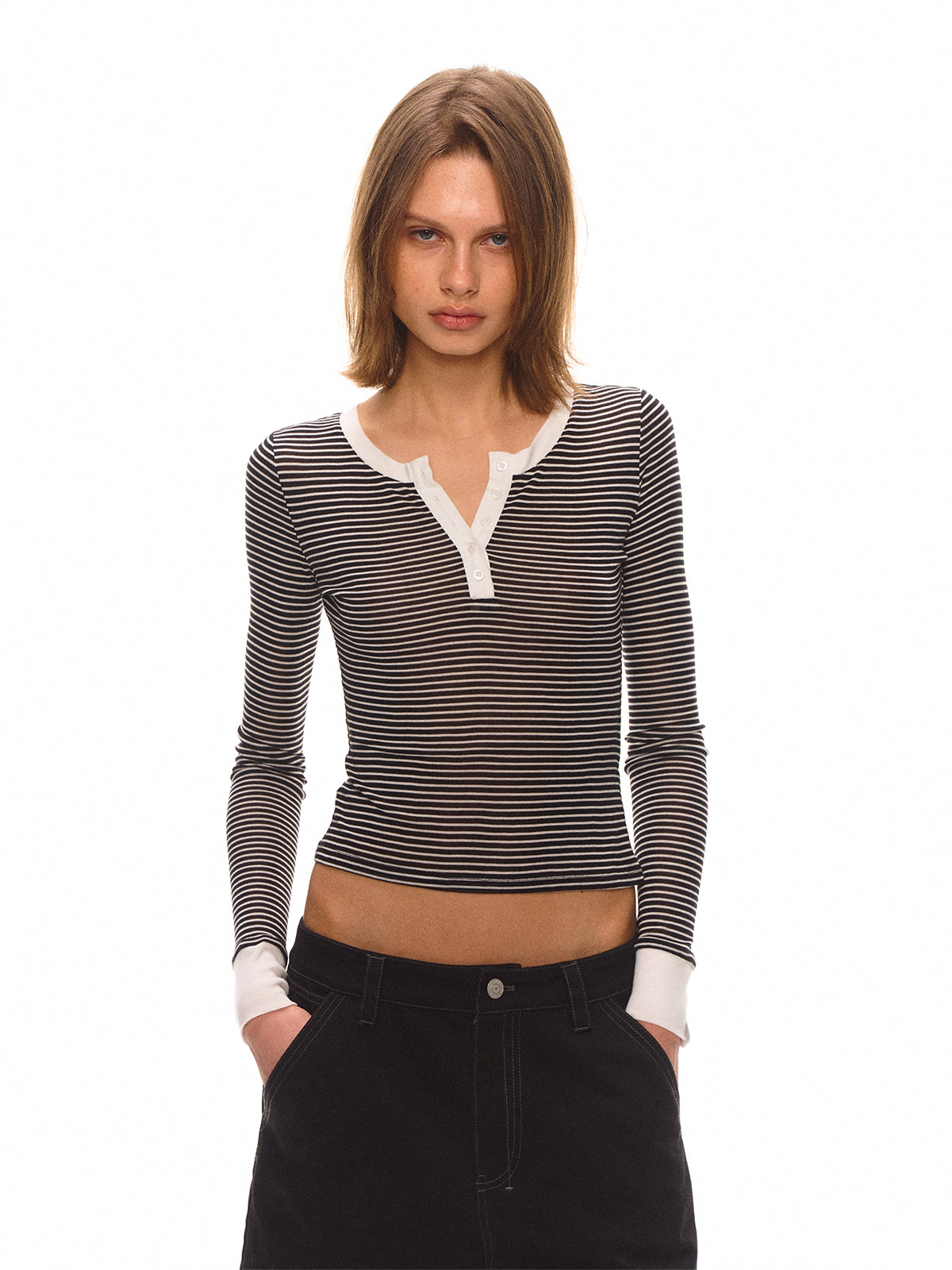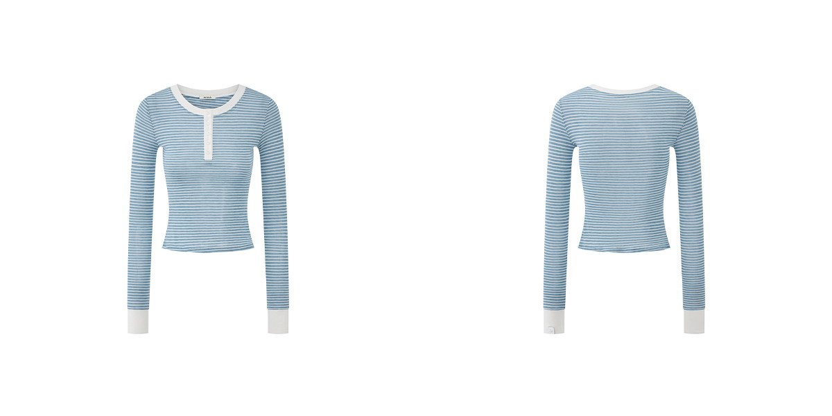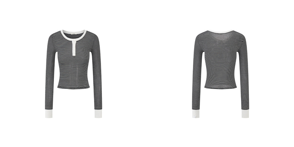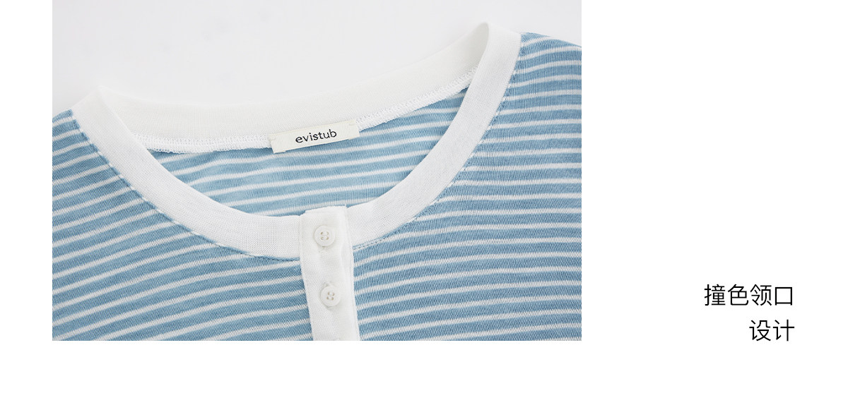 Evistub girls/E-6XCX1933/ 亨利领条纹长袖 天丝羊毛混纺修身正肩打底衫