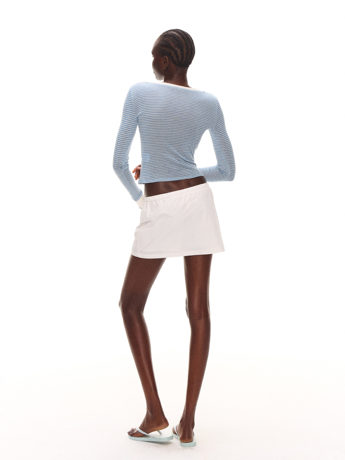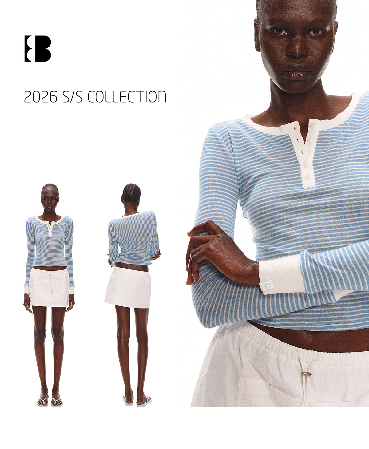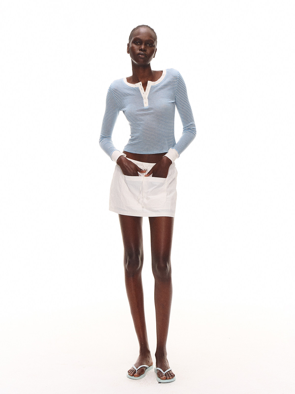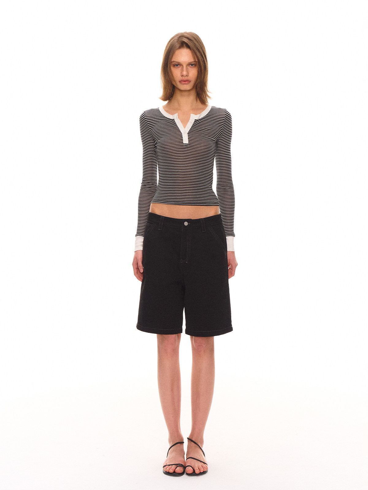 Evistub girls/E-6XCX1933/ 亨利领条纹长袖 天丝羊毛混纺修身正肩打底衫