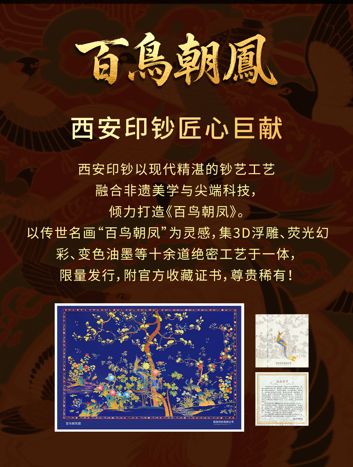 【西安印钞】百鸟朝凤荧光画纪念钞艺券炮筒