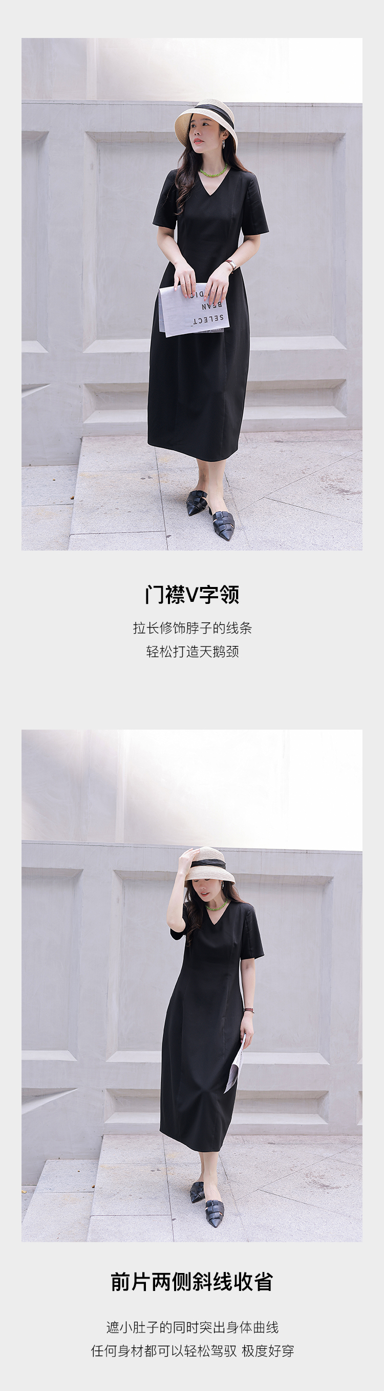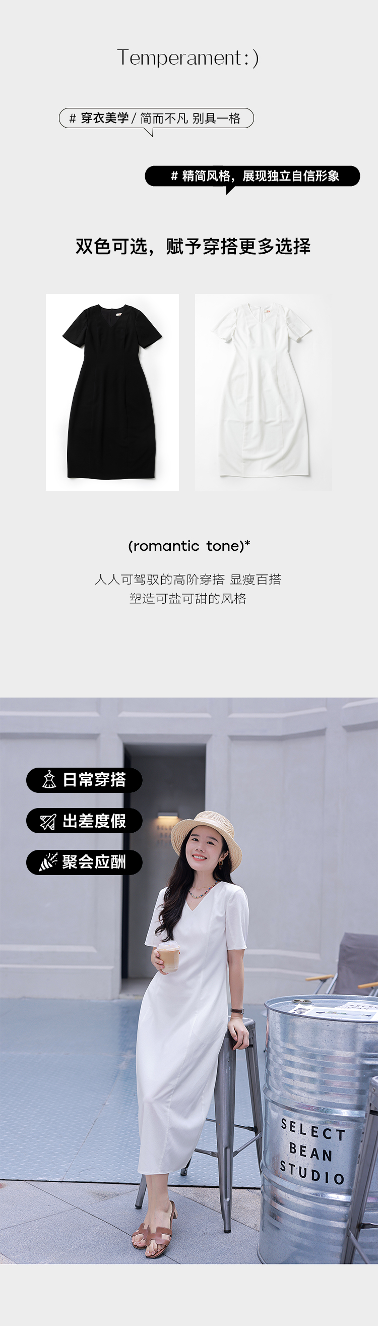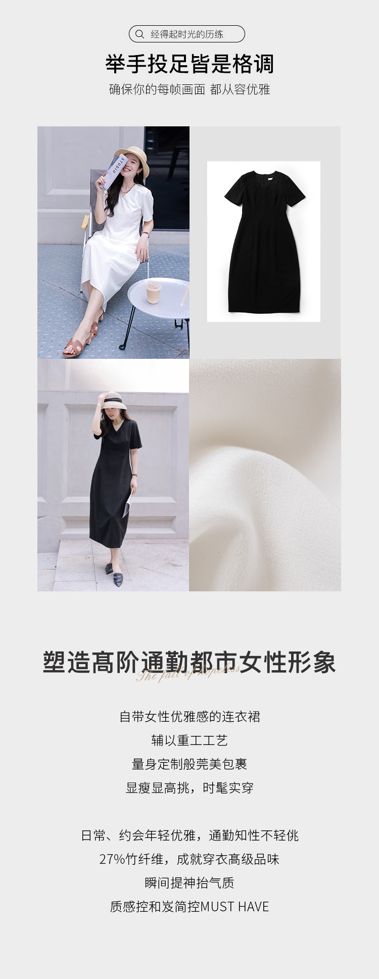 优雅气质女神 静奢风 智性通勤都市女性 竹纤维 黑白双色连衣裙