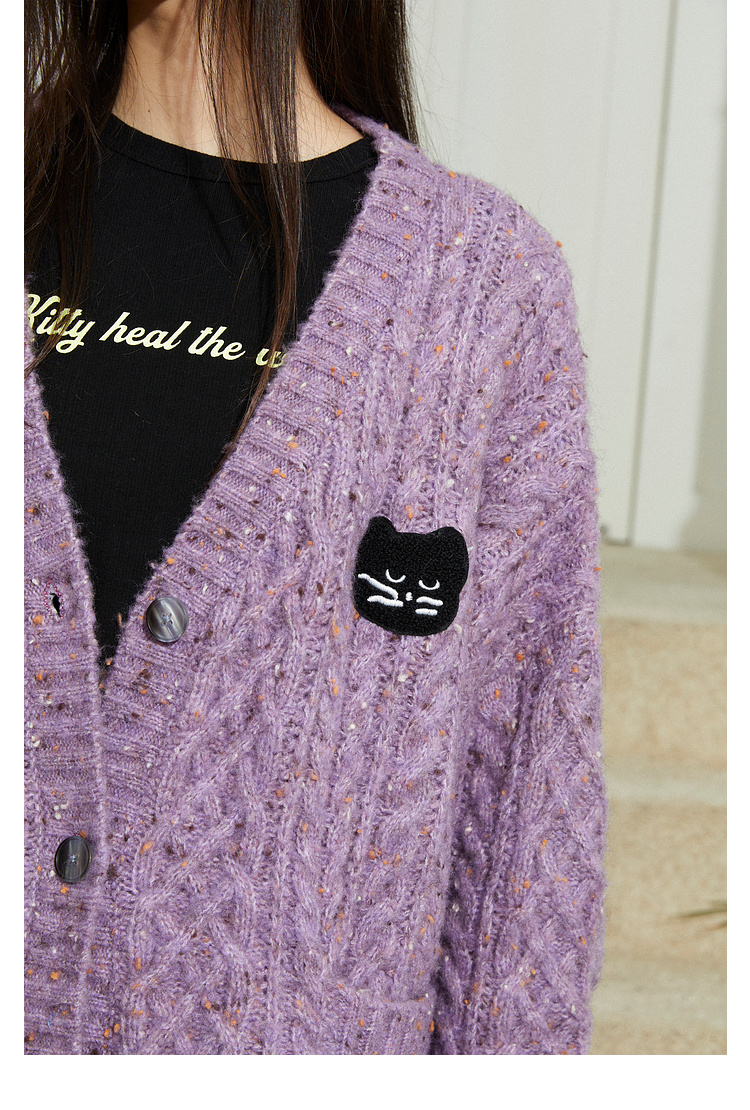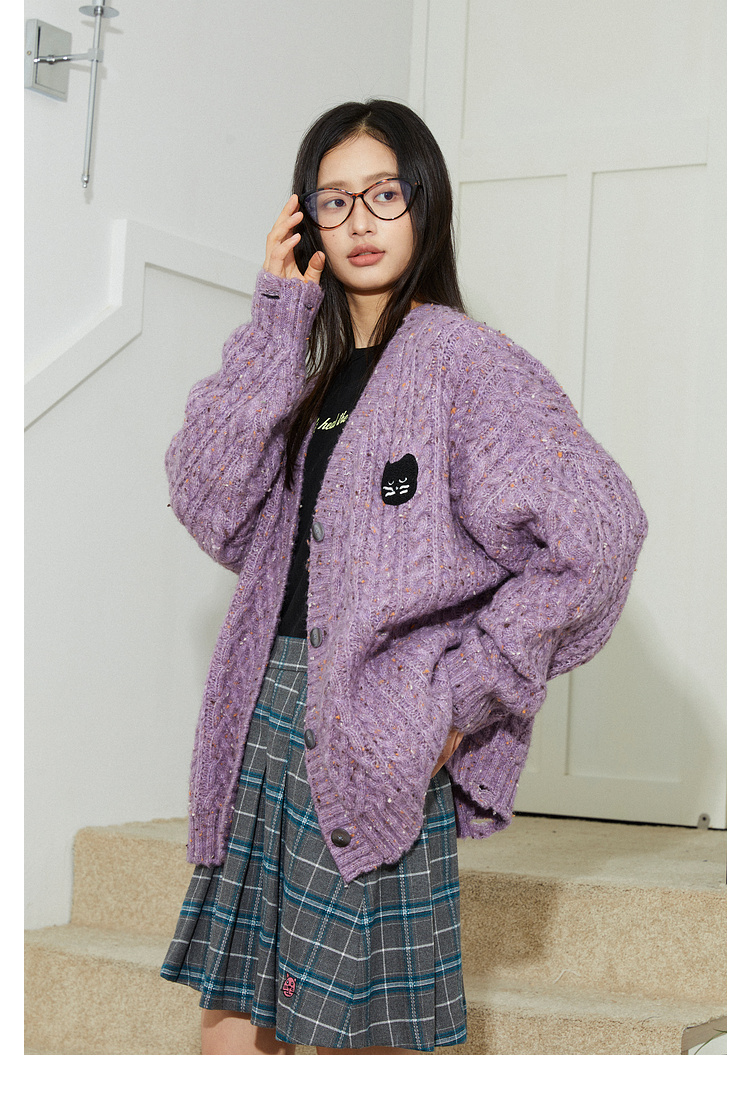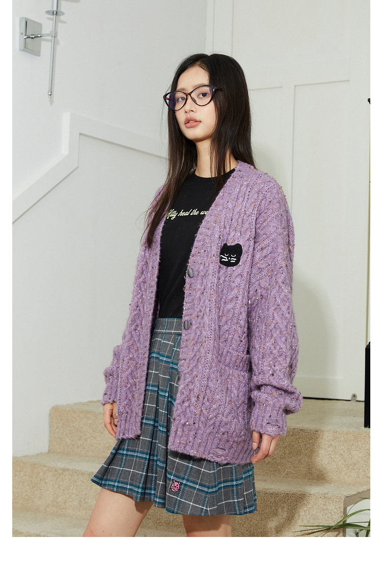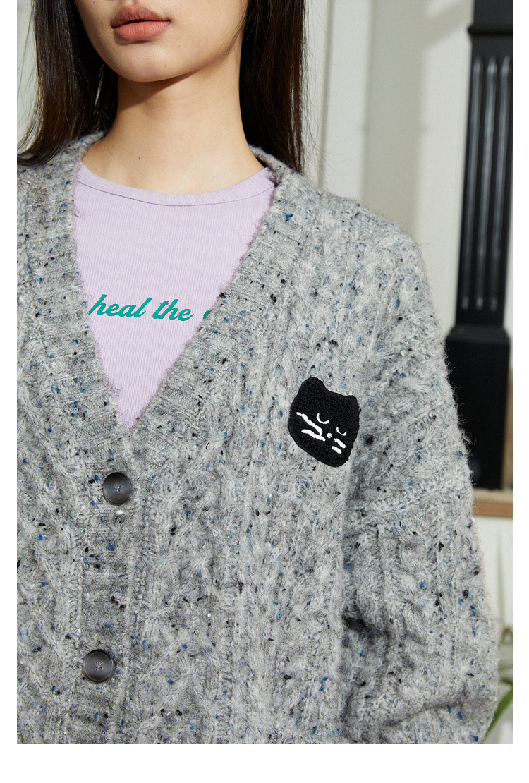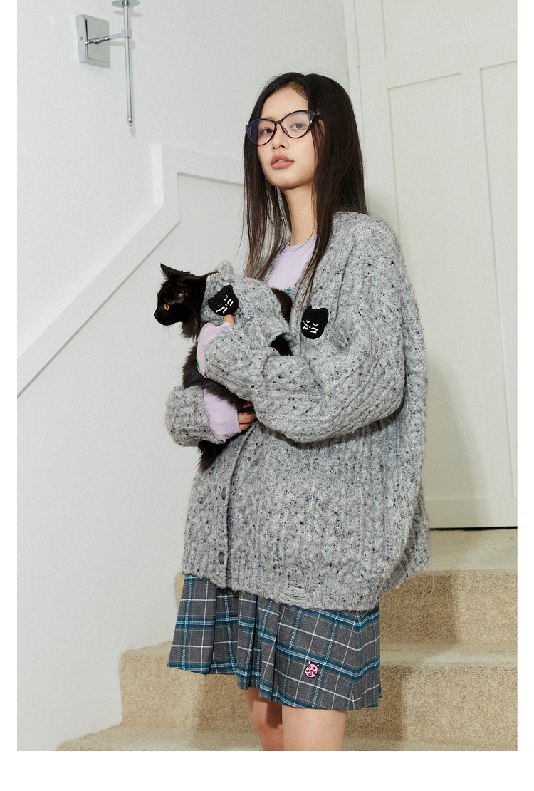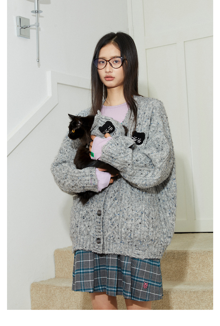 Mood Like Me/MMY2412/猫咪头像彩点绞花毛衣开衫