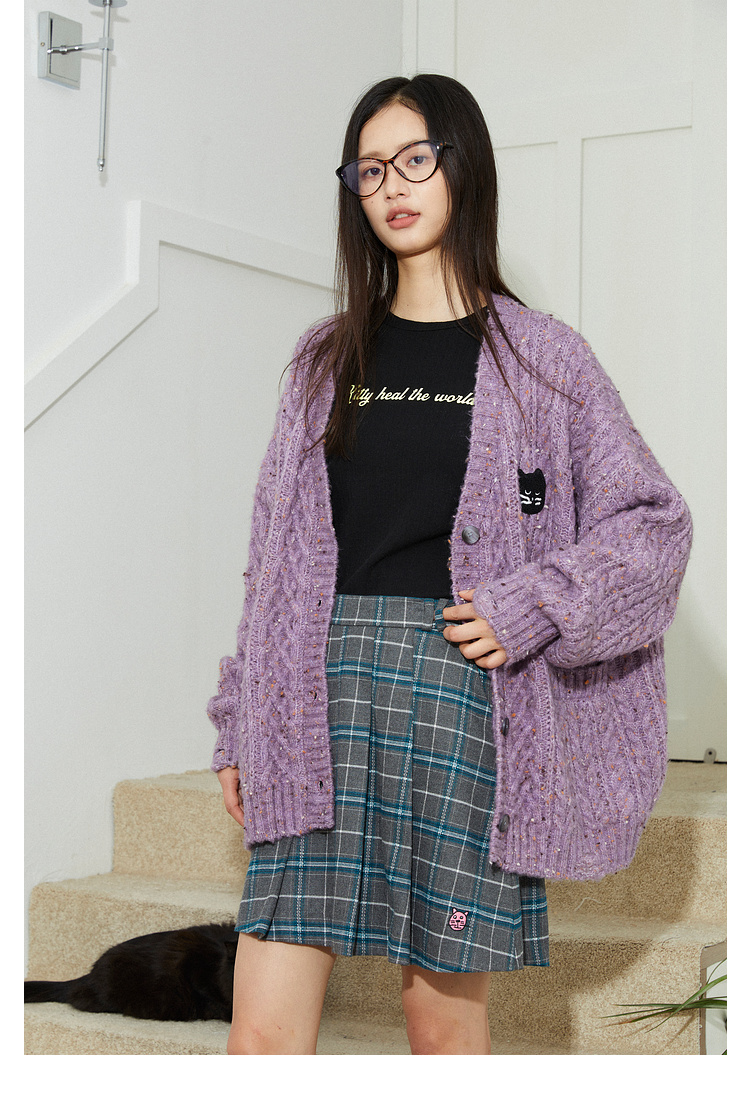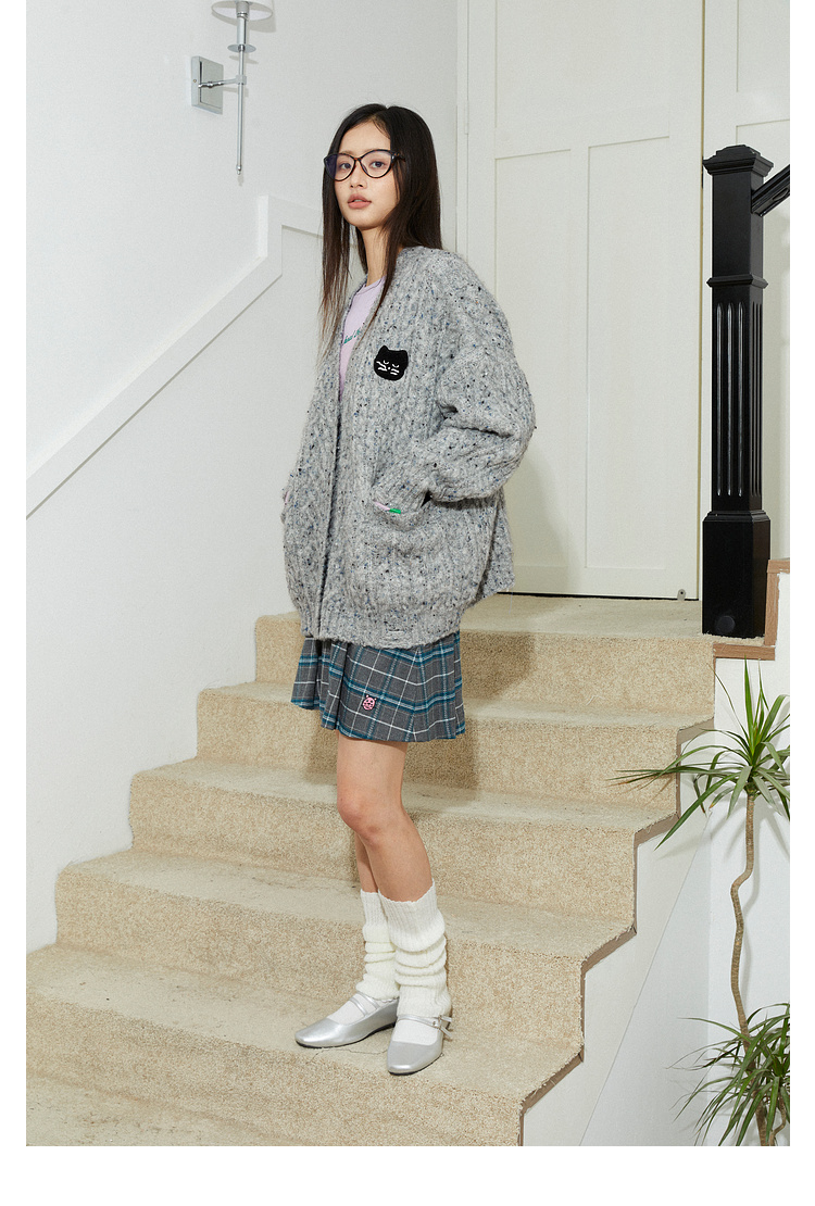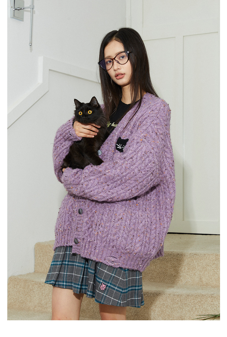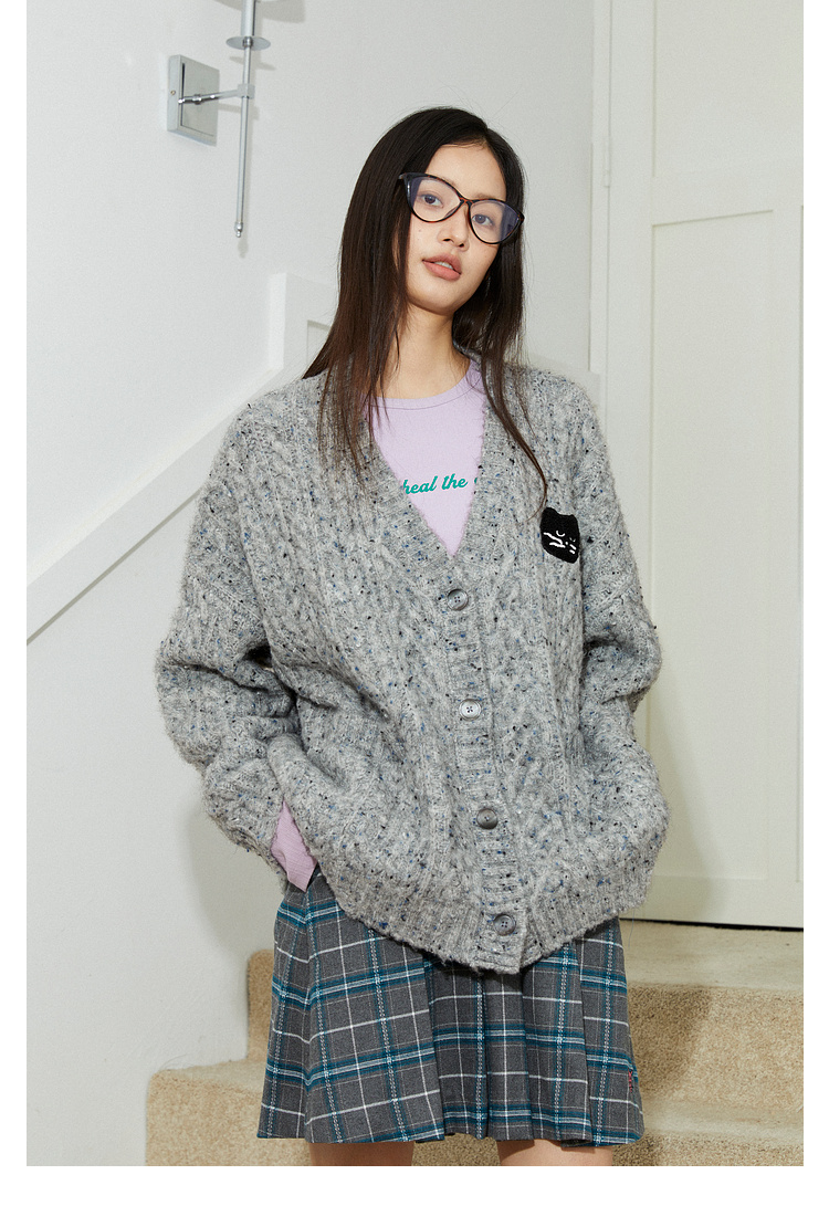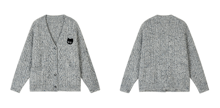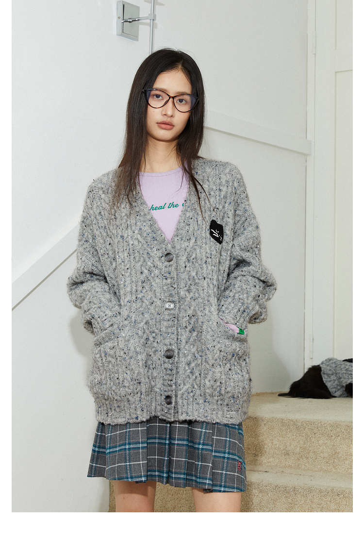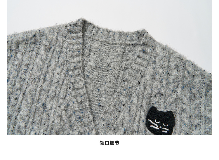 Mood Like Me/MMY2412/猫咪头像彩点绞花毛衣开衫