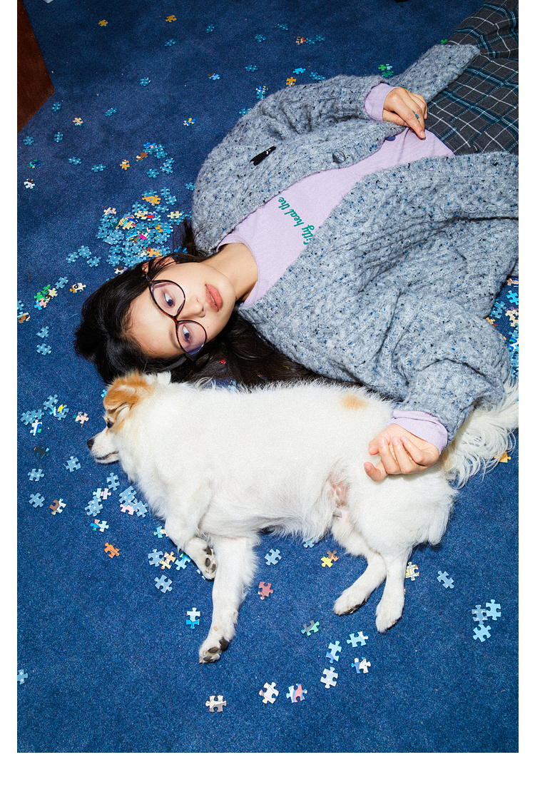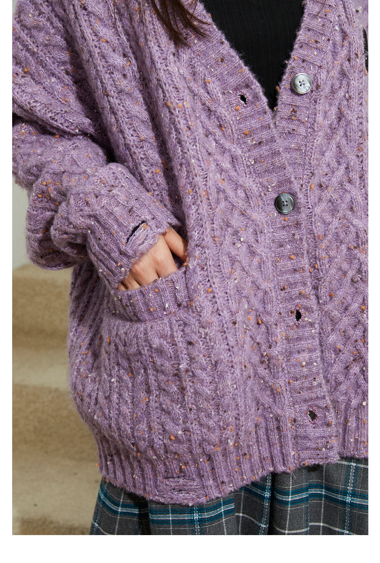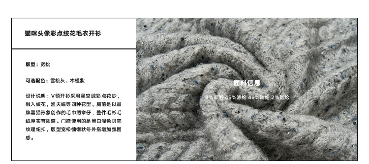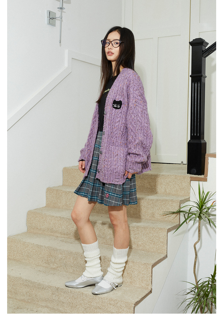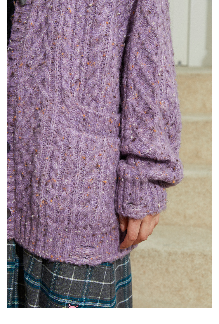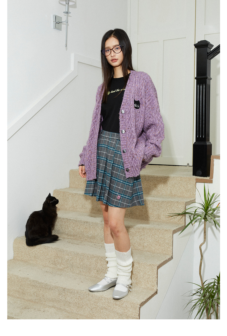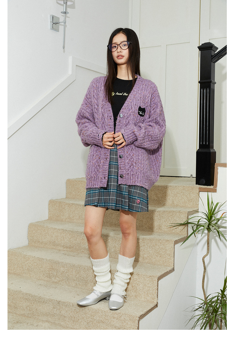 Mood Like Me/MMY2412/猫咪头像彩点绞花毛衣开衫