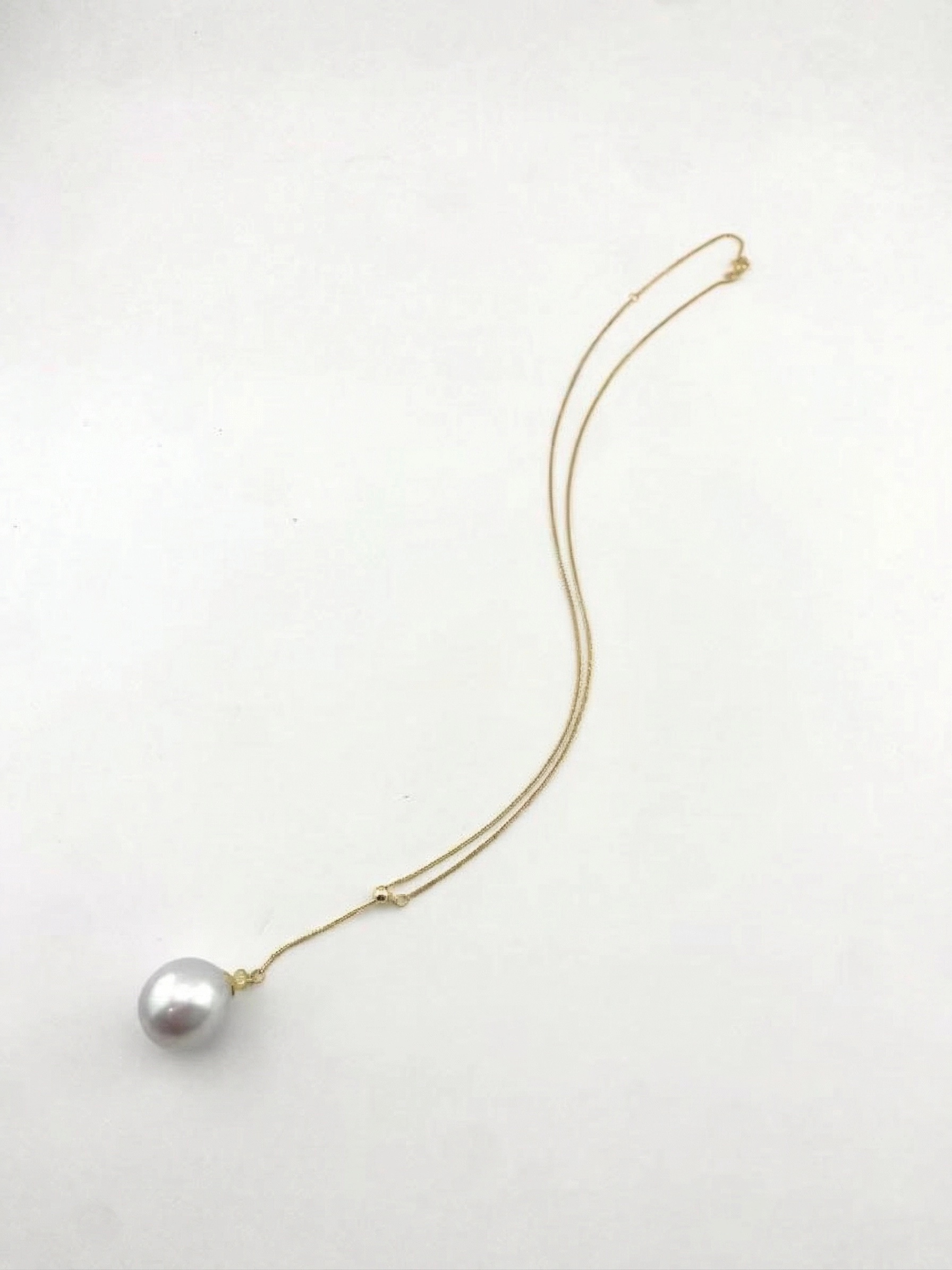 【挚友限定】y字链 18k金水滴澳白珍珠项链 13-14mm