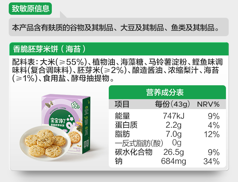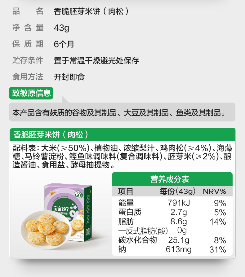 宝宝馋了 香脆胚芽米饼(海苔/肉松)43g*3 多规格