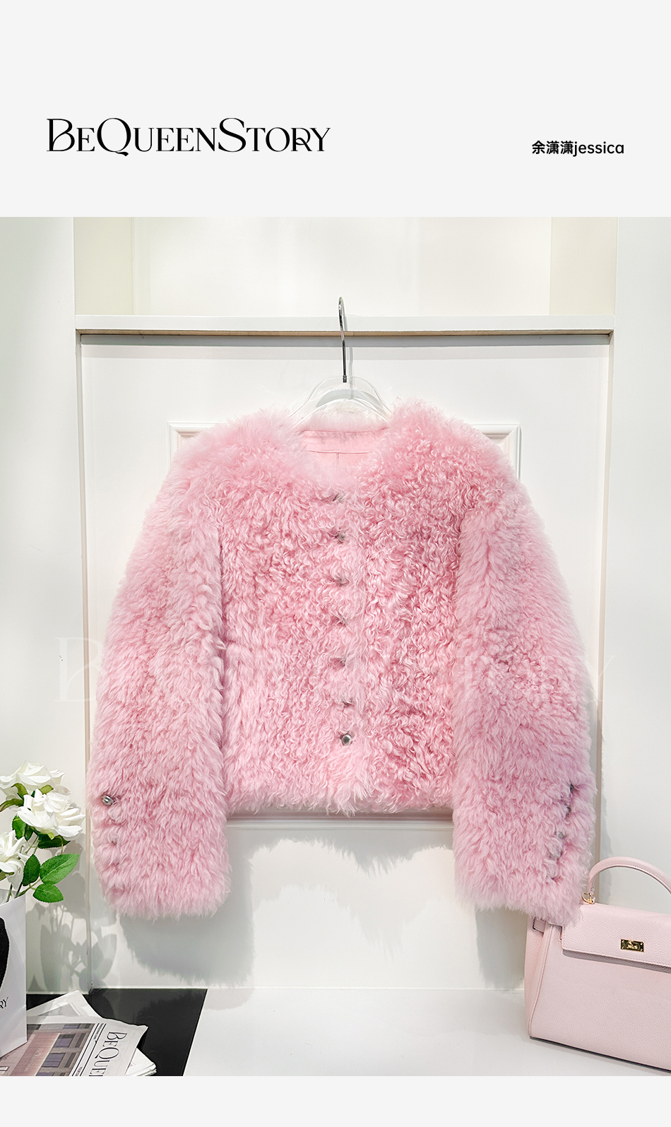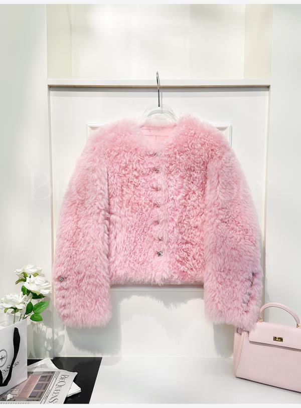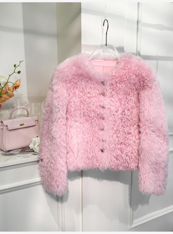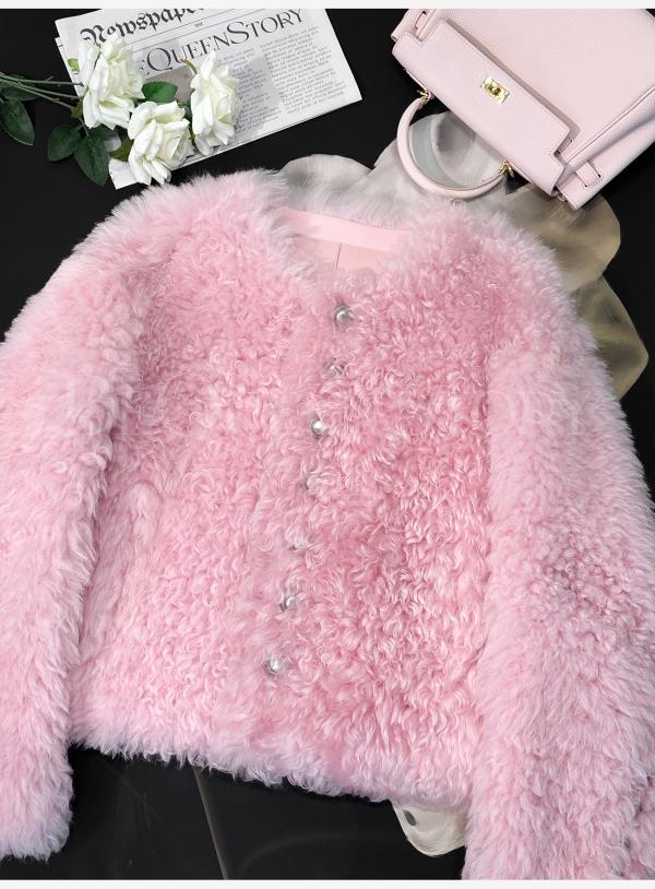余潇潇【氧气甜桃】托斯卡纳羊皮毛一体轻奢气质时尚圆领皮草外套