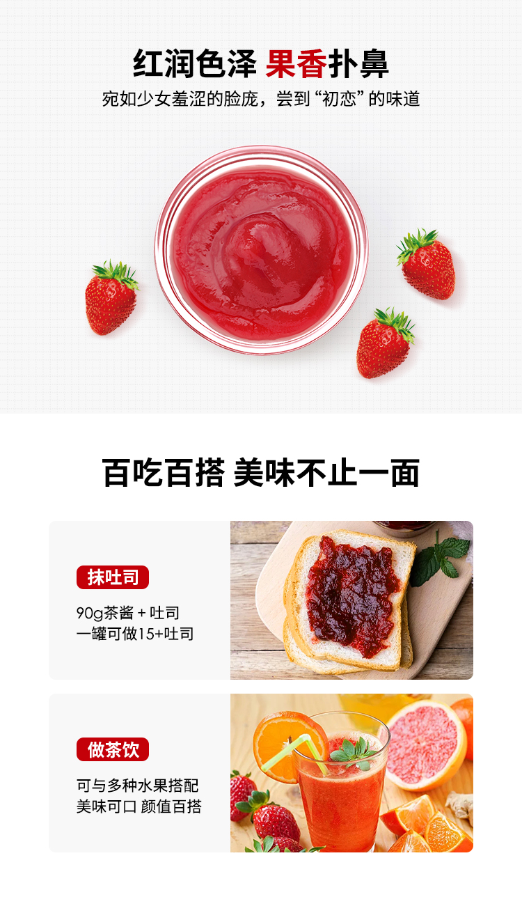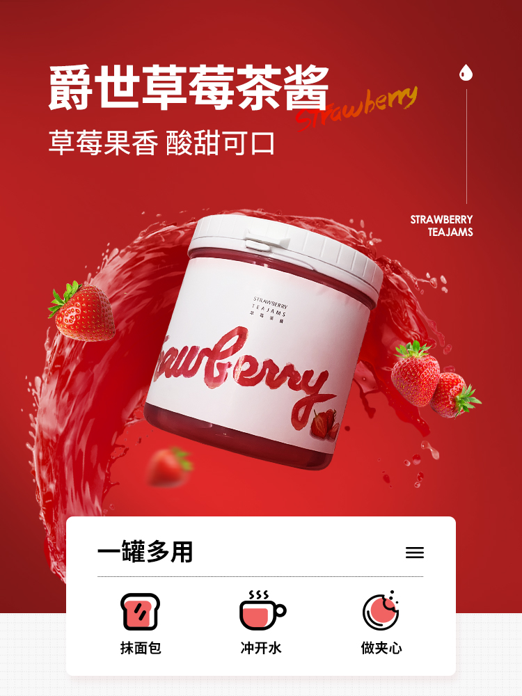 【爵世茶酱系列】草莓茶酱1300克/罐 果酱调味品