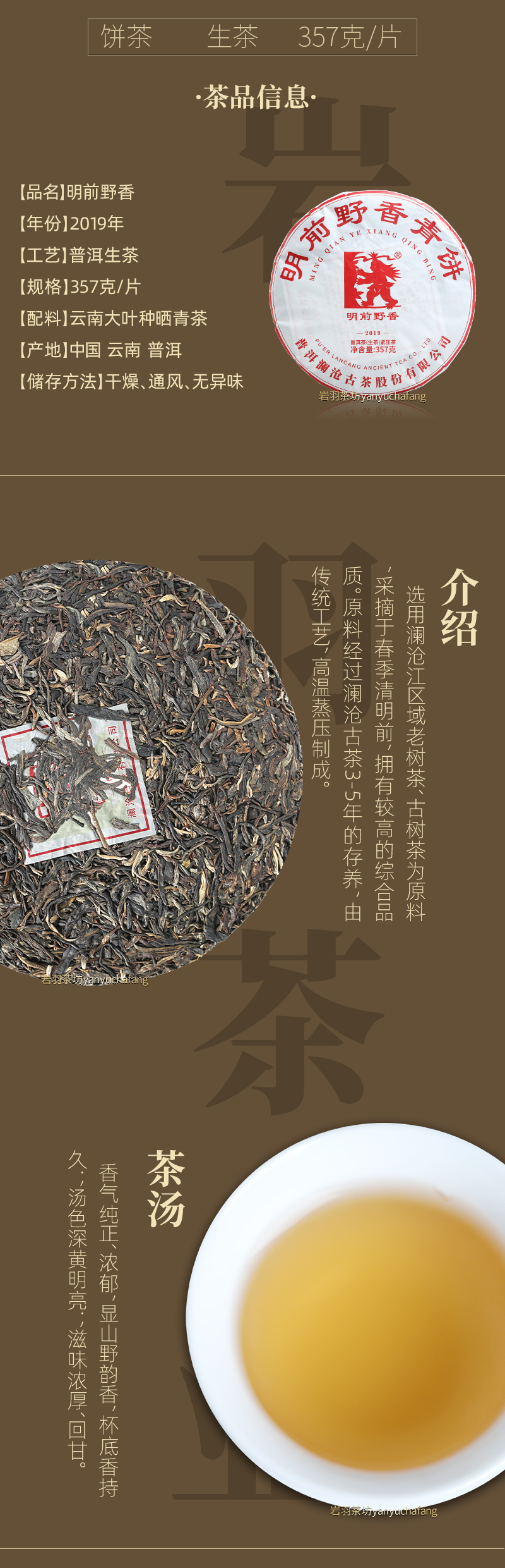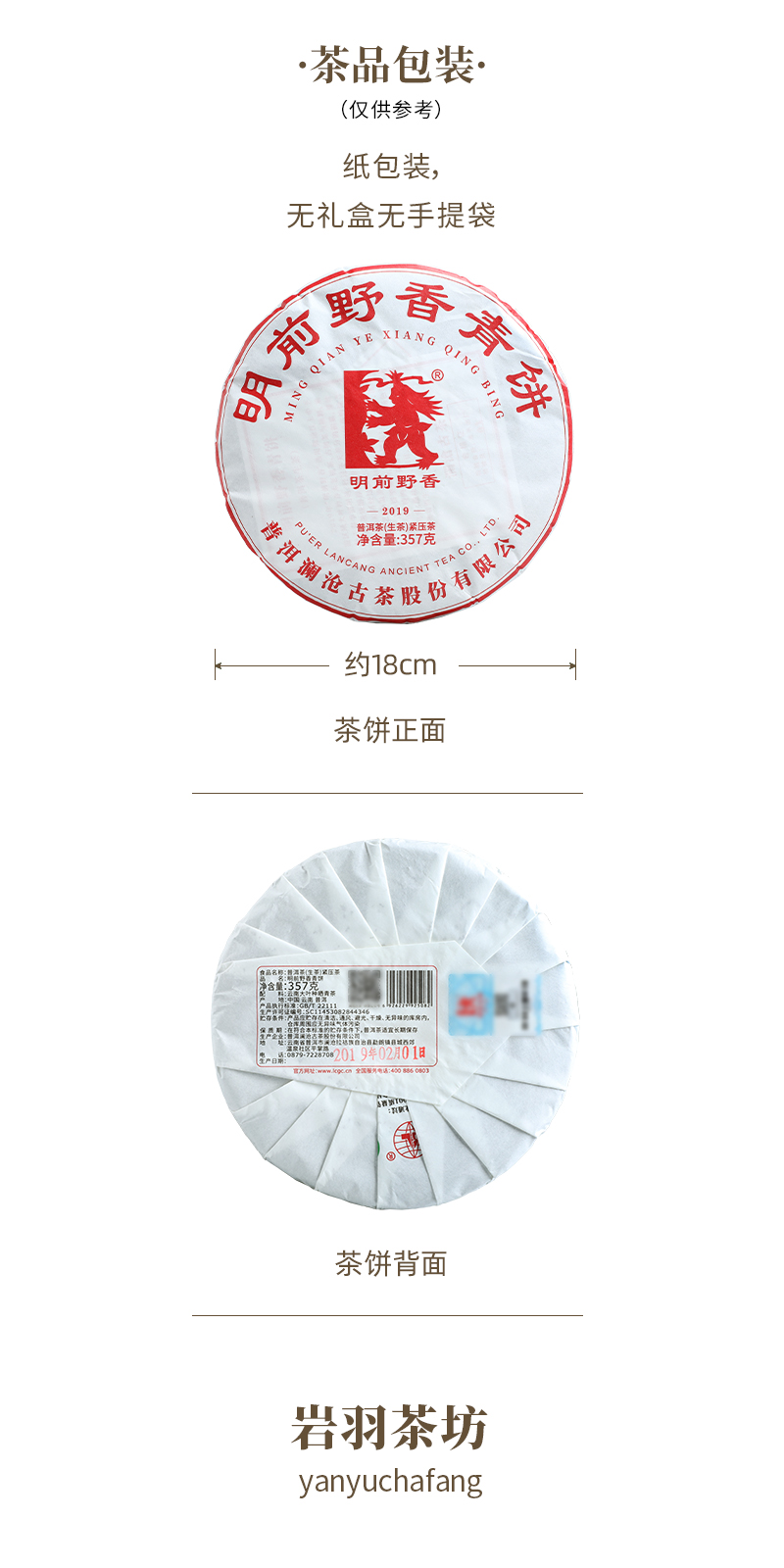 澜沧古茶2019年明前野香大饼普洱茶生茶云南茶叶老树口粮生普饼茶