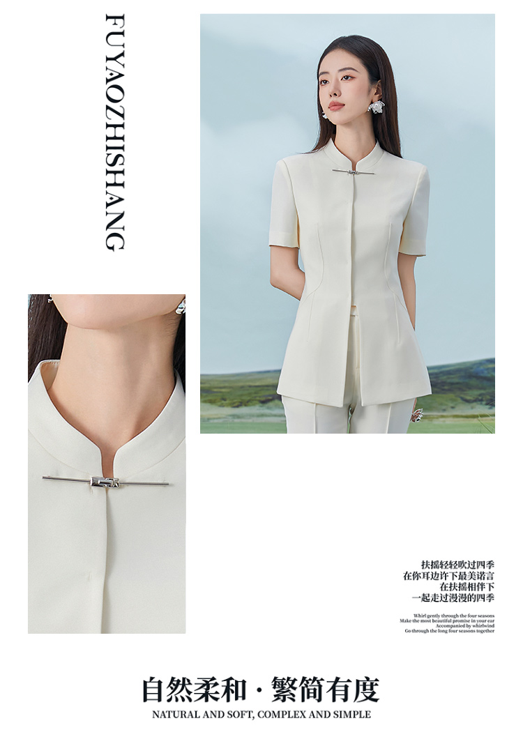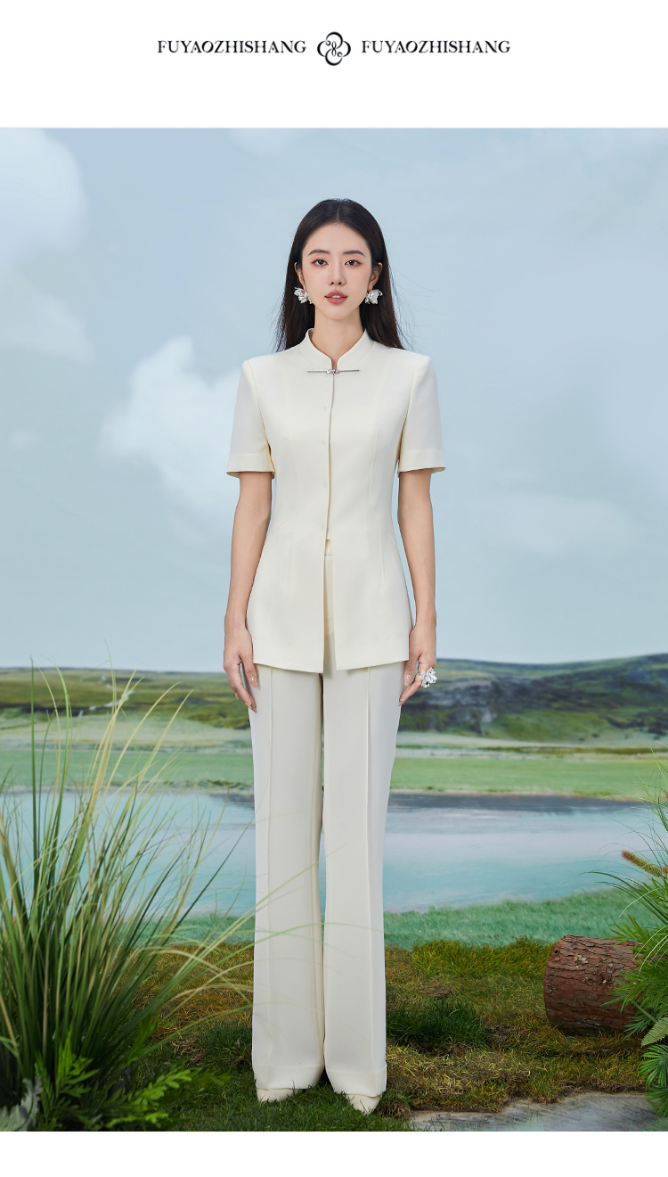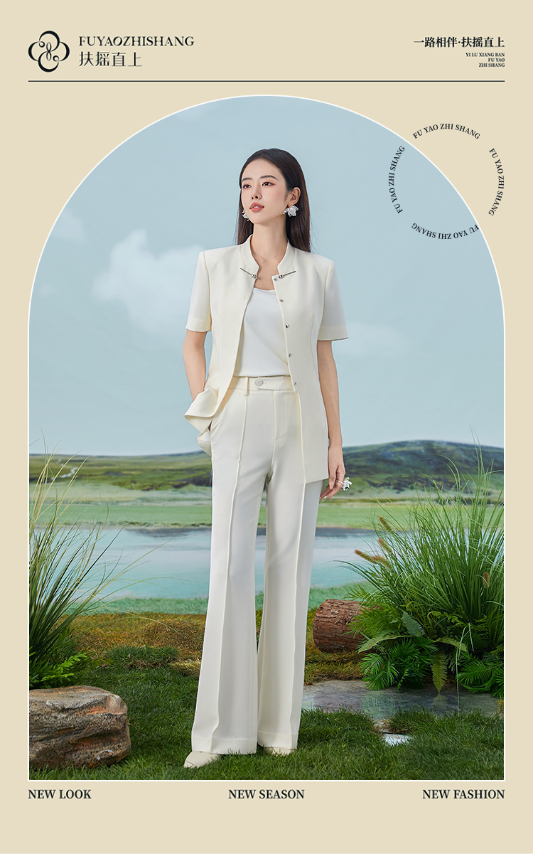 IWY/扶摇系列 米白色夏季国风时尚新中式改良西装套装FYCP356