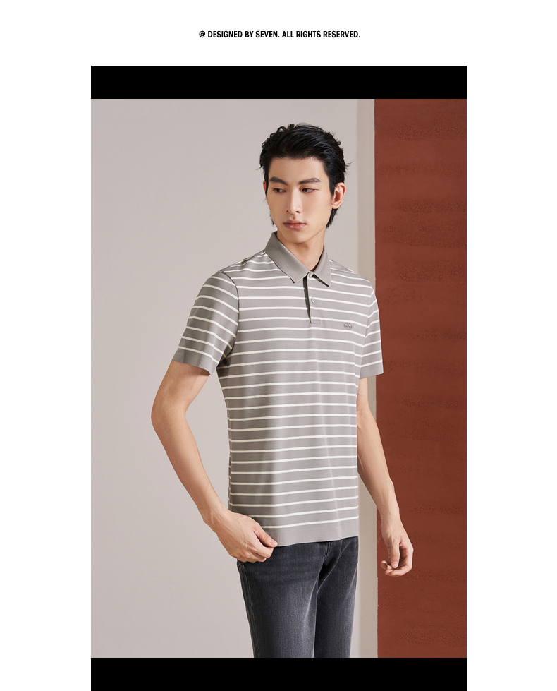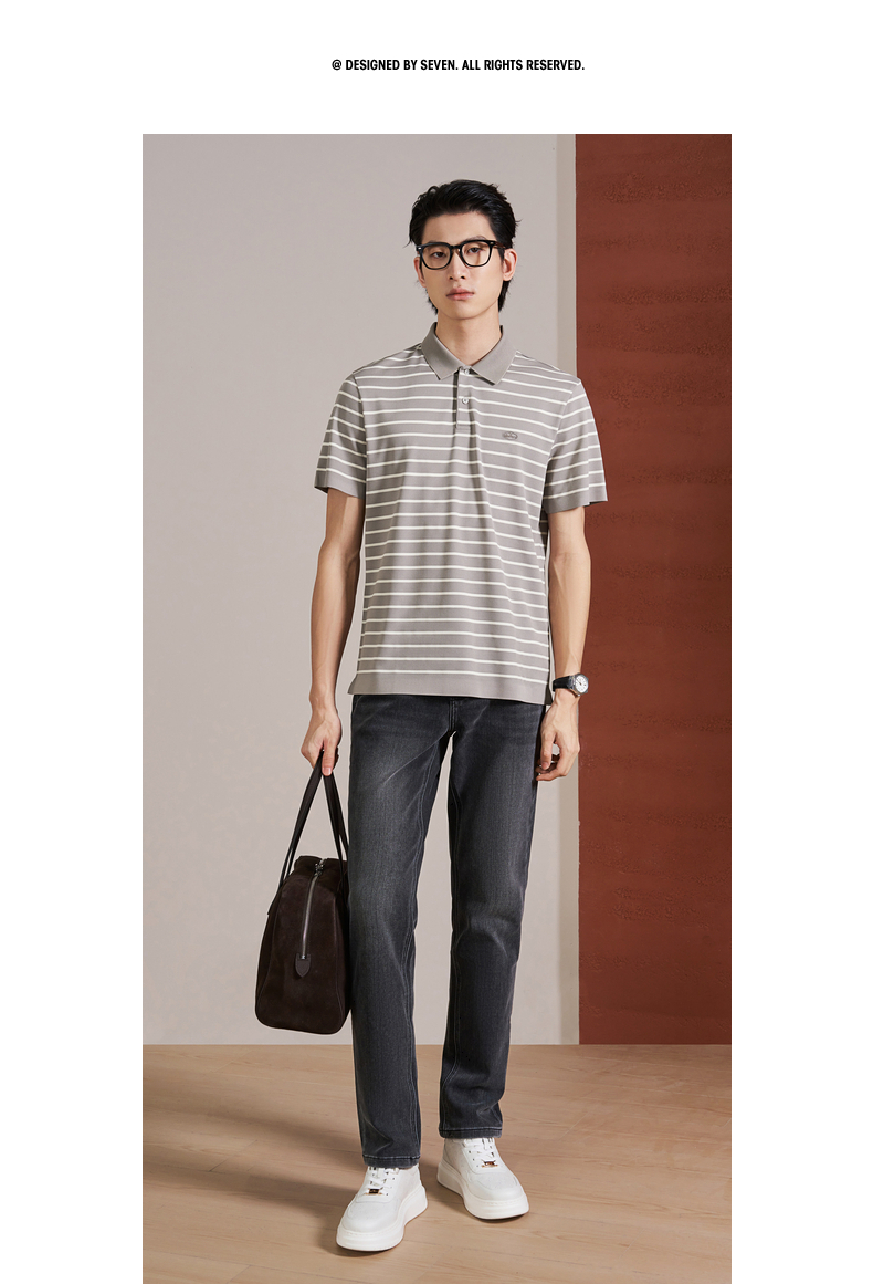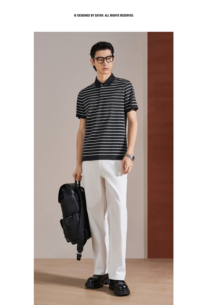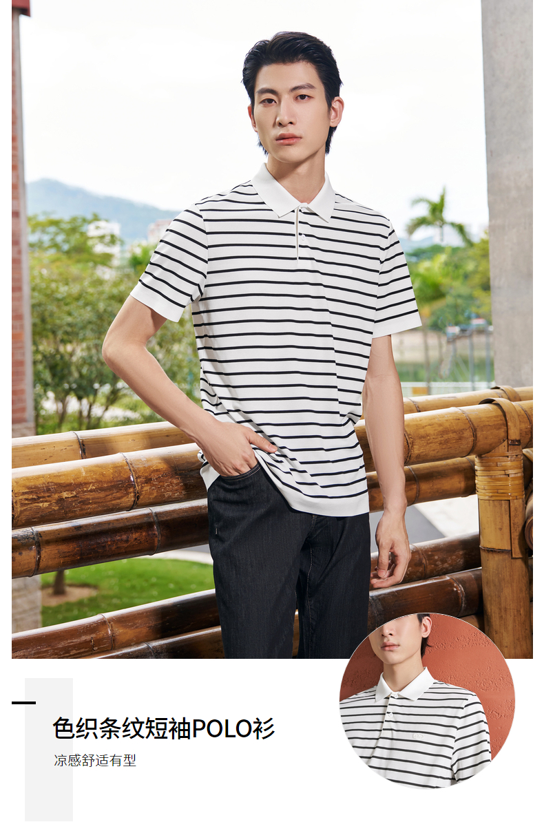 【无缝/色织条纹】柒牌男士2026夏季新款翻领潮流休闲短袖POLO衫 130T70600