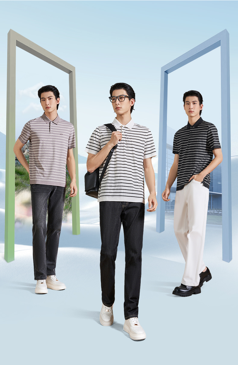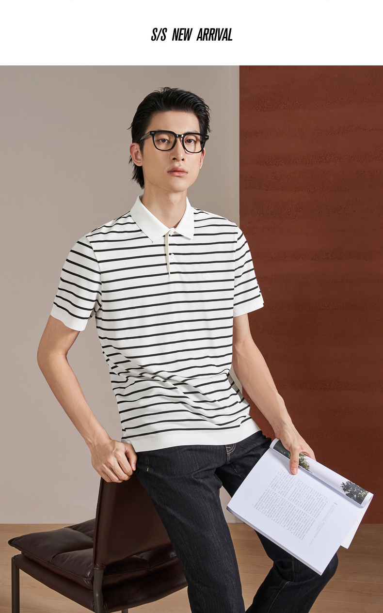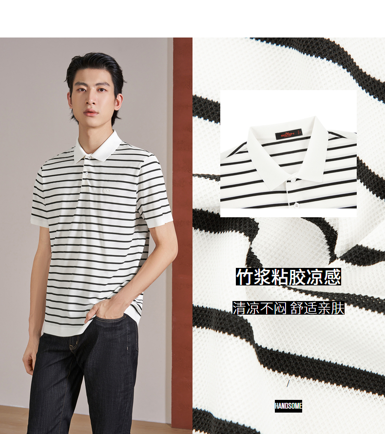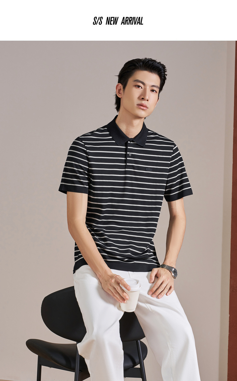 【无缝/色织条纹】柒牌男士2026夏季新款翻领潮流休闲短袖POLO衫 130T70600