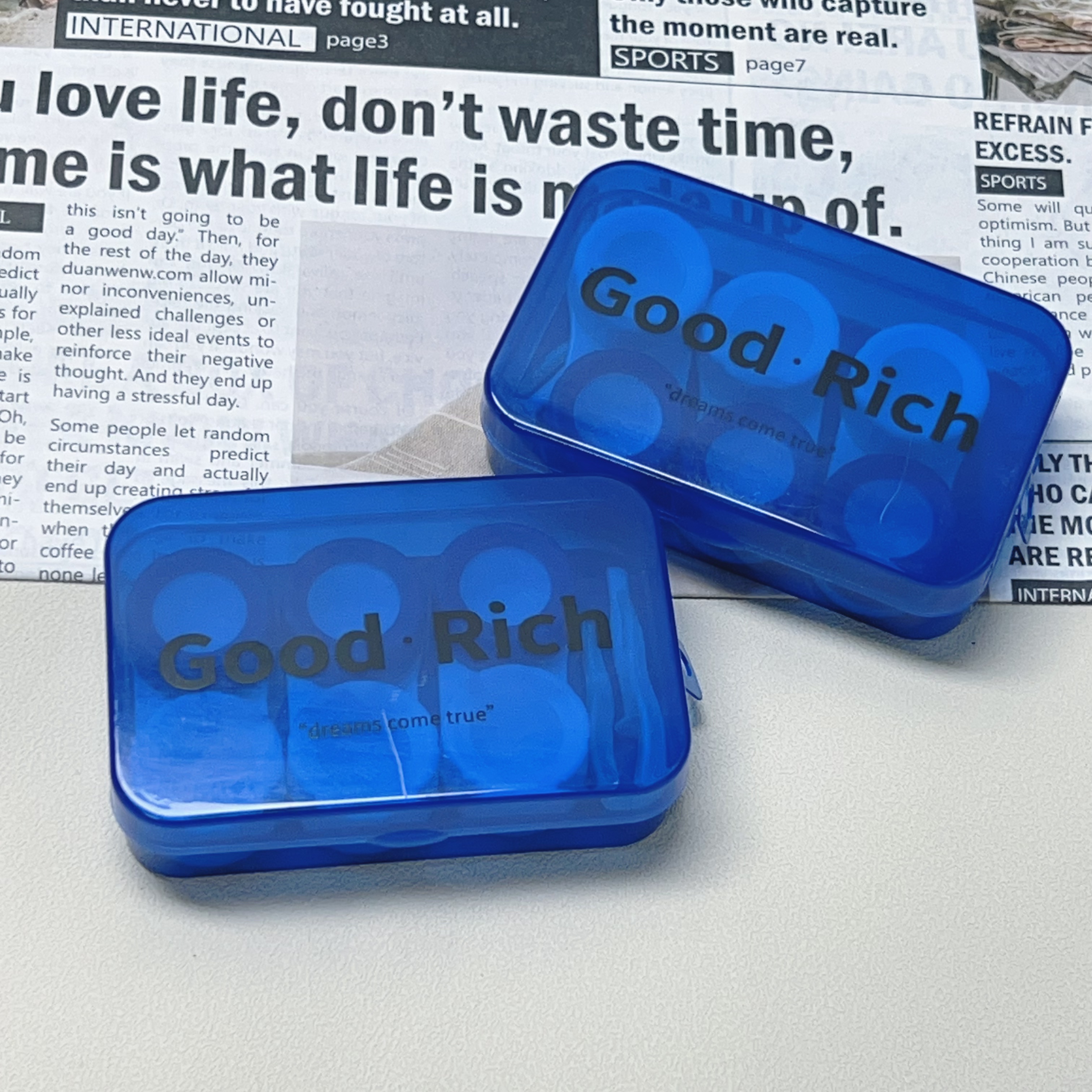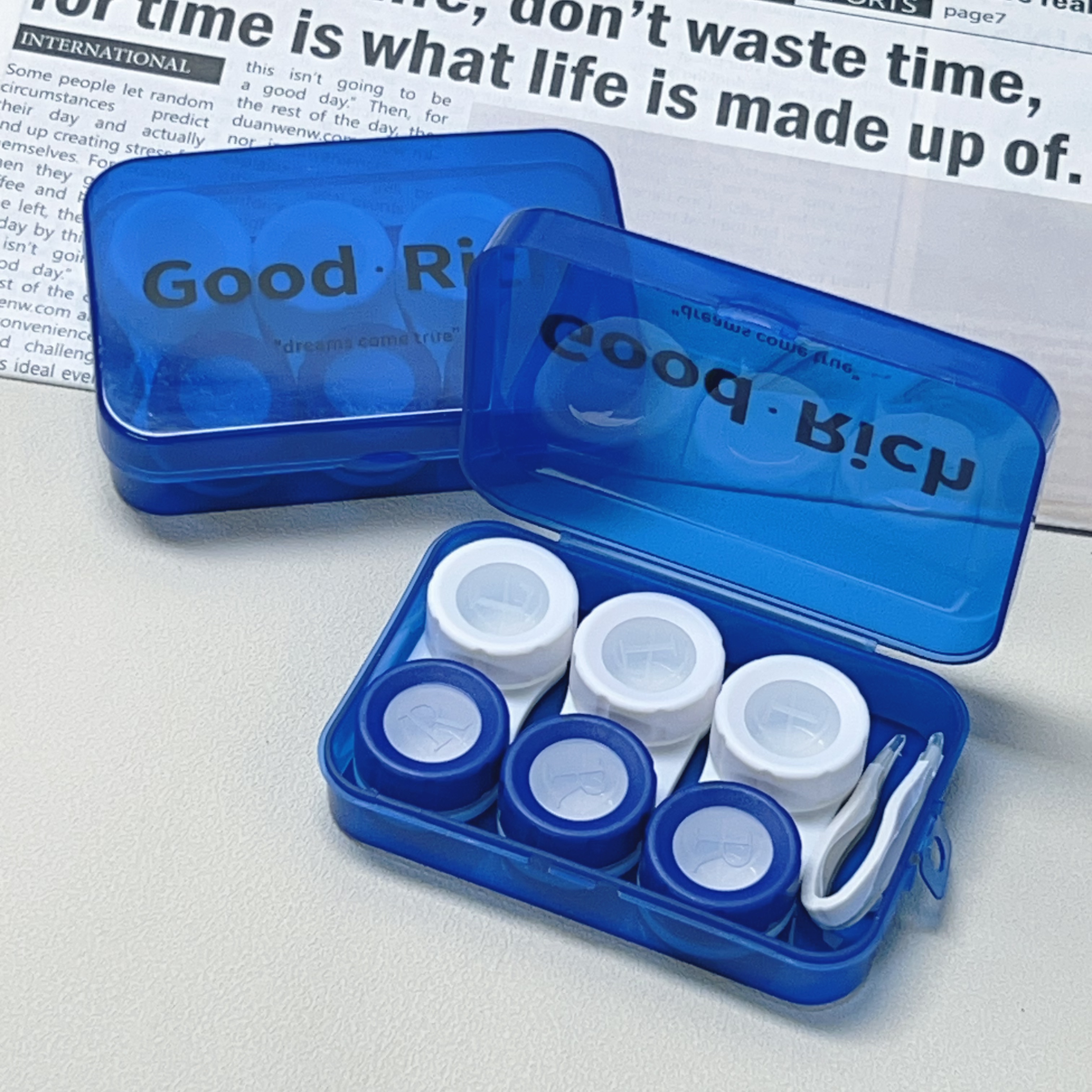 三幅装蓝白隐形眼镜盒美瞳盒T92