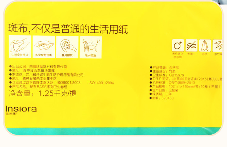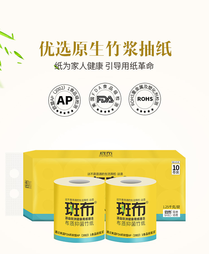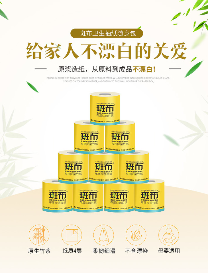 斑布1250g*10卷彩色系列有芯有膜卷纸(BCJ125A10)