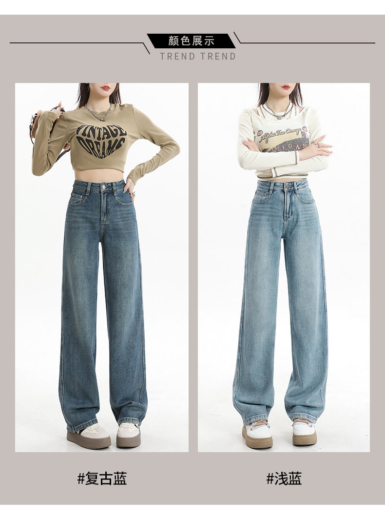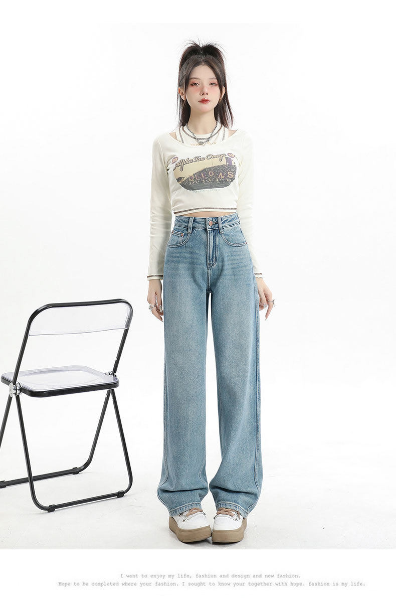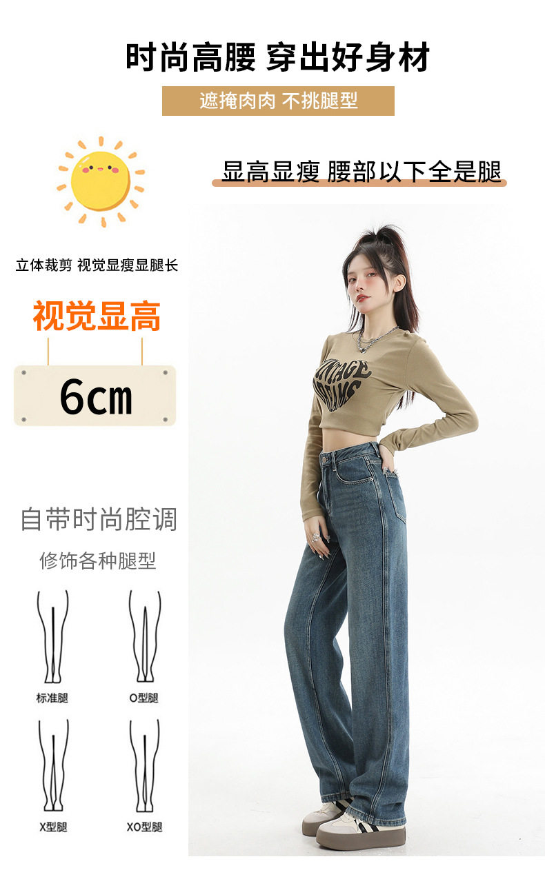 遮肉大码直筒牛仔裤女新款复古高腰梨形身材拖地裤窄版阔腿长裤子