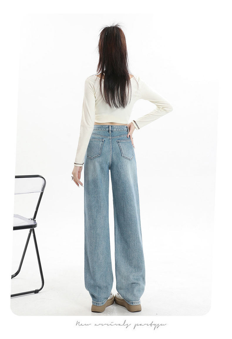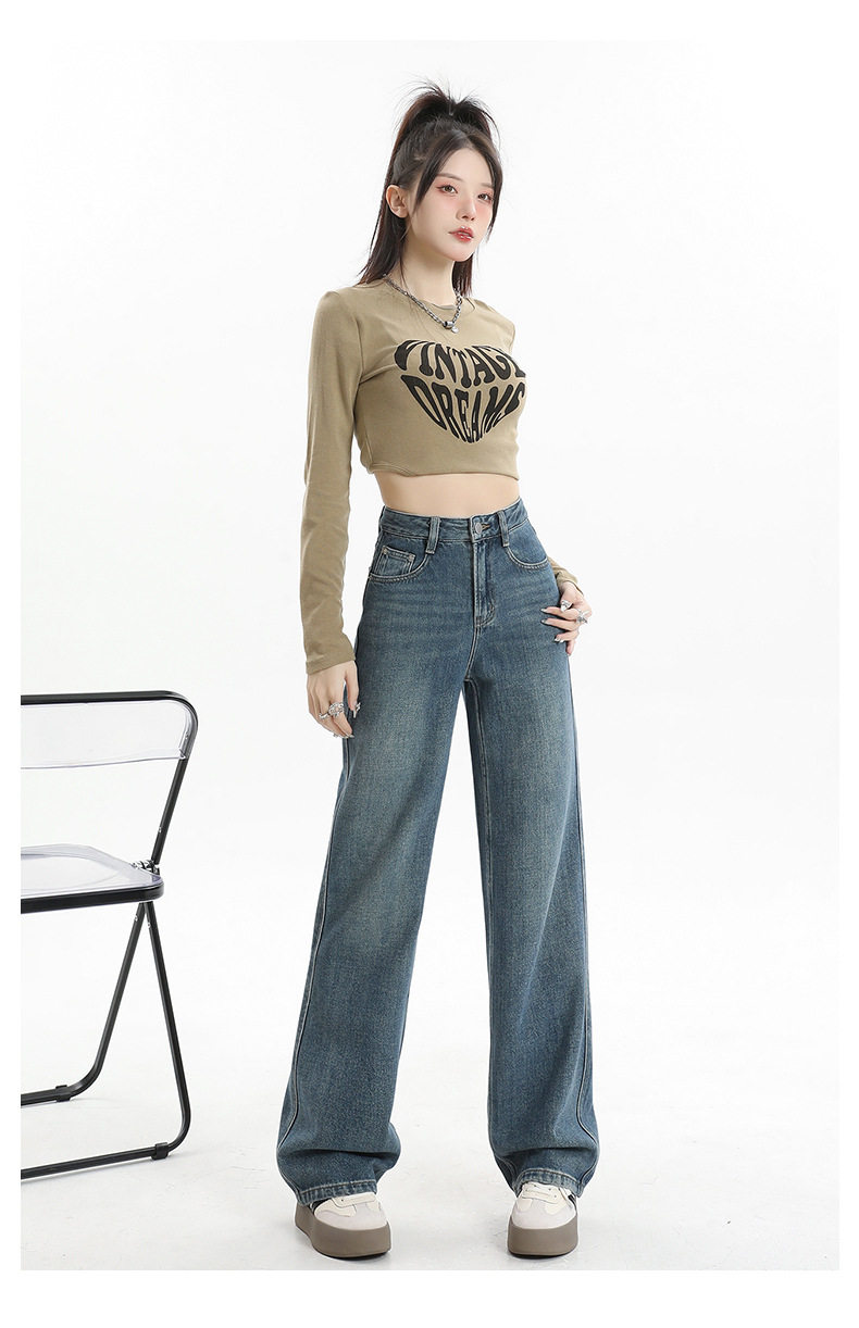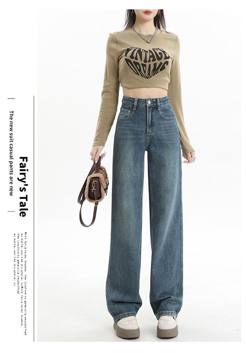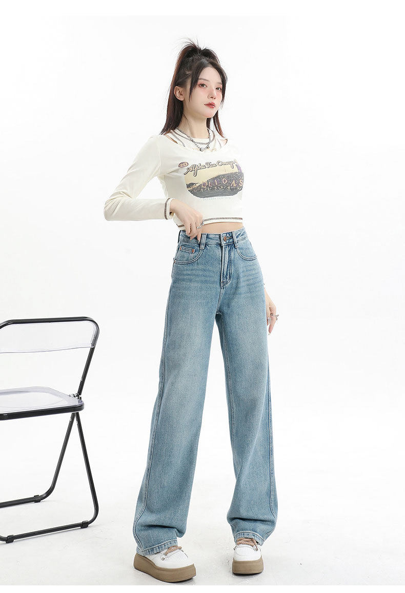 遮肉大码直筒牛仔裤女新款复古高腰梨形身材拖地裤窄版阔腿长裤子