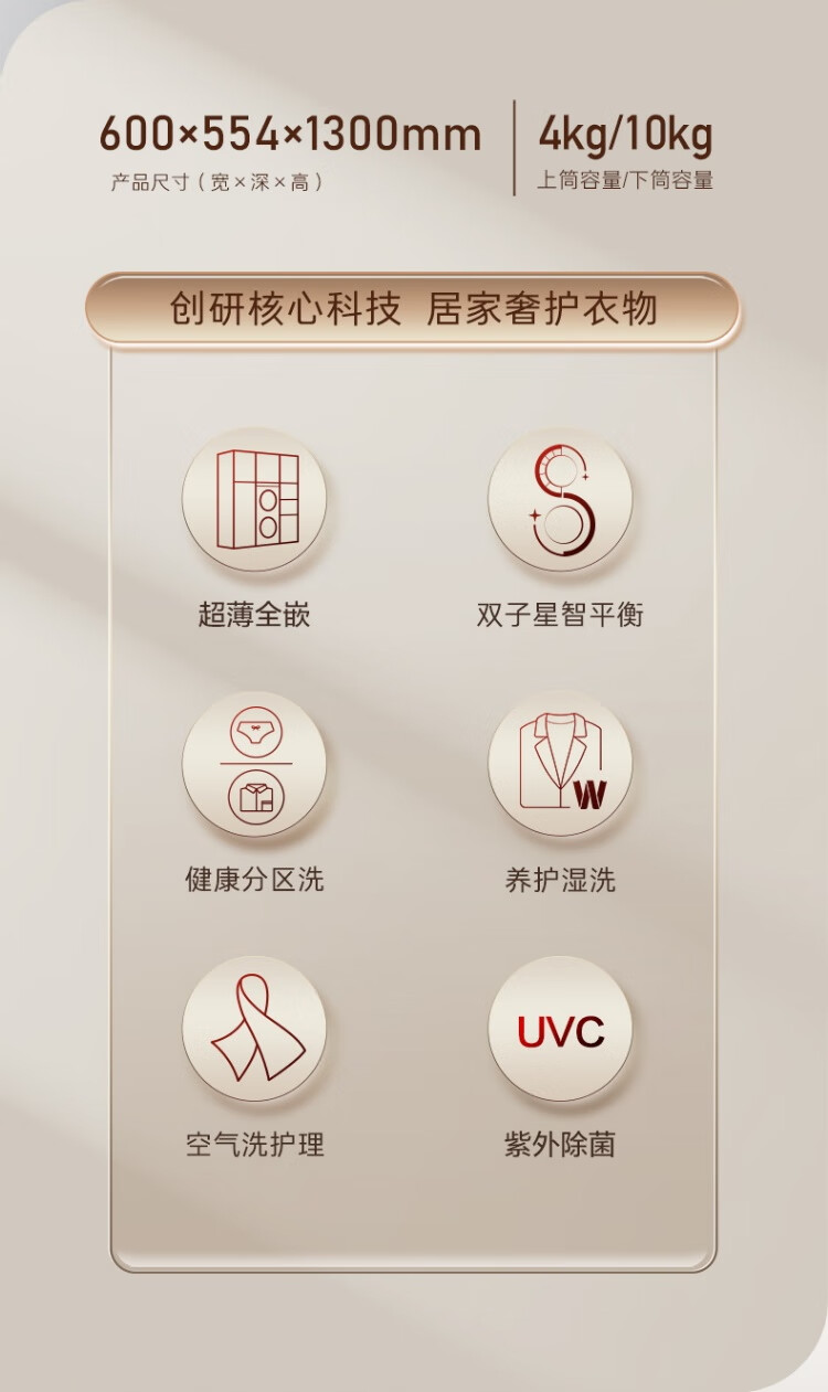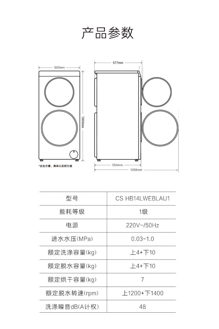 卡萨帝14公斤新款双子洗衣机滚筒分区洗衣机子母洗衣机 精华洗2.0 CS HB14LWEBLAU1洗烘一体 养护湿洗 前抽智能投放