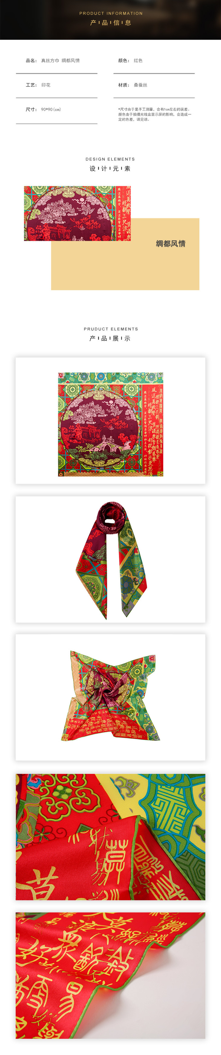 SAINTJOY/上久楷 女式真丝方巾 红色绸都风情 FJ14023